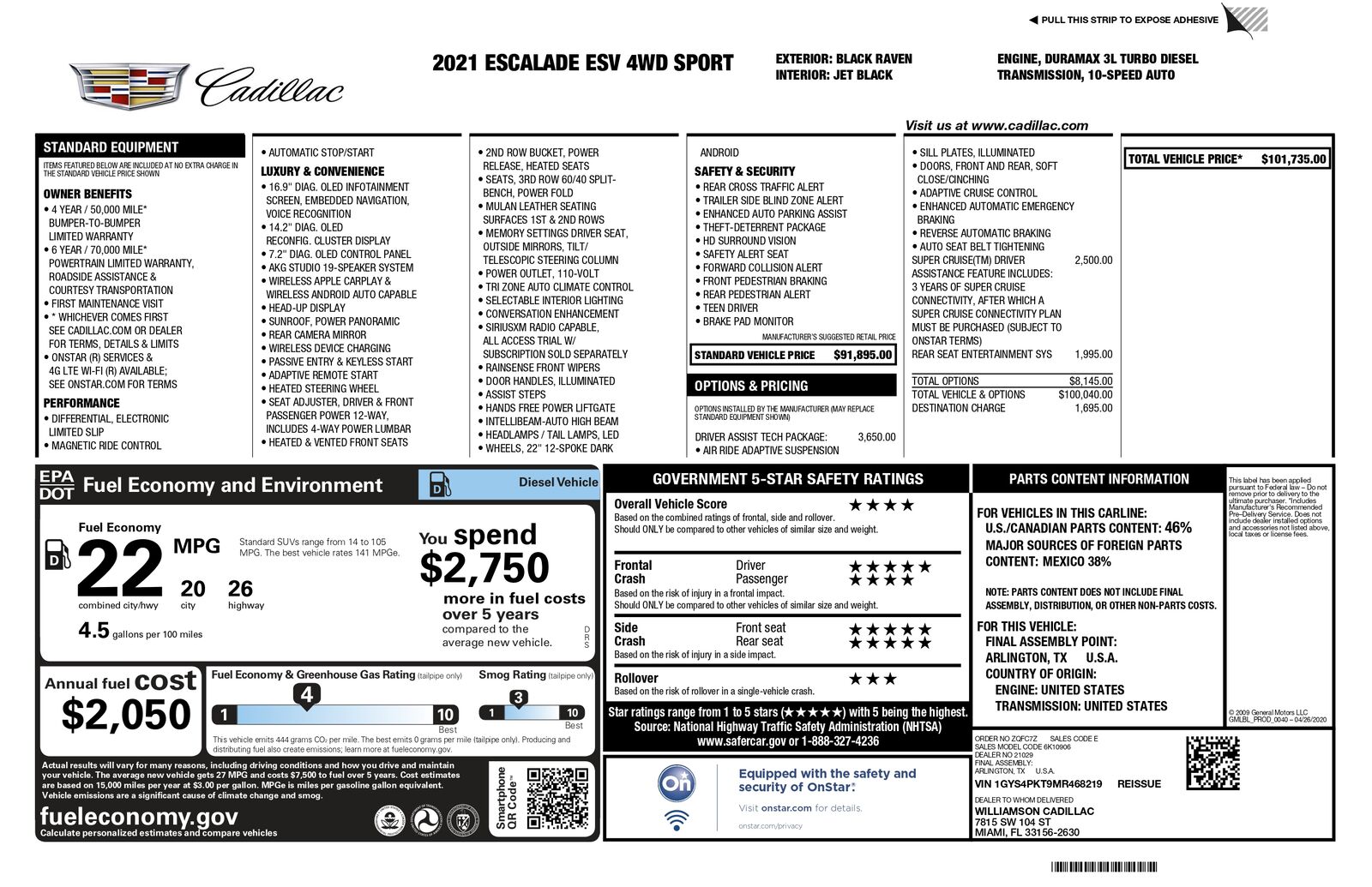 Selling our very clean, Cadillac Certified Pre-Owned (still has factory, bumper-to-bumper warranty), Escalade ESV Sport with the Duramax Diesel motor. These, especially in the Sport trim, with the diesel, are very rare and will get you 30 mpg on road trips -- and you don't have to deal with the disaster 6.2-liter V8 gas motor that is in every other Escalade out there. There are only three other diesel Escalades on KSL right now, and ours is NOT originally a Canadian vehicle.
