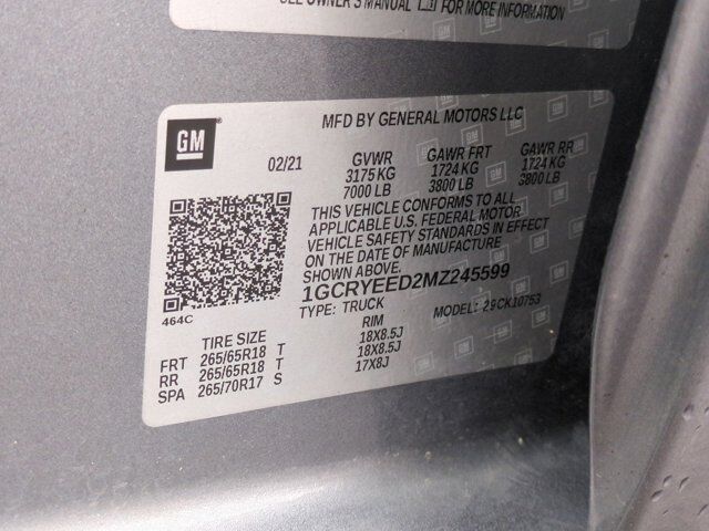 WHEELS 18 X 8.5 (45.7 CM X 21.6 CM) BRIGHT SILVER PAINTED ALUMINUM (STD),TIRE SPARE 265/70R17SL ALL-SEASON BLACKWALL (STD),LPO BLACK TAILGATE LETTERING (dealer-installed),AUDIO SYSTEM CHEVROLET INFOTAINMENT 3 SYSTEM 8 diagonal color touchscreen AM/FM stereo. Additional features for compatible phones include: Bluetooth audio streaming for 2 active devices voice command pass-through to phone wired Apple CarPlay and Android Auto capable. (STD),LPO BLACK NAMEPLATES (dealer-installed),COOLING EXTERNAL ENGINE OIL COOLER,GVWR 7000 LBS. (3175 KG) (STD),SEATS FRONT 40/20/40 SPLIT-BENCH with covered armrest storage and under-seat storage (lockable) (STD),ALTERNATOR 170 AMPS,TRAILER BRAKE CONTROLLER INTEGRATED,LICENSE PLATE KIT FRONT,SATIN STEEL METALLIC,REAR AXLE 3.23 RATIO,TIRES 265/65R18SL ALL-SEASON BLACKWALL (STD),TRANSMISSION 8-SPEED AUTOMATIC ELECTRONICALLY CONTROLLED with overdrive and tow/haul mode. Includes Cruise Grade Braking and Powertrain Grade Braking (STD),COOLING AUXILIARY EXTERNAL TRANSMISSION OIL COOLER,JET BLACK CLOTH SEAT TRIM,RST PREFERRED EQUIPMENT GROUP includes standard equipment,ENGINE 5.3L ECOTEC3 V8 (355 hp [265 kW] @ 5600 rpm 383 lb-ft of torque [518 Nm] @ 4100 rpm); featuring available Dynamic Fuel Management that enables the engine to operate in 17 different patterns between 2 and 8 cylinders depending on demand to optimize power delivery and efficiency (NOTE: Certain 21MY vehicles will include (YK9) Not Equipped with Dynamic Fuel Management.),LPO DARK ESSENTIALS PACKAGE includes (RIK) Black Silverado nameplates along with where applicable Black Custom/LT/RST/LTZ/High Country/6.2L/Duramax badges LPO and (SB7) Black tailgate CHEVROLET lettering LPO (dealer-installed),Tow Hitch,Locking/Limited Slip Differential,Four Wheel Drive,Power Steering,ABS,4-Wheel Disc Brakes,Aluminum Wheels,Tires - Front All-Season,Tires - Rear All-Season,Tires - Front All-Season,Tires - Rear All-Season,Tow Hooks,Daytime Running Lights,Fog Lamps,Heated Mirrors,Power Mirror(s),Privacy Glass,AM/FM Stereo,MP3 Capability,Bluetooth Connection,Auxiliary Audio Input,Smart Device Integration,Satellite Radio,Requires Subscription,Bluetooth Connection,WiFi Hotspot,Split Bench Seat,Cloth Seats,Power Driver Seat,Driver Adjustable Lumbar,Heated Front Seat(s),Pass-Through Rear Seat,Rear Bench Seat,Floor Mats,Floor Mats,Leather Steering Wheel,Heated Steering Wheel,Steering Wheel Audio Controls,Adjustable Steering Wheel,Power Windows,Power Windows,Power Door Locks,Remote Engine Start,Keyless Entry,Power Door Locks,Keyless Start,Cruise Control,Security System,Power Outlet,MP3 Capability,Auxiliary Audio Input,Power Outlet,Climate Control,Multi-Zone A/C,A/C,A/C,Rear A/C,Rear Defrost,Traction Control,Stability Control,Daytime Running Lights,Driver Air Bag,Passenger Air Bag,Front Side Air Bag,Front Head Air Bag,Rear Head Air Bag,Passenger Air Bag Sensor,Telematics,Requires Subscription,Back-Up Camera,Driver Restriction Features,Tire Pressure Monitor