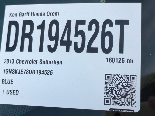 AS IS VEHICLE! THIS VEHICLE IS BEING SOLD AS TRADED! Rather than tie up our shop on this vehicle, or sending it to Auction for other dealers to mark up, we make it available at rock-bottom pricing to you. You can even arrange to take the vehicle to your own mechanic to have it checked out. This vehicle comes with no warranty but passed an emissions test for licensing.As/Is Certified, 4WD, Light Titanium/Dark Titanium w/Custom Perforated Leather-Appointed Seat Trim, 17 x 7.5 5-Spoke Aluminum Wheels, 3.08 Rear Axle Ratio, 3rd row seats: split-bench, 4-Wheel Disc Brakes, 6-Way Power Driver Seat Adjuster, 6-Way Power Front Passenger Seat Adjuster, 9 Speakers, ABS brakes, Adjustable pedals, Air Conditioning, Alloy wheels, AM/FM radio: SiriusXM, AM/FM Stereo w/CD Player & MP3 Playback, Automatic temperature control, Black Roof-Mounted Luggage Rack Center Rails, Bodyside moldings, Bose Premium Audio System Feature, Bumpers: body-color, CD player, Color-Keyed Bodyside Moldings, Compass, Custom Leather-Appointed Seat Trim, Delay-off headlights, Driver & Front Passenger Heated Seats, Driver door bin, Driver Manual Lumbar Control, Driver vanity mirror, Dual front impact airbags, Dual front side impact airbags, Electronic Stability Control, Emergency communication system: OnStar Directions & Connections, Front anti-roll bar, Front Bucket Seats, Front Center Armrest, Front dual zone A/C, Front fog lights, Front Halogen Fog Lamps, Front reading lights, Front wheel independent suspension, Fully automatic headlights, Heated door mirrors, Heated front seats, Heavy-Duty Locking Rear Differential, Illuminated entry, Leather steering wheel, Low tire pressure warning, Occupant sensing airbag, Outside temperature display, Overhead airbag, Overhead console, Panic alarm, Passenger door bin, Passenger vanity mirror, Power door mirrors, Power driver seat, Power passenger seat, Power steering, Power windows, Power-Adjustable Accelerator & Brake Pedals, Premium Smooth Ride Suspension Package, Radio data system, Rear air conditioning, Rear anti-roll bar, Rear audio controls, Rear Park Assist, Rear reading lights, Rear seat center armrest, Rear window defroster, Rear window wiper, Remote keyless entry, Remote Vehicle Starter System, Roof rack, Security system, SIRIUSXM Satellite Radio, Speed control, Split folding rear seat, Spoiler, Steering wheel mounted audio controls, Tachometer, Tilt steering wheel, Traction control, Tri-Zone Automatic Climate Control, Trip computer, Variably intermittent wipers, Voltmeter, 4WD, Light Titanium/Dark Titanium w/Custom Perforated Leather-Appointed Seat Trim.Awards: * 2013 KBB.com 10 Best Family CarsReviews: * The Suburban has long earned its stripes as an SUV that can carry lots of people and haul lots of stuff. The 2013 Chevy Suburban continues that mission while offering a rugged image and many creature comforts. Source: KBB.com * Seats up to nine people; class-leading cargo capacity; lots of standard and optional features; comfortable ride; smooth V8. Source: Edmunds
