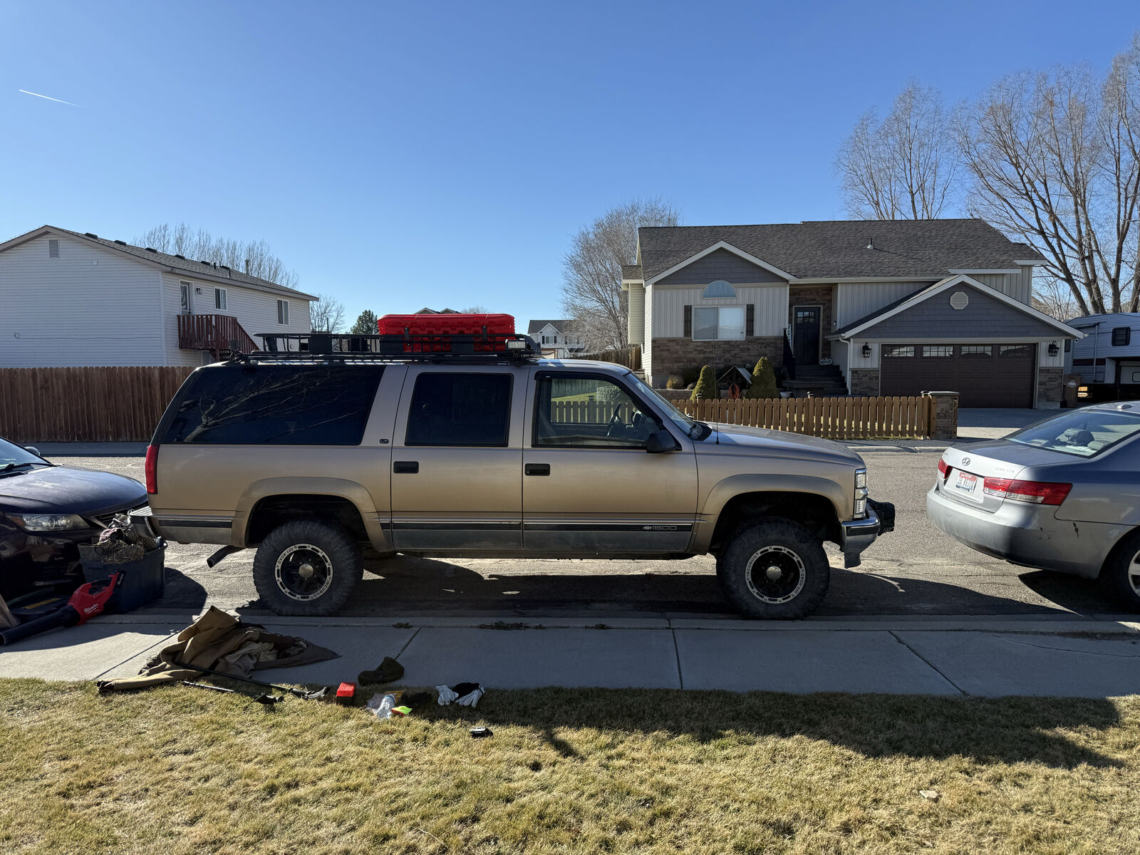 Trade or for sale. 1999 Chevy suburban 4x4 with 106,000 miles. Remote start , leather seats , lots of new parts last 2 years including all new inner/outer tie rod ends , 2” lift control arms & bushings. Tune up within last 5000miles . Nice Bluetooth stereo with custom 10” sub in the rear. Spare on roof rack is in good shape. Cold a/c front & rear with rear controls. Few bumps & bruises but this drives & runs great. I also have a brand new winter cover for it that goes with . The winch unfortunately does not go with it but the receiver hitch for it stays. Full/partial Trade for 70s Chevy c10 truck no rusty junk please. Call or text 208 251 2297.