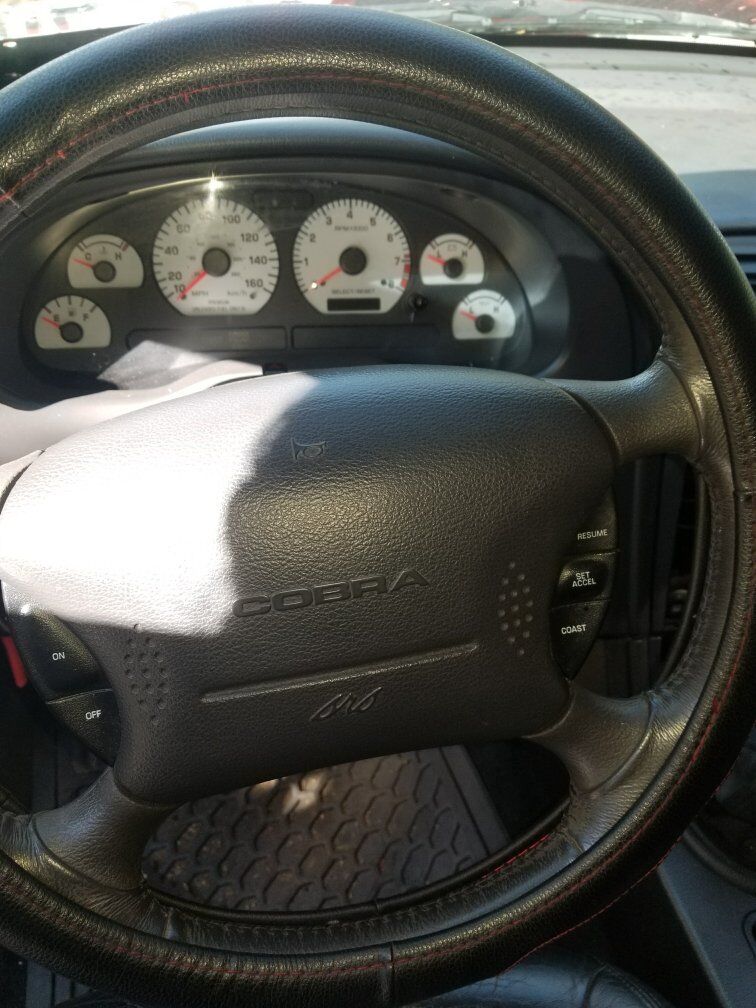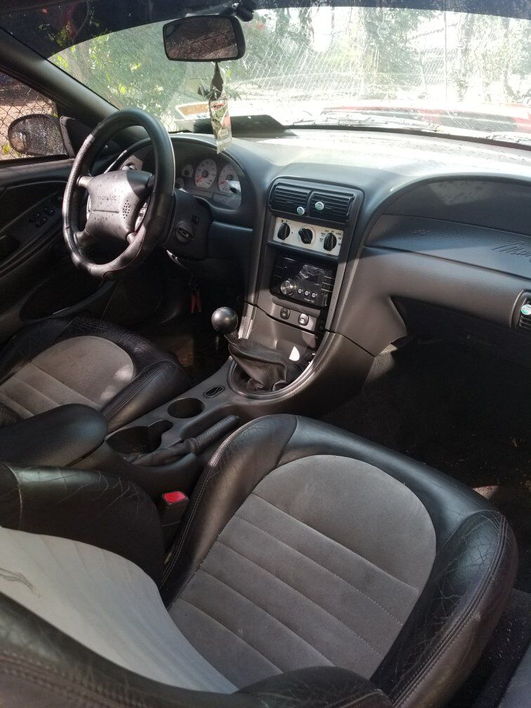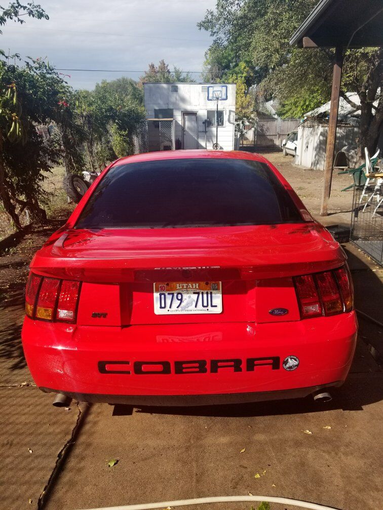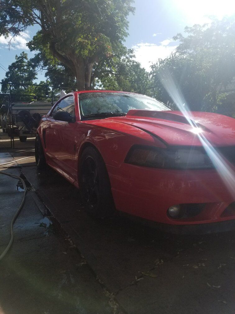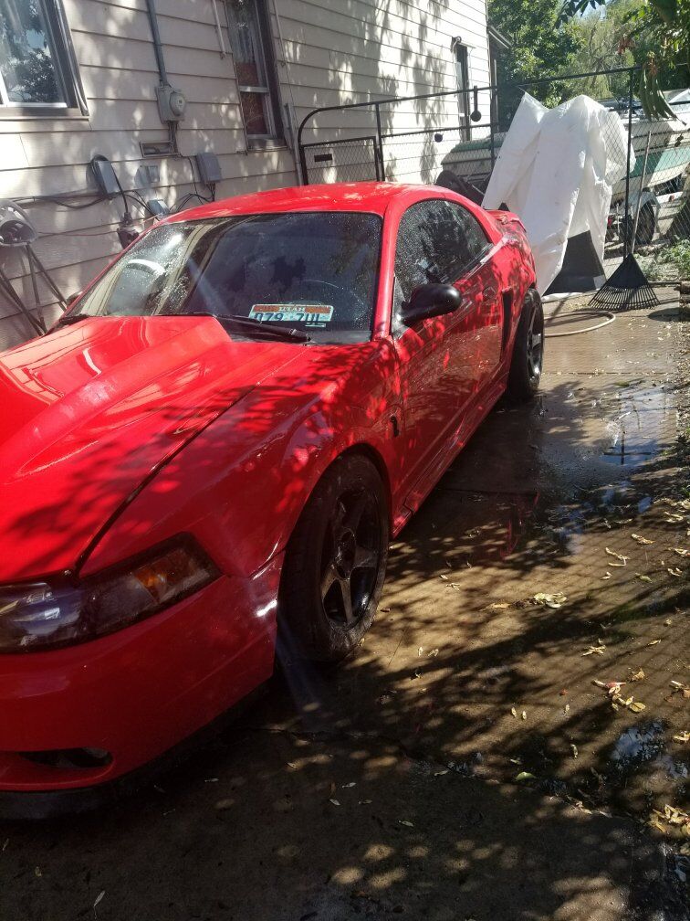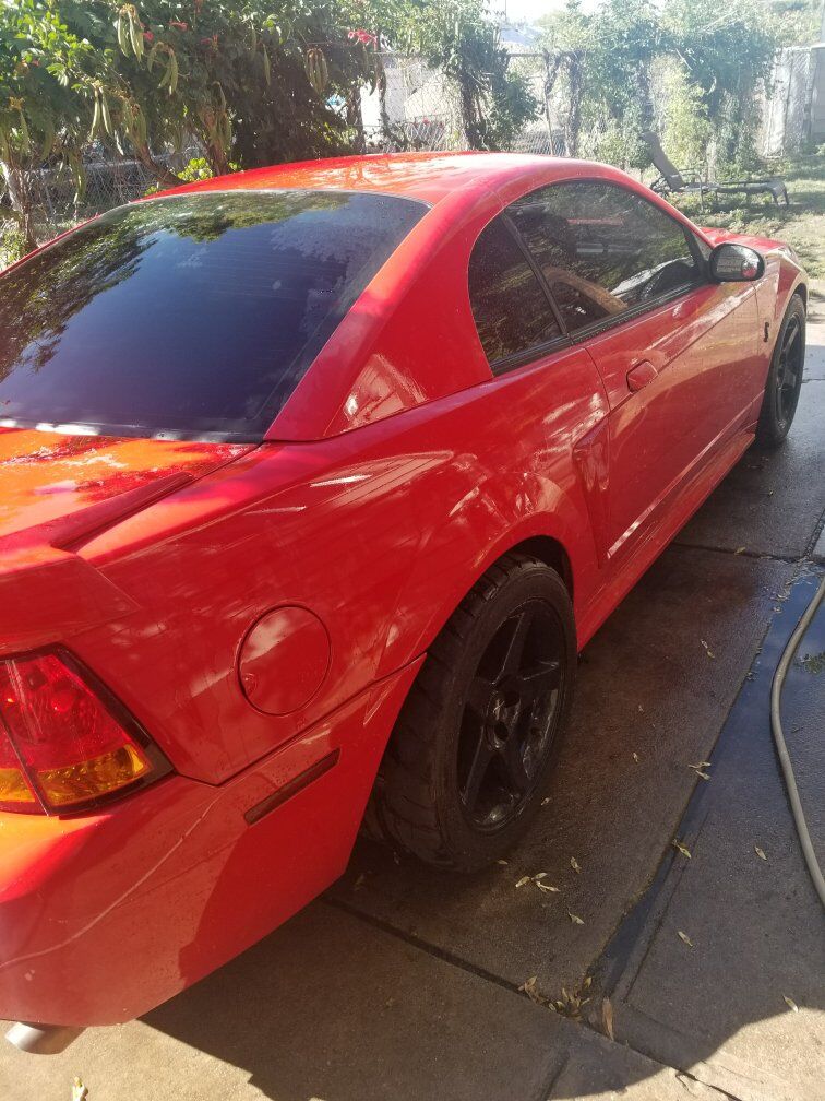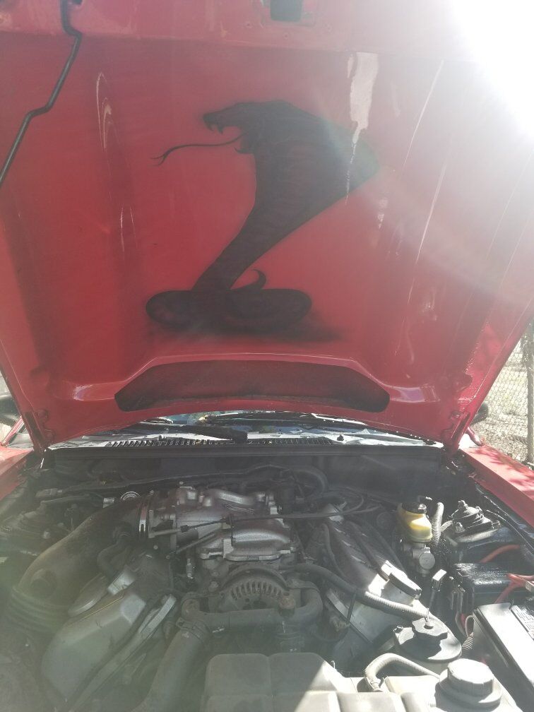 Beautiful SVT Cobra Mustang with a red paint job rims painted all blk tinted windows custom air brush under hood no dents so clea has a clean title inside is very nice 2 tone interior with beautiful bose all round stereo system speakers with it's own amp and hook up for big box speaker sound flawless with rebuilt stage2 tranny with short shifter. the inside hood all the components such as brake fluid been plated to car for secureness for racing going fast! car is sitting has it right now due to engine ticking all around great car put a lot of money to it sad to part ways but don't have the skill nor money at this time to fix it asking $10,000