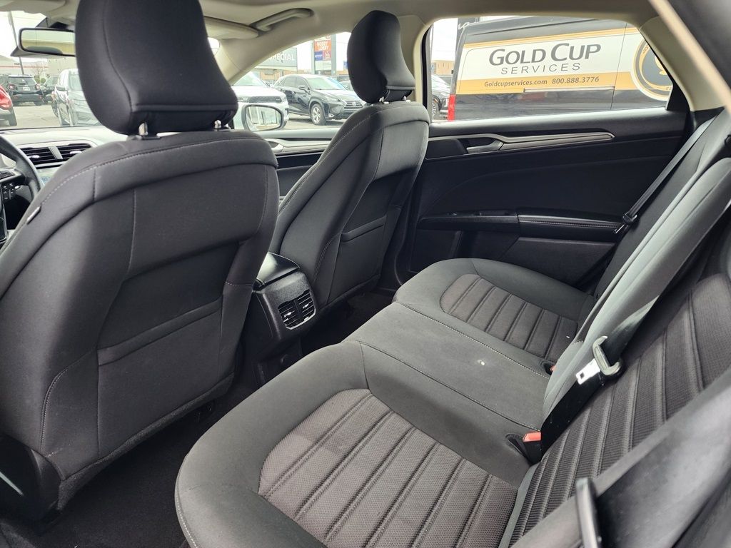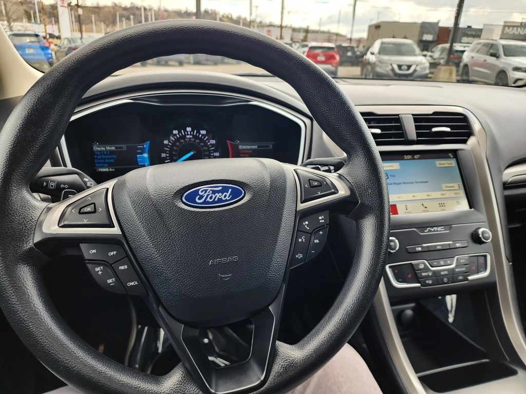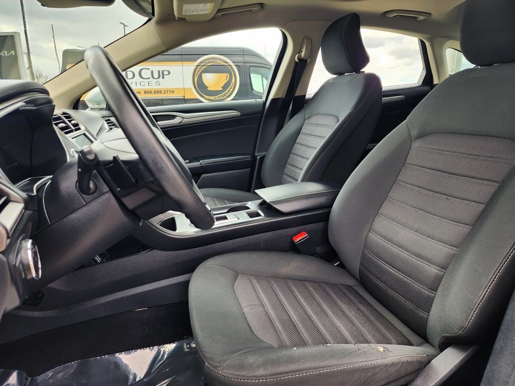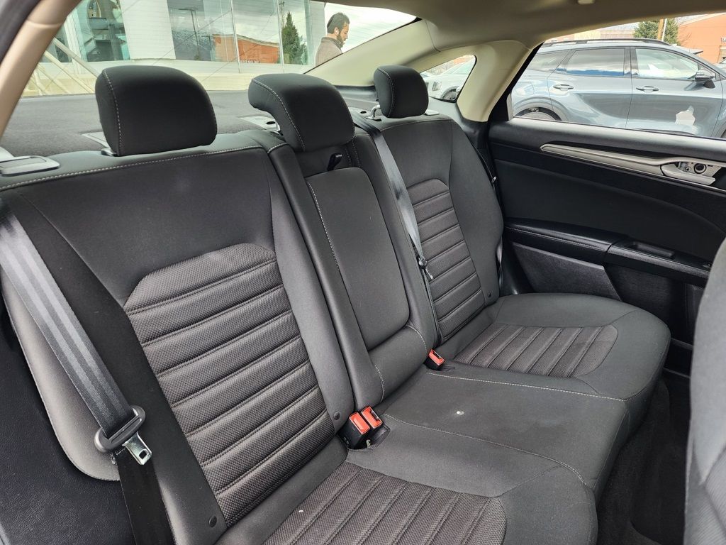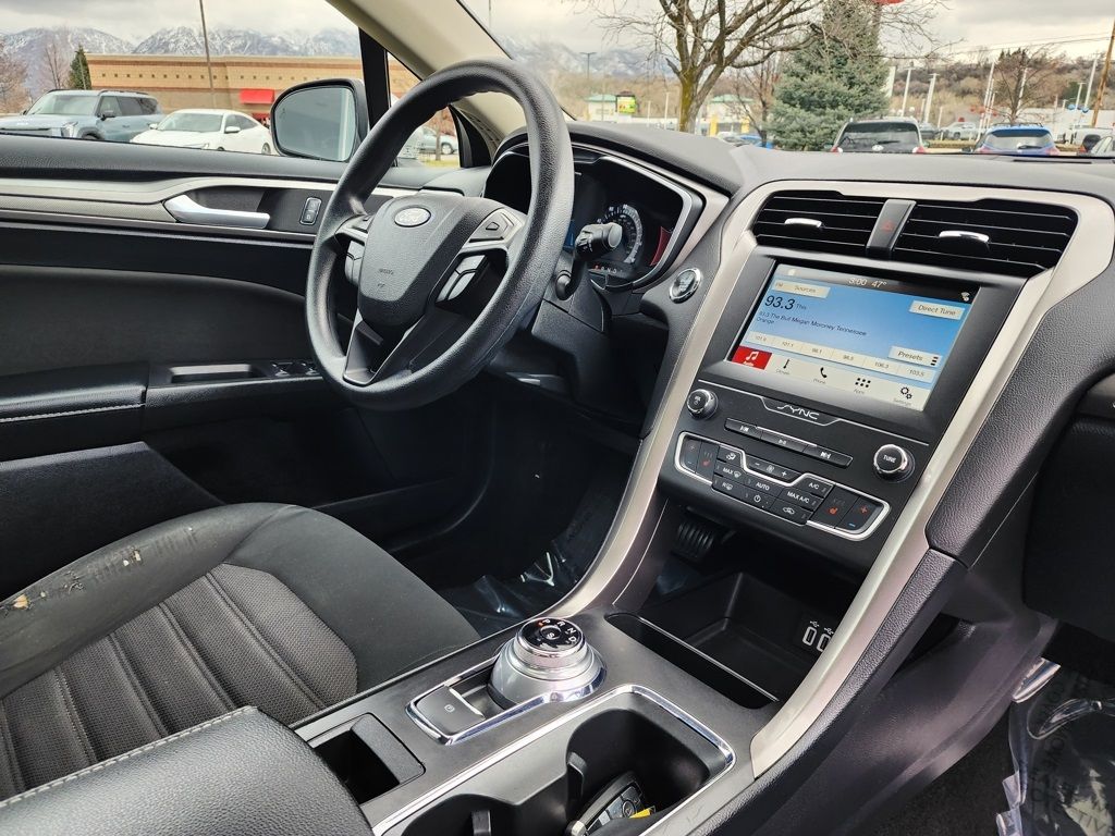 Ingot Silver 2019 Ford Fusion SE AWD 6-Speed Automatic EcoBoost 2.0L I4 GTDi DOHC Turbocharged VCT 6-Speed Automatic, AWD, 4-Wheel Disc Brakes, 6 Speakers, ABS brakes, Air Conditioning, Alloy wheels, AM/FM radio: SiriusXM, AppLink/Apple CarPlay and Android Auto, Auto High-beam Headlights, Auto-dimming Rear-View mirror, Automatic temperature control, Brake assist, Bumpers: body-color, Cloth Front Bucket Seats, Compass, Delay-off headlights, Driver door bin, Driver vanity mirror, Dual front impact airbags, Dual front side impact airbags, Electronic Stability Control, Emergency communication system: 911 Assist, Equipment Group 150A, Exterior Parking Camera Rear, Four wheel independent suspension, Front anti-roll bar, Front Bucket Seats, Front Center Armrest, Front dual zone A/C, Front License Plate Bracket, Front reading lights, Fully automatic headlights, Fusion SE All-Wheel-Drive Package, Heated door mirrors, Heated Front Seats, Heated front seats, Illuminated entry, Knee airbag, Lane Departure Warning System, Low tire pressure warning, Occupant sensing airbag, Outside temperature display, Overhead airbag, Overhead console, Panic alarm, Passenger door bin, Passenger vanity mirror, Power door mirrors, Power driver seat, Power Moonroof, Power passenger seat, Power steering, Power windows, Premium Floor Liners Front & Rear, Radio data system, Radio: AM/FM/MP3 Stereo, Rain sensing wipers, Rear anti-roll bar, Rear Parking Sensors, Rear reading lights, Rear seat center armrest, Rear window defroster, Remote keyless entry, Security system, SiriusXM Radio, Speed control, Speed-sensing steering, Speed-Sensitive Wipers, Split folding rear seat, Steering wheel mounted audio controls, SYNC 3 Communications & Entertainment System, Tachometer, Telescoping steering wheel, Tilt steering wheel, Traction control, Trip computer, Upgraded Sideview Mirrors w/Heat, Variably intermittent wipers, Wheels: 18'' Machine-Face Aluminum, 6-Speed Automatic, AWD.