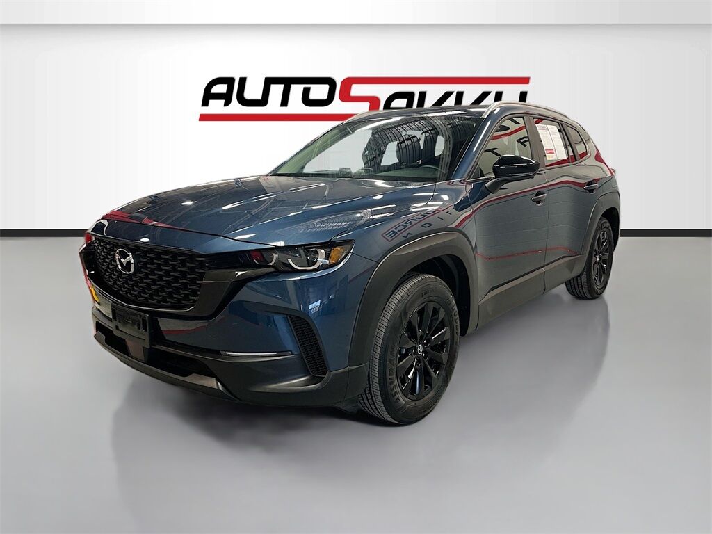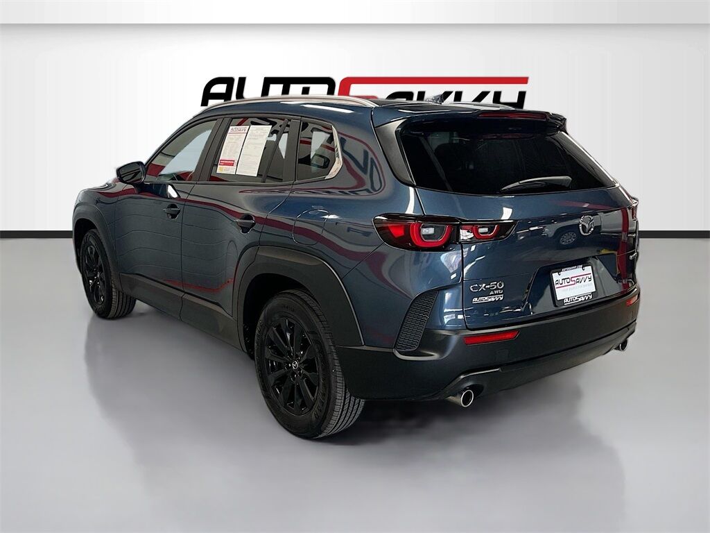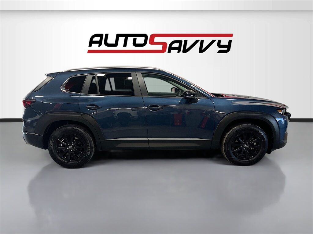 Explore the 2025 Mazda CX-50 2.5 S Premium Package AWD at AutoSavvy Woods Cross, where innovation meets elegance in this nearly new sport utility vehicle. With just 1,911 miles, this Savvy Certified CX-50 is designed for those who crave performance and style. Under the hood, the SKYACTIV-G 2.5L I-4 engine delivers 187 horsepower, coupled with an efficient 31 MPG highway rating, making every journey both powerful and economical. The Ingot Blue Metallic exterior paired with a Black and Gray interior featuring cloth and leatherette upholstery offers a sophisticated look. Key features include a power moonroof, heated front seats, and an advanced infotainment system with Apple CarPlay and Android Auto, ensuring connectivity and comfort on every drive. The all-wheel-drive system provides exceptional handling, perfect for both urban roads and off-road escapades. The current status of the title is branded, highlighting AutoSavvy's commitment to transparency and quality. This Mazda CX-50 has undergone a meticulous inspection to ensure it meets top-tier performance and reliability standards. As a Savvy Certified vehicle, it comes with the assurance of our 4-month/4,500 Mile Warranty, providing peace of mind for your investment. Visit AutoSavvy Woods Cross today to experience the perfect blend of innovation, comfort, and safety that this Mazda CX-50 offers. Discover the AutoSavvy difference, where every vehicle is crafted to exceed your expectations.