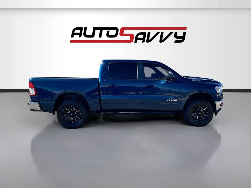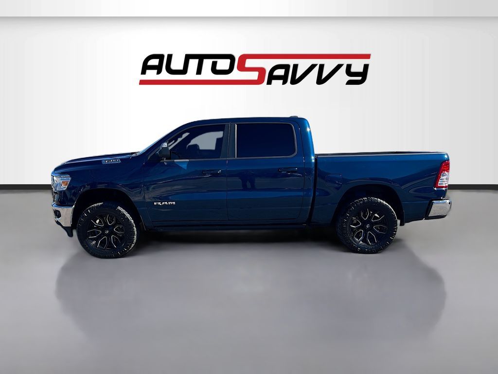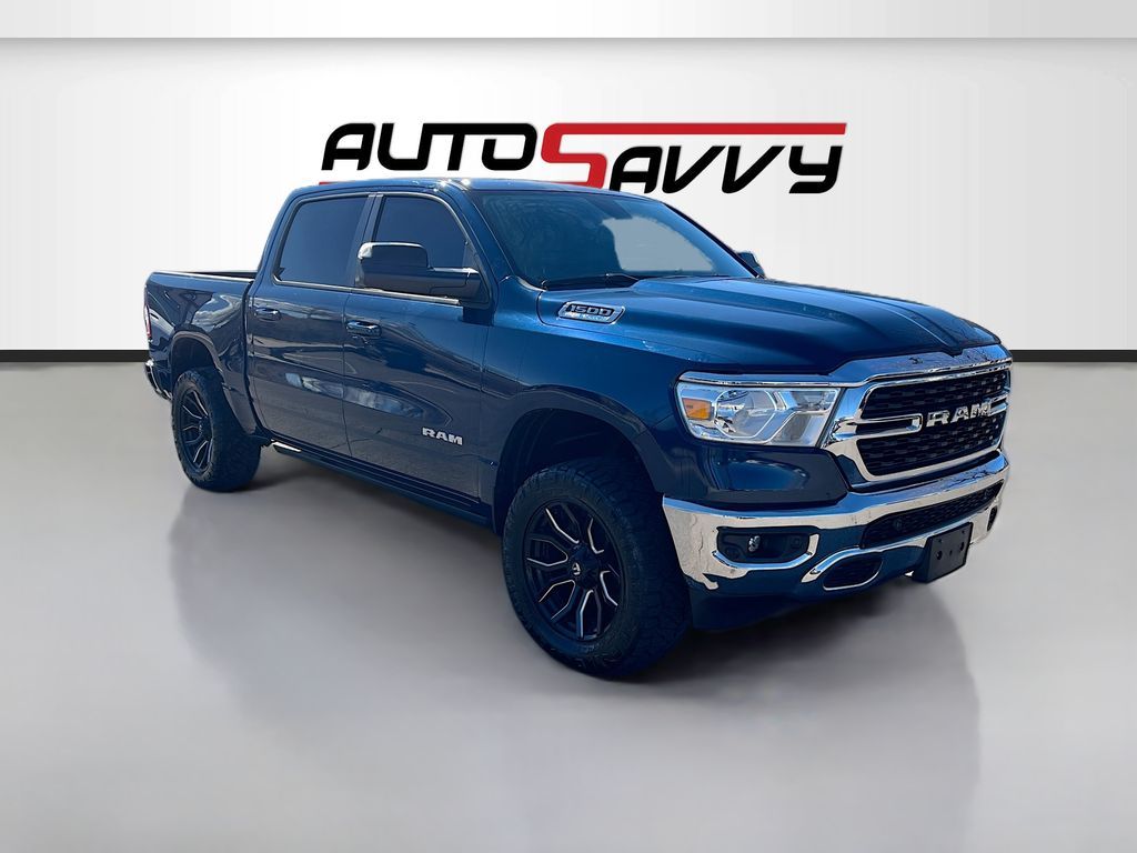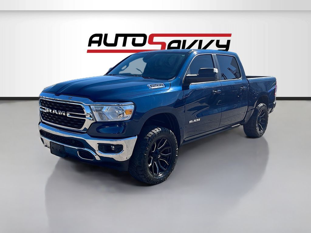 Explore the rugged elegance of the 2022 RAM 1500 Big Horn Crew Cab 4x4, now available at AutoSavvy Colorado Springs. This Patriot Blue Pearlcoat beauty boasts a powerful HEMI 5.7L V-8 engine with 395 horsepower, ensuring a commanding performance on any terrain. With only 27,043 miles, this truck is primed for countless adventures. The Big Horn trim offers premium features, including an 8.4-inch touchscreen with Apple CarPlay and Android Auto, heated front seats, and a heated steering wheel for ultimate comfort. The vehicle is equipped with advanced safety features like a backup camera, automatic emergency braking, and stability control, making every drive secure and enjoyable. The current status of the title is branded, presenting a unique opportunity for savvy buyers. As a Savvy Certified vehicle, it comes with AutoSavvy's 4-month/4,500-mile warranty, providing additional peace of mind. This RAM 1500 also includes premium options such as trailer brake control and a Class IV receiver hitch, enhancing its towing capabilities. Visit AutoSavvy Colorado Springs today to experience the exceptional features and capabilities of the 2022 RAM 1500 Big Horn Crew Cab 4x4. Don’t miss this chance to own a truck that perfectly blends power, technology, and style, ready to elevate your driving experience.