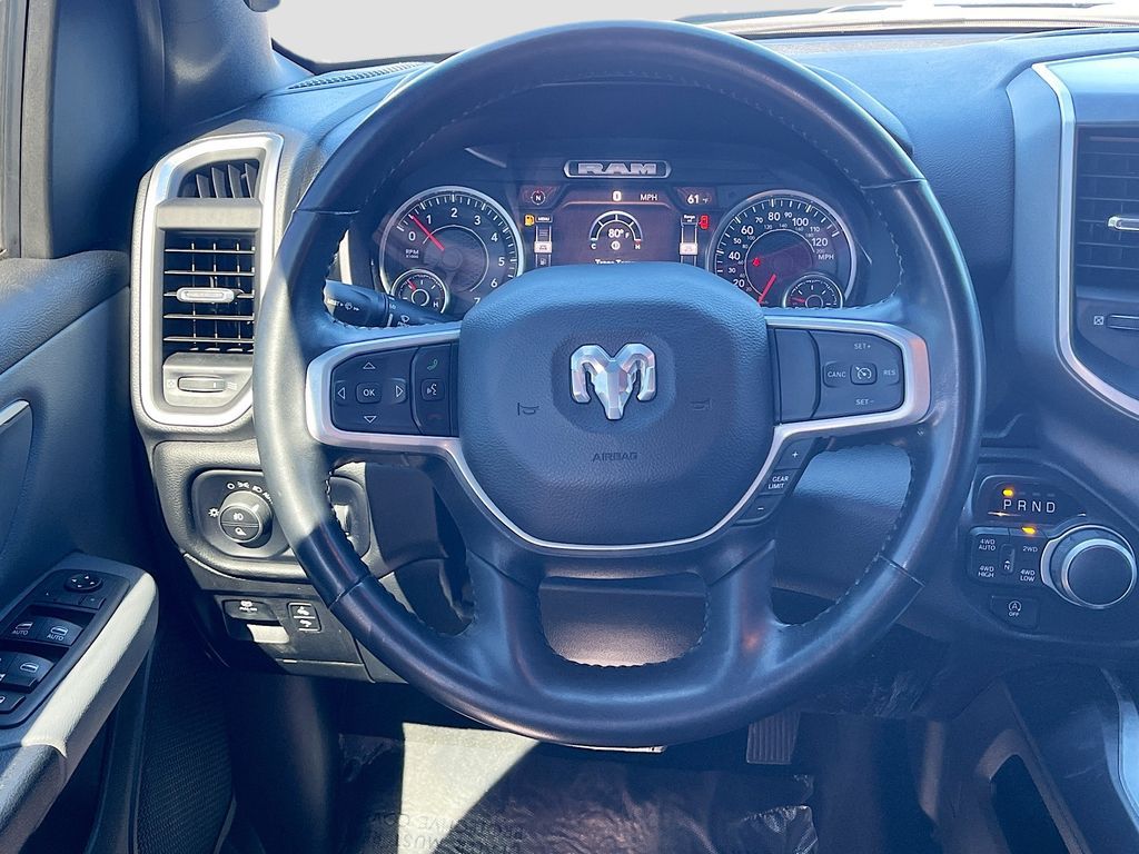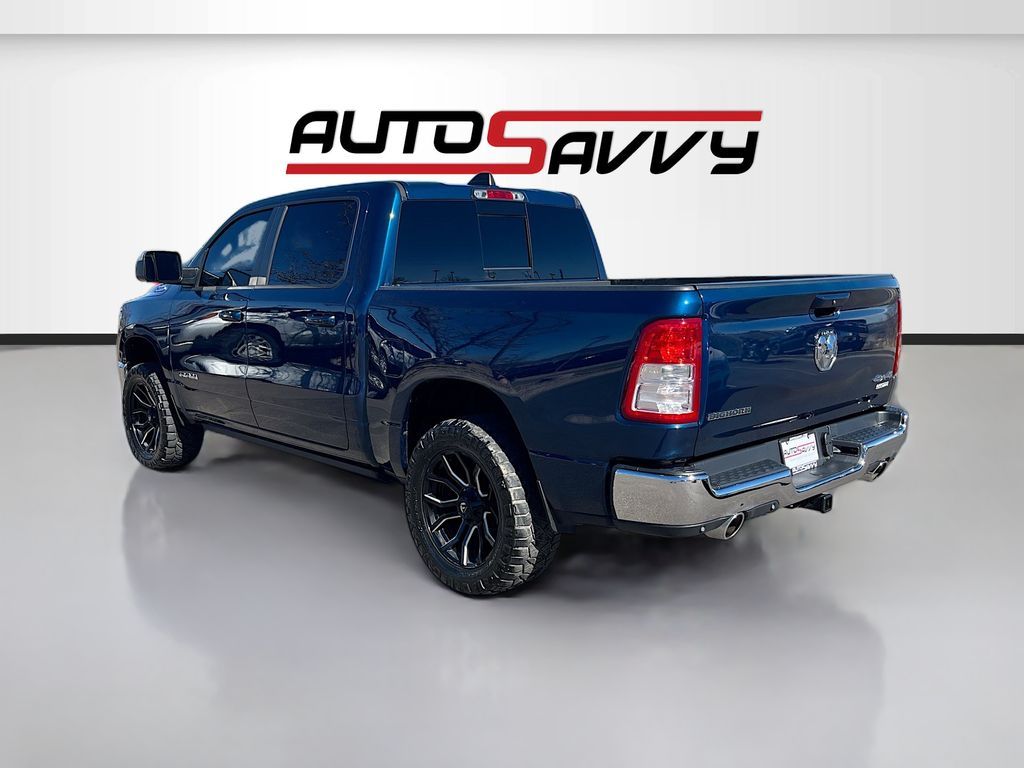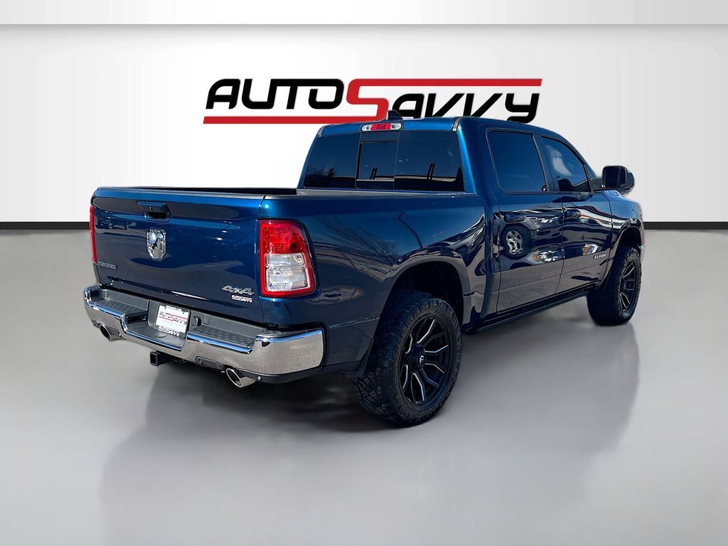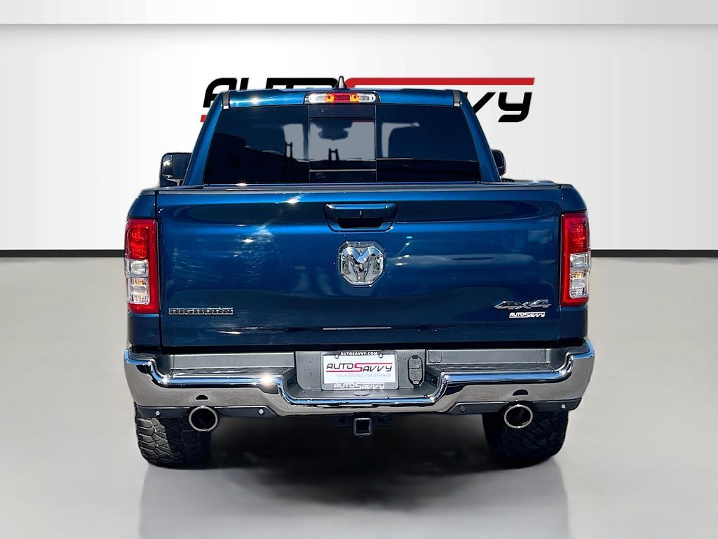 Explore the rugged elegance of the 2022 RAM 1500 Big Horn Crew Cab 4x4, now available at AutoSavvy Colorado Springs. This Patriot Blue Pearlcoat beauty boasts a powerful HEMI 5.7L V-8 engine with 395 horsepower, ensuring a commanding performance on any terrain. With only 27,043 miles, this truck is primed for countless adventures. The Big Horn trim offers premium features, including an 8.4-inch touchscreen with Apple CarPlay and Android Auto, heated front seats, and a heated steering wheel for ultimate comfort. The vehicle is equipped with advanced safety features like a backup camera, automatic emergency braking, and stability control, making every drive secure and enjoyable. The current status of the title is branded, presenting a unique opportunity for savvy buyers. As a Savvy Certified vehicle, it comes with AutoSavvy's 4-month/4,500-mile warranty, providing additional peace of mind. This RAM 1500 also includes premium options such as trailer brake control and a Class IV receiver hitch, enhancing its towing capabilities. Visit AutoSavvy Colorado Springs today to experience the exceptional features and capabilities of the 2022 RAM 1500 Big Horn Crew Cab 4x4. Don’t miss this chance to own a truck that perfectly blends power, technology, and style, ready to elevate your driving experience.