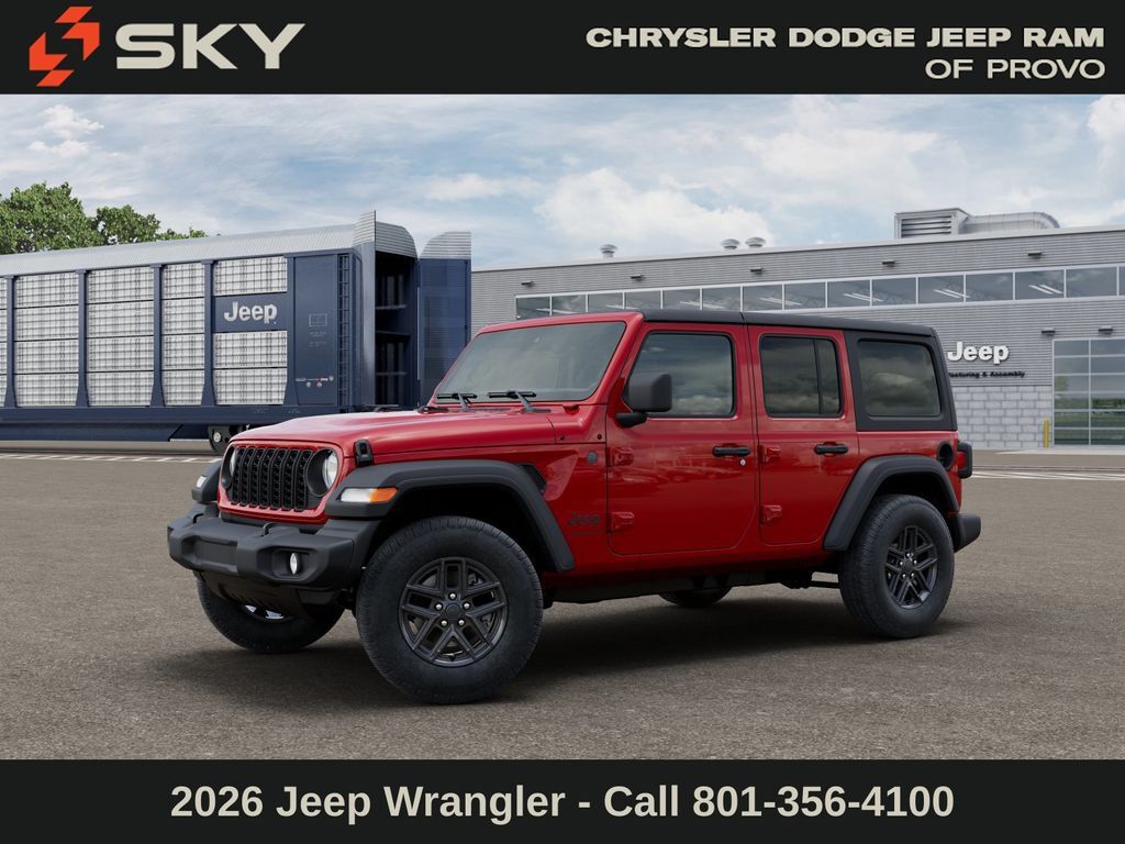 Adventure starts here with the new Jeep Wrangler, available now at Sky CDJR of Provo! As your local Jeep dealership near Salt Lake City, we know how to match Utah drivers with legendary 4x4 capability and open-road freedom. Whether it’s mountain trails or desert drives, the Wrangler is ready to take you there. Call 801-356-4100 today to start your next adventure! Firecracker Red Clearcoat 2026 Jeep Wrangler Sport 4WD 8-Speed Automatic 2.0L I4 DOHC
