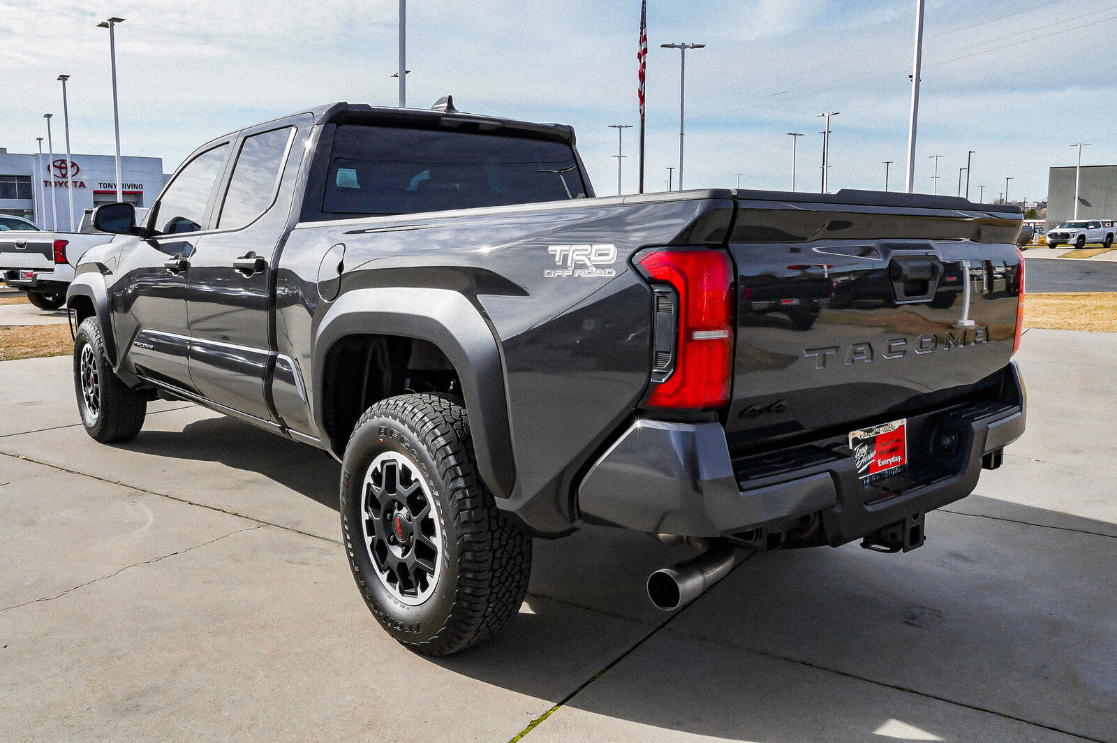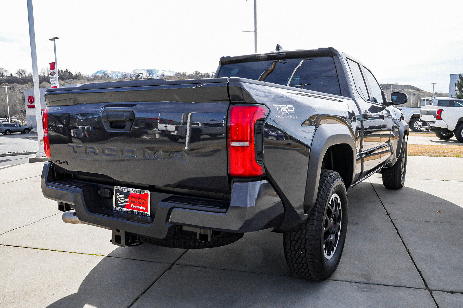 Boasts 23 Highway MPG and 19 City MPG! This Toyota Tacoma 4WD delivers a Intercooled Turbo Regular Unleaded I-4 2.4 L/146 engine powering this Automatic transmission. TRD OFF ROAD PACKAGE (OC), TRD OFF ROAD PACKAGE, LONG BED -inc: 6ft rear deck and deck rail cleats. This Toyota Tacoma 4WD Features the Following Options Wi-Fi Connect with 30-day or up to 3GB trial subscription Mobile Hotspot Internet Access, Wheels: 18, Variable Intermittent Wipers, Trip Computer, Transmission: 8-Speed Automatic -inc: Electronically controlled w/intelligence (ECT-i), Transmission w/Sequential Shift Control, Trailer Wiring Harness, Toyota Safety Sense P (TSS-P), Tires: 265/65R18, Tailgate Rear Cargo Access. Visit Us Today A short visit to Tony Divino Toyota located at 777 West Riverdale Rd, Riverdale, UT 84405 can get you a reliable Tacoma 4WD today! * Estimated Monthly Payment will depend on vehicle make and model and will be determined upon actual vehicle inspection. All payments are estimates. Tax, title, registration and documentation fee ($349) are extra.* While every reasonable effort is made to ensure the accuracy of this information, we are not responsible for any errors or omissions contained on these pages. Please verify any information in question with Tony Divino Toyota.