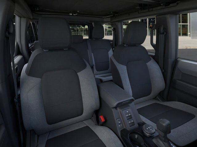 Equipment Group 222A Mid Package,Carbonized Gray Molded-in-Color Hard Top,Hard Top Sound Deadening Headliner,Ambient Footwell Lighting,2-Door Intelligent Access with Lock/Unlock,Auto High-Beam Headlamps,BLIS Blind Spot Information System,Connected Navigation,Dual-Zone Electronic Automatic Temperature Control,Rear-Window Defroster and Washer,Ford Connectivity Package (1-Year Included),Front Row Heated Seats,Driver and Front Passenger Illuminated Sliding Visor Vanity Mirrors,Lane-Keeping System,Ford Co-Pilot360,Pre-Collision Assist with Automatic Emergency Braking,Pro Power Onboard - 400W,Rear Parking Sensors,Rear-View Camera,SiriusXM with 360L,4.46 Axle Ratio,AM/FM Stereo,Cloth Bucket Seats,Wheels: 17 Carbonized Gray-Painted Aluminum,SYNC 4,Dual Smart Charging USB Ports,4-Wheel Disc Brakes,Emergency communication system: 911 Assist,AM/FM radio: SiriusXM with 360L,Auto High-beam Headlights,Exterior Parking Camera Rear,Compass,7 Speakers,Front beverage holders,Variably intermittent wipers,Trip computer,Traction control,Tilt steering wheel,Telescoping steering wheel,Steering wheel mounted audio controls,Split folding rear seat,Speed control,Security system,Remote keyless entry,Radio data system,Power windows,Power steering,Power door mirrors,Passenger vanity mirror,Passenger door bin,Panic alarm,Overhead console,Overhead airbag,Outside temperature display,Occupant sensing airbag,Low tire pressure warning,Integrated roll-over protection,Illuminated entry,Heated door mirrors,Fully automatic headlights,Front wheel independent suspension,Front reading lights,Front anti-roll bar,Dual front side impact airbags,Dual front impact airbags,Driver vanity mirror,Driver door bin,Delay-off headlights,Brake assist,Alloy wheels,ABS brakes,Tachometer,Front Center Armrest,Front Bucket Seats,Electronic Stability Control,Air Conditioning,DARK GRAY W/BLACK ONYX CLOTH BUCKET SEATS -inc: 6-way manual driver and passenger including fore/aft up/down and recline,CARBONIZED GRAY MOLDED-IN-COLOR HARD TOP -inc: Rear-Window Defroster & Washer,EQUIPMENT GROUP 222A MID PACKAGE -inc: Rear Parking Sensors Pro Power Onboard - 400W Back side of center floor console Dual Smart Charging USB Ports Front Row Heated Seats Dr & Pass Illuminated Sliding Visor Vanity Mirrors Dual-Zone Electronic Automatic Temperature Control air conditioning Ford Co-Pilot360 Auto High-Beam Headlamps Pre-Collision Assist w/Automatic Emergency Braking pedestrian detection forward collision warning and dynamic brake support Blind Spot Information System (BLIS) Cross-Traffic Alert Rear View Camera backup assist grid lines Lane-Keeping System Lane-Keeping Alert Lane-Keeping Aid and Driver Alert Connected Navigation Ford connectivity package pinch-to-zoom capability live traffic predictive destinations and route guidance and One Box search Ambient Footwell Lighting 2-Door Intelligent Access w/Lock/Unlock Intelligent Access will also lock/unlock the swing gate,HARD TOP SOUND DEADENING HEADLINER,TRANSMISSION: 10-SPEED AUTOMATIC -inc: trail control and trail turn assist 3.73 Axle Ratio,ENGINE: 2.3L ECOBOOST I-4 (STD),SHADOW BLACK,Turbocharged,Four Wheel Drive,Power Steering,ABS,4-Wheel Disc Brakes,Brake Assist,Aluminum Wheels,Tires - Front All-Terrain,Tires - Rear All-Terrain,Conventional Spare Tire,Tire Pressure Monitor,Conventional Spare Tire,Tow Hooks,Tow Hooks,Heated Mirrors,Power Mirror(s),Intermittent Wipers,Variable Speed Intermittent Wipers,Privacy Glass,Rollover Protection Bars,Convertible Soft Top,Power Door Locks,Daytime Running Lights,Automatic Headlights,LED Headlights,Automatic Highbeams,AM/FM Stereo,MP3 Capability,Steering Wheel Audio Controls,Satellite Radio,Requires Subscription,MP3 Capability,Bluetooth Connection,Telematics,Auxiliary Audio Input,WiFi Hotspot,Smart Device Integration,Requires Subscription,Bluetooth Connection,Pass-Through Rear Seat,Rear Bench Seat,Adjustable Steering Wheel,Trip Computer,Power Windows,Leather Steering Wheel,Keyless Start,Keyless Entry,Power Door Locks,Cruise Control,A/C,Cloth Seats,Bucket Seats,Driver Vanity Mirror,Passenger Vanity Mirror,Smart Device Integration,Requires Subscription,Smart Device Integration,WiFi Hotspot,Power Windows,Power Door Locks,Trip Computer,Security System,Immobilizer,Traction Control,Stability Control,Traction Control,Front Side Air Bag,Telematics,Requires Subscription,Front Collision Mitigation,Tire Pressure Monitor,Driver Air Bag,Passenger Air Bag,Front Head Air Bag,Rear Head Air Bag,Passenger Air Bag Sensor,Driver Restriction Features,Child Safety Locks,Back-Up Camera