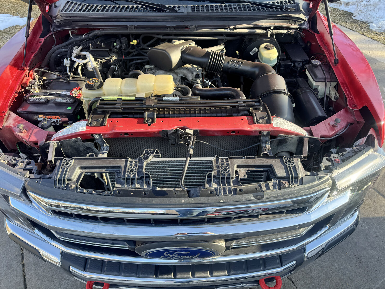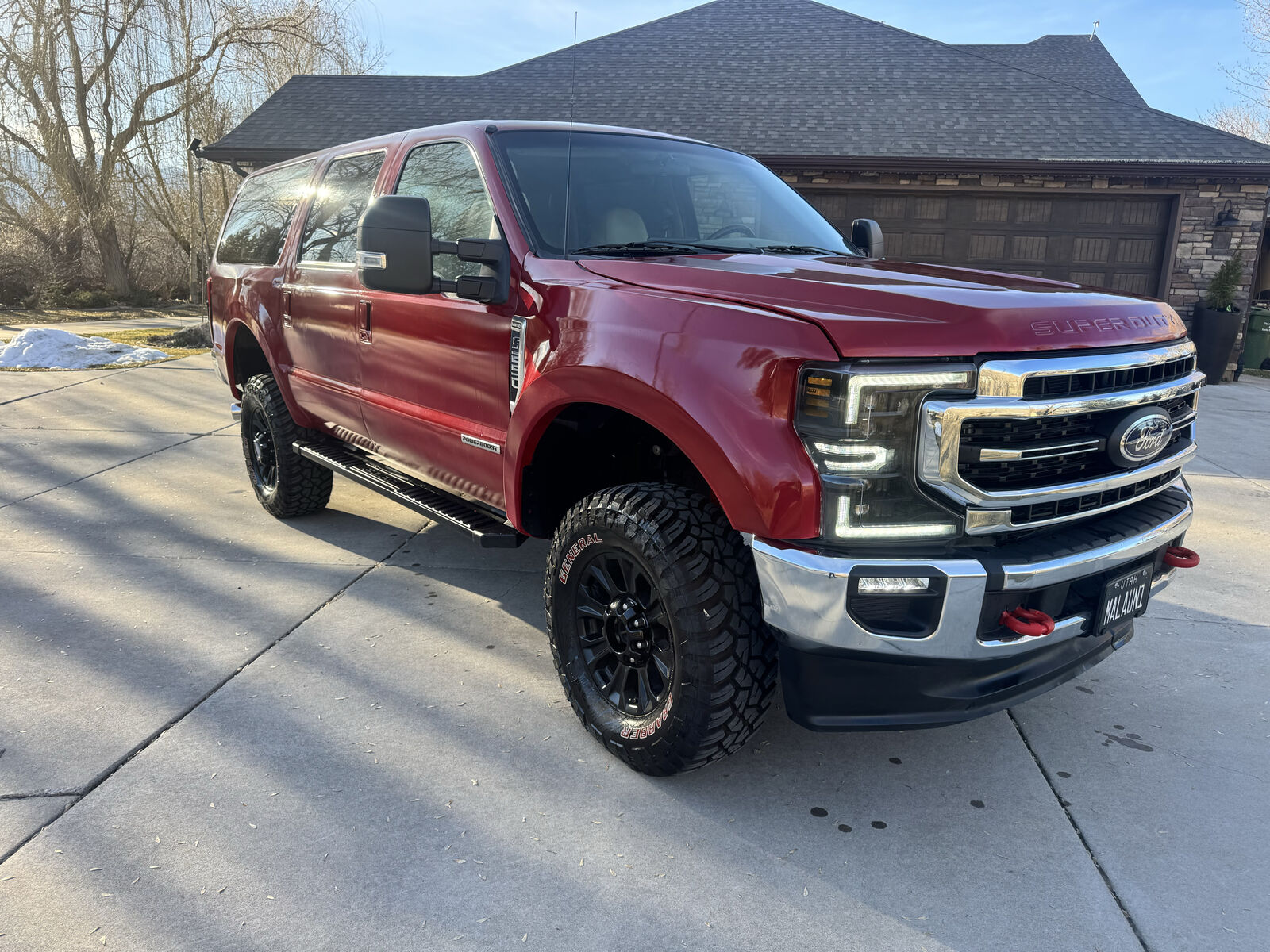 115k original miles, new leather, new carpet, 10” Kenwood display navigation, satellite radio with JBL speakers, new tires and ford tremor wheels, new ford running boards, new ford tremor shocks, rotors and brakes, new AC condenser and recharged system. new Banks exhaust system, 3” Rough Country lift installed with new front lift springs. New front and rear fiberglass fender flares and hood. 2022 ford super duty grill and bumpers, Morimoto headlights and 2022 ford taillights. Exterior has been painted does have some flaws and body work has been done to passenger rear and top near of rear passenger window. Done most of the work myself. Accurate Automotive in Logan recently installed the exhaust system and serviced the vehicle.