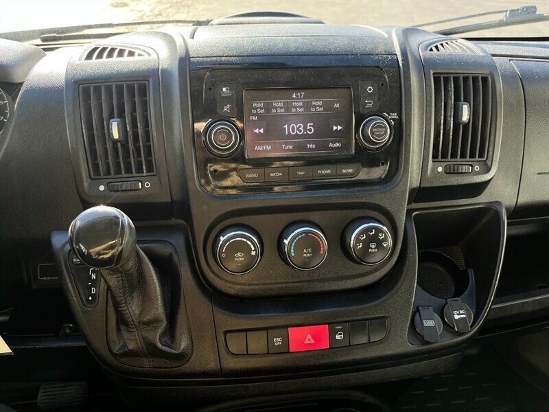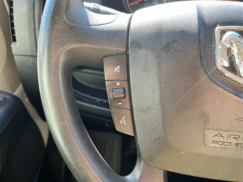 INSTALLED FEATURES: Air filtration, Front air conditioning, Front air conditioning zones: single, Airbag deactivation: occupant sensing passenger, Front airbags: dual, Side airbags: front, Side curtain airbags: front, Antenna type: mast, Auxiliary audio input: Bluetooth / jack / USB, Radio: AM/FM / touch screen display / voice operated, Total speakers: 4, ABS: 4-wheel, Braking assist, Electronic brakeforce distribution, Front brake type: ventilated disc, Power brakes, Rear brake type: ventilated disc, Armrests: drivers seat, Floor material: rubber/vinyl, Shift knob trim: urethane, Steering wheel trim: urethane, Assist handle: front, Cargo area light, Cupholders: front, Multi-function remote: keyless entry / trunk release, One-touch windows: 2, Power outlet(s): 12V front, Power steering, Reading lights: front, Rearview mirror: manual day/night, Steering wheel: telescopic, Steering wheel mounted controls: audio / phone, Storage: cargo tie-down anchors and hooks / door pockets / in dash, Sun visors, Body side moldings: black, Door handle color: black, Front bumper color: black, Grille color: black / chrome surround, Mirror color: black, Rear bumper color: black, Rear trunk/liftgate: barn, Side door type: passenger-side manual sliding, Window trim: black, Infotainment: Uconnect, Infotainment screen size: 5 in., Clock, Digital odometer, External temperature display, Fuel economy display: MPG / range, Gauge: tachometer, Trip odometer, Warnings and reminders: low battery / low fuel level / low oil level / maintenance due, Clearance lights, Headlights: auto delay off / halogen, Side mirror adjustments: manual / manual folding, Side mirrors: integrated turn signals, Alternator: 180 amps, Auxiliary oil cooler, Auxiliary transmission fluid cooler, Battery rating: 800 CCA, Battery saver, Emissions: 50 state, OEM roof height: high, Camera system: rearview, Crumple zones: front, Rearview monitor: in dash, Emergency locking retractors: front, Front seatbelts: 3-point, Seatbelt force limiters: front, Seatbelt pretensioners: front, Seatbelt warning sensor: front, Driver seat manual adjustments: 4 / reclining, Front headrests: 2 / adjustable, Front seat type: bucket, Passenger seat manual adjustments: 4 / reclining, Upholstery: cloth, Anti-theft system: vehicle immobilizer, Power door locks: auto-locking, Hill holder control, Roll stability control, Stability control, Traction control, Trailer stability control, Front shock type: gas, Front spring type: coil, Front stabilizer bar, Front struts: MacPherson, Front suspension classification: independent, Front suspension type: lower control arms, Rear shock type: gas, Rear spring type: leaf, Rear suspension classification: solid axle, Rear suspension type: multi-leaf, Driver assistance app: roadside assistance, Hands-free phone call integration: voice operated, Wireless data link: Bluetooth, Spare tire mount location: underbody, Spare tire size: full-size, Spare wheel type: steel, Tire Pressure Monitoring System, Wheel covers: partial, Wheels: steel, Front wipers: variable intermittent, Power windows, Solar-tinted glass