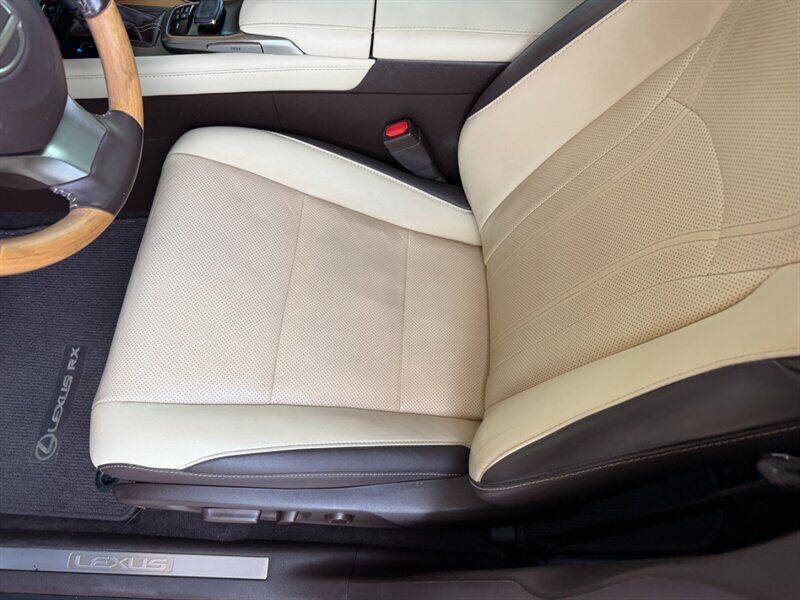 Satin Cashmere Metallic on the outside, Parchment leather-trim interior with Matte Bamboo trim on the inside — this 2019 Lexus RX 350 blends elegant styling with everyday practicality. Under the hood is the smooth, responsive 3.5L V6 engine producing 295 hp and 267 ft-lbs of torque, paired with Lexus’ refined 8-speed automatic transmission for confident, relaxed driving. Fuel economy is very reasonable for a luxury midsize SUV at an EPA-rated 20 MPG city / 27 MPG highway.