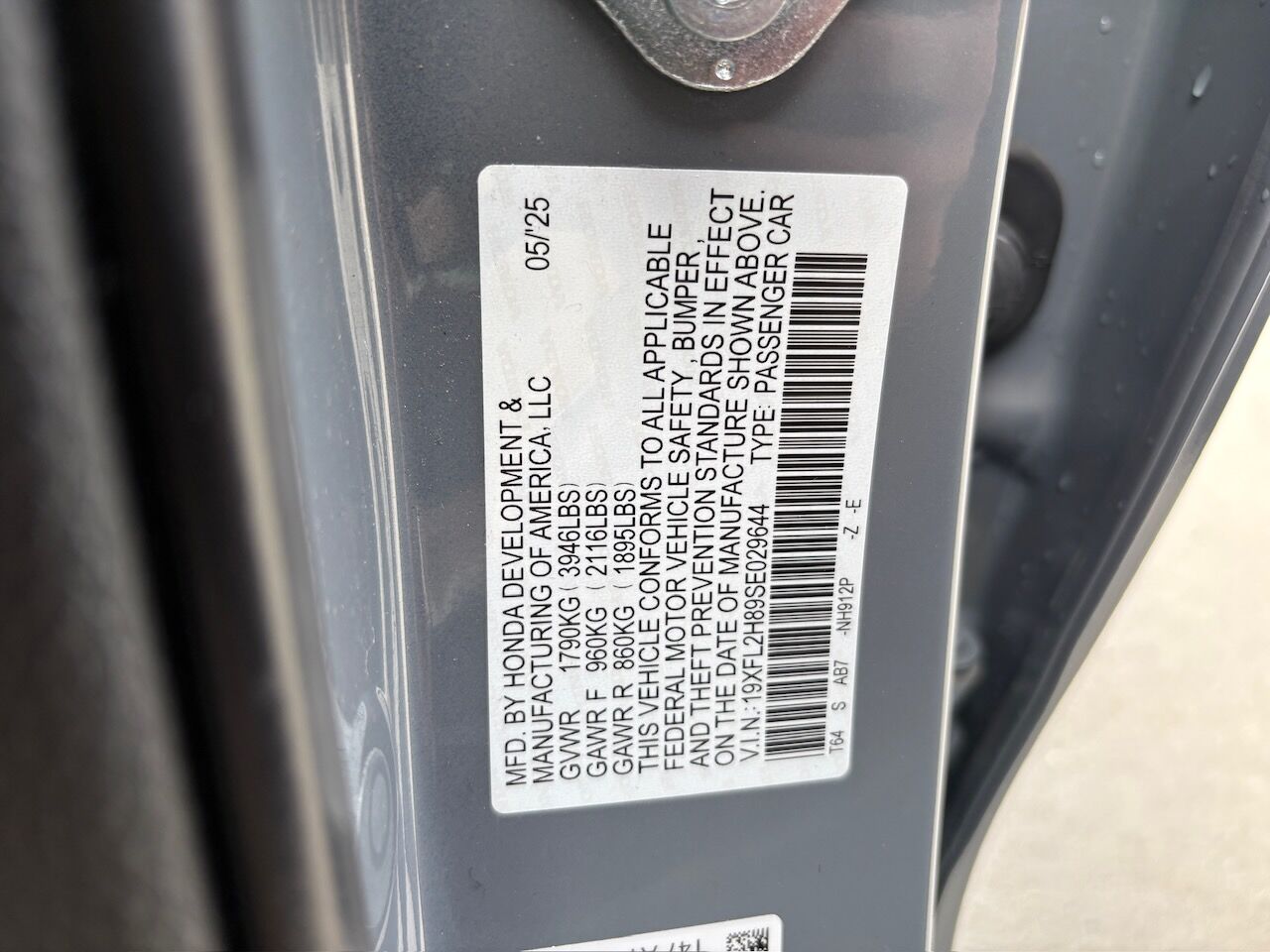 VIN: 19XFL2H89SE029644