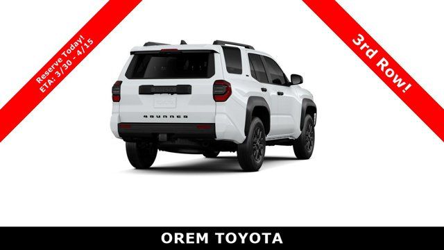 BLACK FRONT EMBLEM BADGE OVERLAY (TMS),4RUNNER ALL WEATHER CARGO TRAY (TMS),THIRD ROW SEATING - FABRIC,4RUNNER ALL WEATHER FLOOR MATS (TMS),BADGE INSERTS REAR TOYOTA MATTE BLACK(TMS),Turbocharged,Four Wheel Drive,Tow Hitch,Power Steering,ABS,4-Wheel Disc Brakes,Brake Assist,Aluminum Wheels,Tires - Front All-Season,Tires - Rear All-Season,Conventional Spare Tire,Tow Hooks,Heated Mirrors,Power Mirror(s),Rear Defrost,Privacy Glass,Intermittent Wipers,Variable Speed Intermittent Wipers,Rear Spoiler,Power Door Locks,Daytime Running Lights,Automatic Headlights,LED Headlights,Fog Lamps,Automatic Highbeams,Security System,AM/FM Stereo,Satellite Radio,MP3 Capability,Immobilizer,Bluetooth Connection,Telematics,Auxiliary Audio Input,WiFi Hotspot,Smart Device Integration,Requires Subscription,MP3 Capability,Steering Wheel Audio Controls,Bluetooth Connection,Bucket Seats,Driver Adjustable Lumbar,Pass-Through Rear Seat,Rear Bench Seat,Adjustable Steering Wheel,Trip Computer,Power Windows,WiFi Hotspot,Leather Steering Wheel,Keyless Entry,Power Door Locks,Keyless Start,Keyless Entry,Power Door Locks,Cruise Control,Adaptive Cruise Control,Climate Control,Multi-Zone A/C,A/C,Cloth Seats,Driver Vanity Mirror,Passenger Vanity Mirror,Driver Illuminated Vanity Mirror,Passenger Illuminated Visor Mirror,Keyless Start,Smart Device Integration,Power Windows,Power Door Locks,Trip Computer,Security System,Immobilizer,Cruise Control Steering Assist,Traction Control,Stability Control,Traction Control,Front Side Air Bag,Telematics,Requires Subscription,Front Collision Mitigation,Blind Spot Monitor,Cross-Traffic Alert,Lane Departure Warning,Lane Keeping Assist,Lane Departure Warning,Tire Pressure Monitor,Driver Air Bag,Passenger Air Bag,Front Head Air Bag,Rear Head Air Bag,Passenger Air Bag Sensor,Front Side Air Bag,Rear Side Air Bag,Knee Air Bag,Child Safety Locks,Back-Up Camera