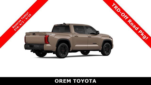 Our powerful 2026 Toyota Tundra Limited CrewMax 4X4 with the TRD Off-Road Package looks fantastic in Terra! Motivated by a Twin-TurboCharged 3.4 Liter i-FORCE V6 supplying 389hp to a 10 Speed Automatic transmission with a multimode performance system for tailored capability. Also easy to handle even in difficult conditions, this Four Wheel Drive truck scores nearly 22mpg on the highway with a bold and refined design. Check out our Tundra's LED lighting, fog lamps, 20-inch TRD alloy wheels with All-Terrain tires, an aluminum-reinforced composite bed, TRD grille, multifunction mirrors, and a stamped easy lift/lower tailgate with a remote-release bump switch at the back.