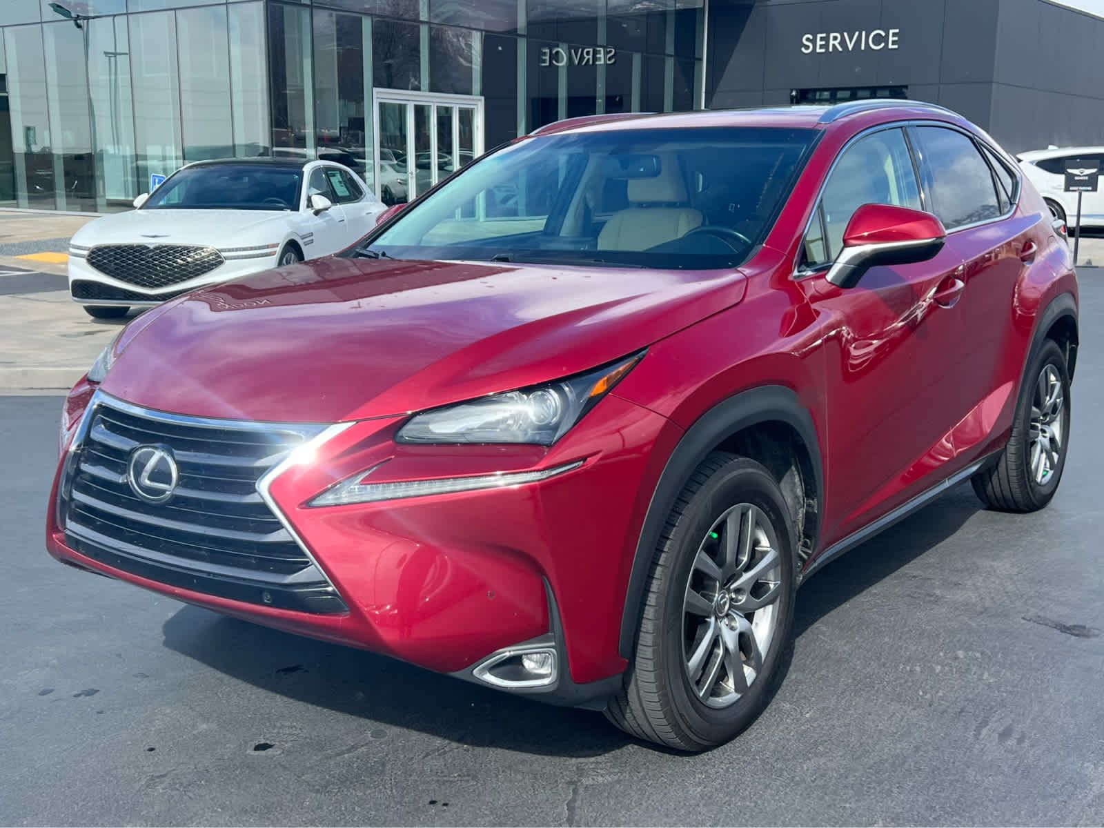 All Wheel Drive, Turbocharged, Satellite Radio, iPod/MP3 Input, CD Player, Keyless Start, Dual Zone A/C Rear Spoiler, MP3 Player, Privacy Glass, Keyless Entry. Non-Smoker vehicle Lexus NX 200t with Matador Red Mica exterior and Creme interior features a 4 Cylinder Engine with 235 HP at 4800 RPM*.