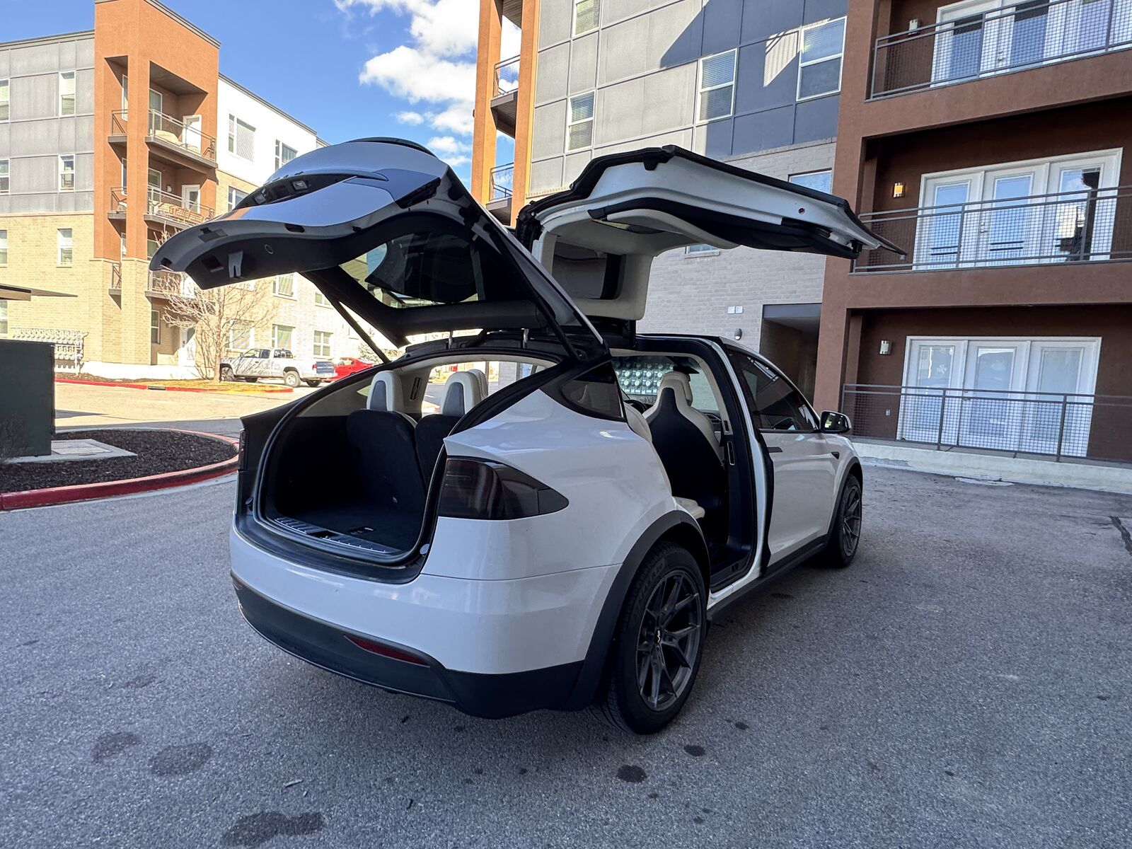 Peacefully upgraded with brand new wheels and tires, smoked tail lights, and in near perfect condition. All-electric luxury SUV with incredible performance and technology.