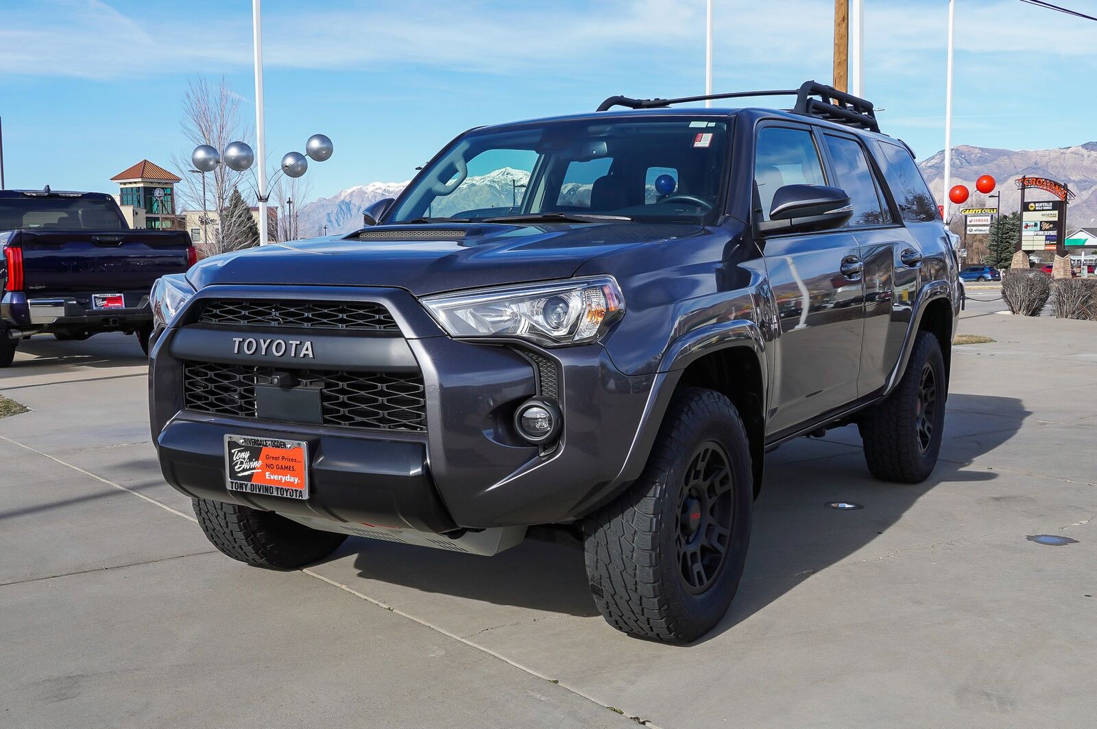 Only 25,059 Miles! Boasts 19 Highway MPG and 16 City MPG! This Toyota 4Runner boasts a Regular Unleaded V-6 4.0 L/241 engine powering this Automatic transmission. Wireless Phone Connectivity, Window Grid Diversity Antenna, Wheels: 17 Matte Black Flow-Formed TRD Alloy. This Toyota 4Runner Features the Following Options Wheel Locks, Variable Intermittent Wipers w/Heated Wiper Park, Valet Function, Turn-By-Turn Navigation Directions, Trip Computer, TRD Shift Knob, TRD Pro Exhaust, TRD Pro Badging -inc: C-pillar and liftgate, TRD Pro All Weather Floor Liner, Transmission: 5-Speed ECT Automatic. Visit Us Today Come in for a quick visit at Tony Divino Toyota , 777 West Riverdale Rd, Riverdale, UT 84405 to claim your Toyota 4Runner! * Estimated Monthly Payment will depend on vehicle make and model and will be determined upon actual vehicle inspection. All payments are estimates. Tax, title, registration and documentation fee ($349) are extra.* While every reasonable effort is made to ensure the accuracy of this information, we are not responsible for any errors or omissions contained on these pages. Please verify any information in question with Tony Divino Toyota.