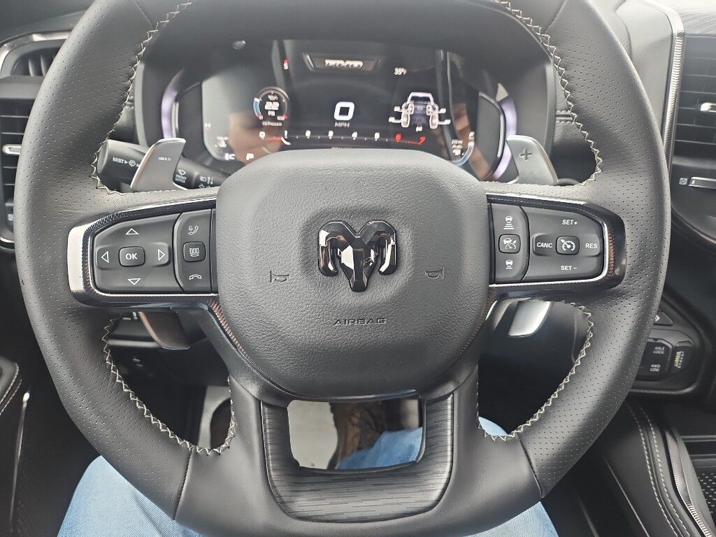 This 2026 Ram 1500 comes equipped with Android Auto for seamless smartphone integration on the road. An off-road package is installed on the Ram 1500 so you are ready for your four-wheeling best. See what's behind you with the back up camera on this unit. This Ram 1500's Forward Collision Warning system alerts the driver to potential front-end collisions, enhancing safety. The leather seats in this unit are a must for buyers looking for comfort, durability, and style. This vehicle is pure luxury with a heated steering wheel. The Ram 1500 features a hands-free Bluetooth phone system. Start this 1/2 ton pickup from inside with remote start. The installed navigation system will keep you on the right path. This 2026 Ram 1500 offers Apple CarPlay for seamless connectivity. This unit has automated speed control that adjusts to maintain a safe following distance, enhancing highway driving convenience. A trailer braking system is already installed on this 2026 Ram 1500 .