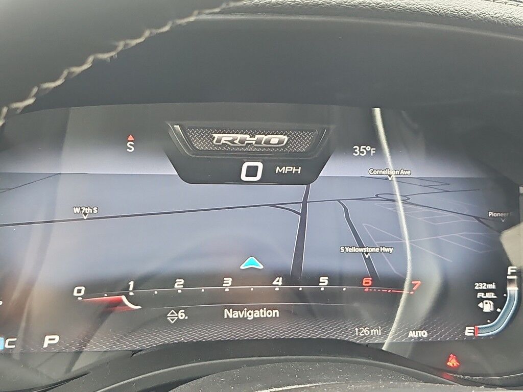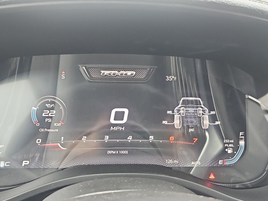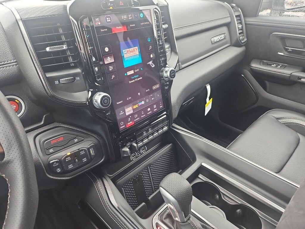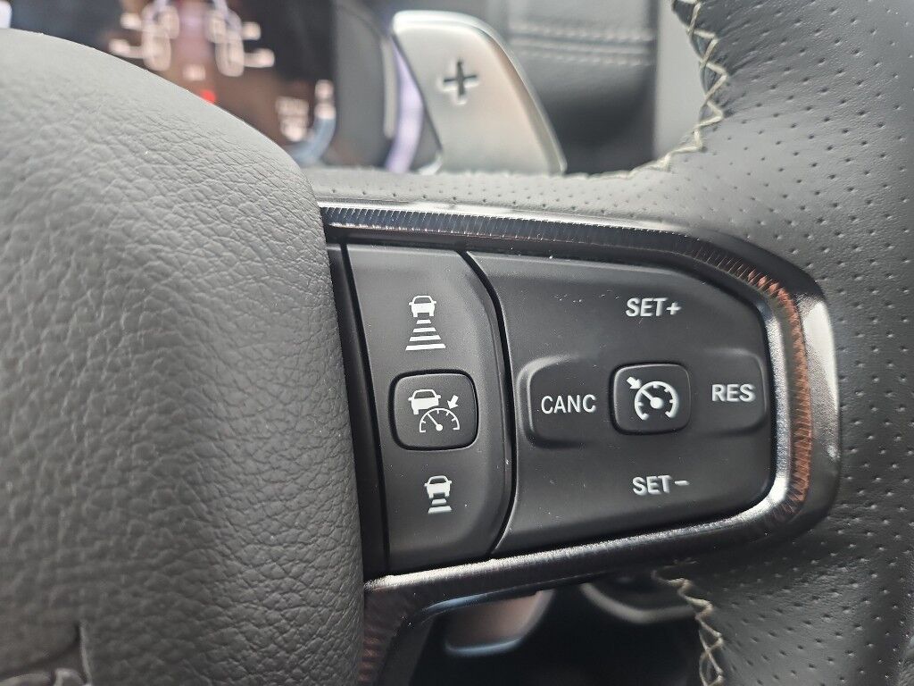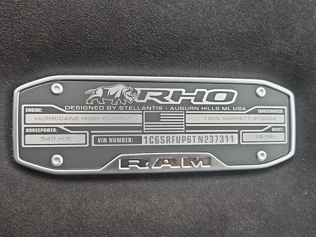 Bed Utility Group: MOPAR Deployable Bed Step; MOPAR 4 Adjustable Cargo Tie-Down Hooks; Exterior 115V AC Outlet,Quick Order Package 22Y RHO,MOPAR Off-Road Style Running Boards,Forward Collision Warning-Plus,Integrated navigation system with voice activation,Blind Spot Detection,Keyfob remote start,Heated steering wheel,Uconnect w/Bluetooth handsfree wireless device connectivity,Apple CarPlay/Android Auto smart device wireless mirroring,Heated driver and front passenger seats,Leather front seat upholstery,MOPAR retractable rear step,Driver seat with 8-way directional controls,Front passenger seat with 8-way directional controls,12 inch primary display,Pedestrian Emergency Braking,4G LTE Wi-Fi Hot Spot mobile hotspot internet access,Rear mounted camera,Active Lane Management System,Adaptive cruise control with stop and go,Predictive brake assist system,Cruise control with steering wheel mounted controls,Primary monitor touchscreen,Cross Path Detection collision warning,Driver seat power reclining, lumbar support, cushion tilt, fore/aft control and height adjustable control,Automatic full-time 4WD,Hurricane 3L I-6 gasoline direct injection, DOHC, variable valve control, twin turbo, premium unleaded, engine with 540HP,Hurricane 3L I-6 DOHC,Front wireless smart device charging,Smart key with hands-free access and push button start,Smart device remote start,Push-button,Wireless audio streaming,Gauge cluster display size: 12.00,Following distance alert,Dual-zone front climate control,Off-road speed control,Full gauge cluster screen,Remote reservoir shock absorbers,Auto high-beam headlights,Immobilizer,Active noise cancellation,Real-time traffic,Trailer brake controller,Trailer sway control,External memory control,Internet radio capability,9 USB ports,Digital/analog instrumentation display,Configurable instrumentation gauges,Electronic stability control system with anti-roll,Hill descent control