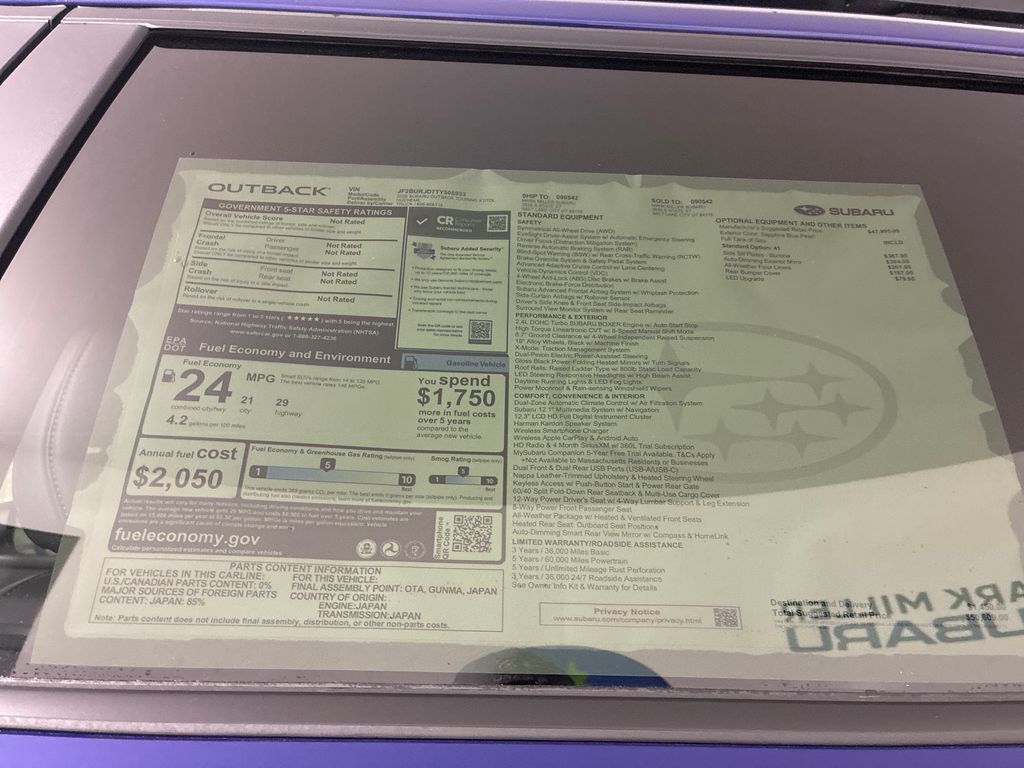 Mark Miller Subaru is the leading Subaru dealership in Utah. Our large inventory and dedicated sales teams has made us the go to destination for the Subaru brand in Utah. Our Promise Price is the best way to buy a Subaru in Utah. Come experience the Mark Miller Subaru difference today! ** This 2026 Sapphire Blue Pearl Subaru Outback Touring XT AWD is well equipped and includes these features and benefits: Standard Model, 12 Speakers, 4-Wheel Disc Brakes, ABS brakes, Air Conditioning, All-Weather Floor Liners, Alloy wheels, AM/FM radio: SiriusXM with 360L, Anti-whiplash front head restraints, Auto High-beam Headlights, Auto-Dimming Exterior Mirror with Approach Light, Auto-dimming Rear-View mirror, Automatic temperature control, Blind Spot Warning, Brake assist, Bumpers: body-color, Compass, Driver door bin, Driver vanity mirror, Dual front impact airbags, Dual front side impact airbags, Electronic Stability Control, Emergency communication system: MySubaru Companion (5-years free), Exterior Parking Camera Rear, Four wheel independent suspension, Front anti-roll bar, Front Bucket Seats, Front Center Armrest w/Storage, Front dual zone A/C, Front fog lights, Front reading lights, Fully automatic headlights, Garage door transmitter: HomeLink, harman/kardon® Speakers, Heated and Ventilated Front Bucket Seats, Heated door mirrors, Heated front seats, Heated rear seats, Heated steering wheel, HVAC memory, Illuminated entry, Illuminated Side Sill Plates, Knee airbag, Leather steering wheel, LED Upgrade, Low tire pressure warning, Memory seat, Nappa Leather-Trimmed Perforated Upholstery, Navigation system: MySubaru Navigator (1-year trial), Occupant sensing airbag, Outside temperature display, Overhead airbag, Overhead console, Panic alarm, Passenger door bin, Passenger vanity mirror, Power door mirrors, Power driver seat, Power Liftgate, Power moonroof, Power passenger seat, Power steering, Power windows, Radio: Subaru 12.1'' Multimedi