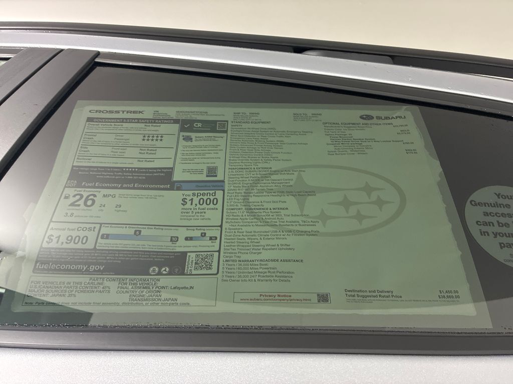 Mark Miller Subaru is the leading Subaru dealership in Utah. Our large inventory and dedicated sales teams has made us the go to destination for the Subaru brand in Utah. Our Promise Price is the best way to buy a Subaru in Utah. Come experience the Mark Miller Subaru difference today! ** This 2026 Ist Subaru Crosstrek Wilderness AWD is well equipped and includes these features and benefits: 4-Wheel Disc Brakes, 6 Speakers, ABS brakes, Air Conditioning, Alloy wheels, AM/FM radio: SiriusXM with 360L, Anti-whiplash front head restraints, Auto High-beam Headlights, Automatic temperature control, Brake assist, Bumpers: body-color, Driver door bin, Driver vanity mirror, Dual front impact airbags, Dual front side impact airbags, Electronic Stability Control, Emergency communication system: MySubaru Companion (5-years free), Exterior Parking Camera Rear, Four wheel independent suspension, Front anti-roll bar, Front Bucket Seats, Front Center Armrest, Front dual zone A/C, Front fog lights, Front reading lights, Fully automatic headlights, Heated door mirrors, Heated Front Bucket Seats, Heated front seats, Heated steering wheel, Illuminated entry, Knee airbag, Leather Shift Knob, Leather steering wheel, Low tire pressure warning, Occupant sensing airbag, Outside temperature display, Overhead airbag, Overhead console, Panic alarm, Passenger door bin, Passenger vanity mirror, Power door mirrors, Power steering, Power windows, Radio data system, Radio: Subaru 11.6'' Multimedia Plus System, Rear anti-roll bar, Rear seat center armrest, Rear side impact airbag, Rear window defroster, Rear window wiper, Remote keyless entry, Security system, Speed control, Speed-sensing steering, Split folding rear seat, Spoiler, Steering wheel mounted audio controls, Tachometer, Telescoping steering wheel, Tilt steering wheel, Traction control, Trip computer, Turn signal indicator mirrors, Variably intermittent wipers, Wheels: 17'' x 7.0'' J Matte Black Aluminum-Alloy, and Wilderness StarTex Upholstery **
