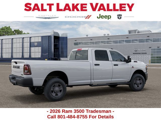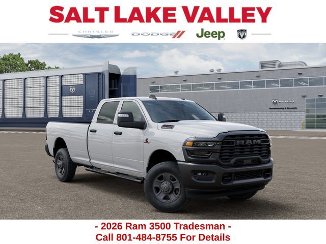 Get the job done and have fun doing it with the new Ram 3500 from Salt Lake Valley CDJR! Power, durability, and innovation come together in every Ram truck. Whether you’re working hard or exploring Utah’s backroads, the 3500 is built to handle it all. Call us today at 801-484-8755 to schedule a time to check it out! 2026 Ram 3500 Tradesman Bright White Clearcoat 6.7L I6