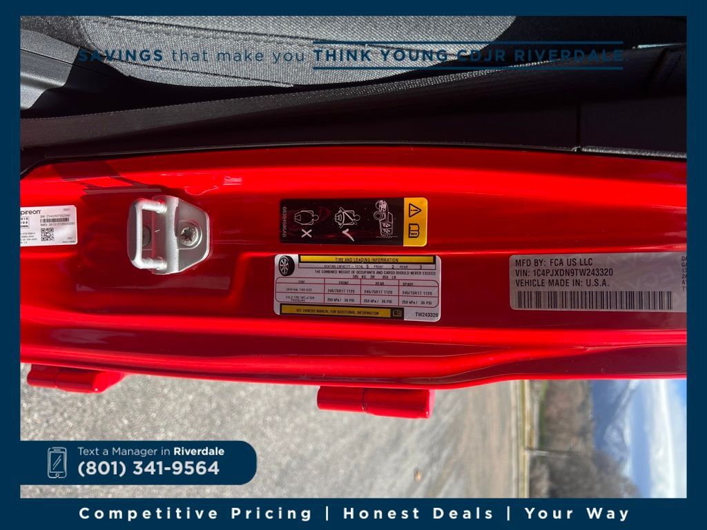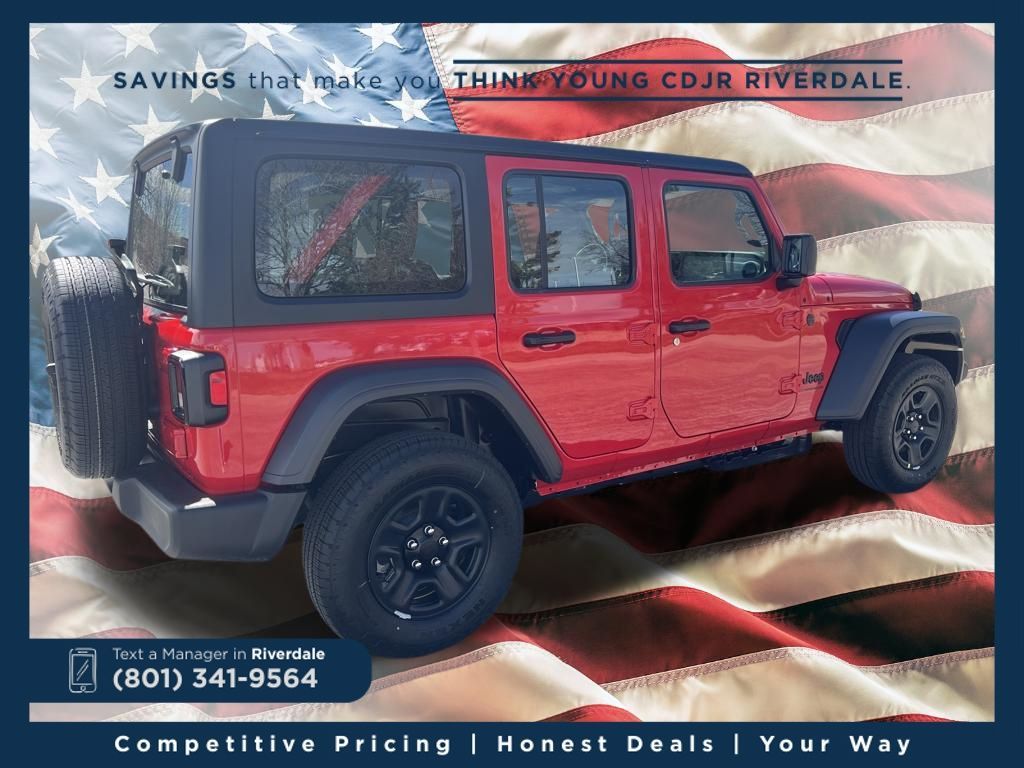 2026 Jeep Wrangler Sport Firecracker Red Clearcoat 2.0L I4 DOHC 8-Speed Automatic 4WD Price includes: $2,000 Neighborhood Discount: Neighborhood Discount applies to the state of Utah, Uintah County, and Evanston, WY. See dealership for complete details. $2,000 Finance Discount: Must finance through Young Chrysler Jeep Dodge Ram of Layton or one of their approved lenders to qualify.