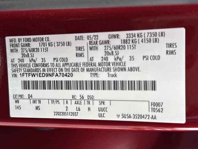 Certified. Rapid Red Metallic Tinted Clearcoat 2022 Ford F-150 XLT 4WD 10-Speed Automatic 3.5L PowerBoost Full-Hybrid V6 FOR MORE INFORMATION TEXT ME @ 801-829-9323*, INVENTORY REDUCTION EVENT*, SALE ********1340 SOUTH 500 WEST SALT LAKE CITY UT, 3.5L PowerBoost Full-Hybrid V6, 4WD, 10-Way Power Driver & Passenger Seats, 2-Bar Style Grille w/Chrome 2 Minor Bars, 8 Productivity Screen in Instrument Cluster, Auto-Dimming Rear-View Mirror, Bed Utility Package, BoxLink, Bright Polished Step Bars, Chrome Door & Tailgate Handles w/Body-Color Bezel, Chrome Single-Tip Exhaust, Class IV Trailer Hitch Receiver, Connected Built-In Navigation (DISC), Dual Zone Electronic Automatic Temperature Control, Equipment Group 302A High, Evasive Steering Assist, Extended Range 36 Gallon Fuel Tank, Ford Co-Pilot360 Assist 2.0 (DISC), Heated Front Seats, Integrated Trailer Brake Controller, Intelligent Access w/Push Button Start, Intelligent Adaptive Cruise Control w/Stop & Go, Intersection Assist, Leather-Wrapped Steering Wheel, LED Box Lighting, LED Reflector Headlamps, LED Sideview Mirror Spotlights, Max Trailer Tow Package, Onboard 400W Outlet, Power Glass Heated Sideview Mirrors, Pro Trailer Backup Assist, Radio: AM/FM SiriusXM w/360L, Rear Under-Seat Storage, Remote Start System w/Remote Tailgate Release, SecuriCode Drivers Side Keyless-Entry Keypad, Speed Sign Recognition, SYNC 4 w/Enhanced Voice Recognition, Tailgate Step w/Tailgate Work Surface, Wheels: 18 Chrome-Like PVD, XLT Chrome Appearance Package, Zone Lighting.Recent Arrival!SALE********SALEPRICE REDUCED*****SALESALE**