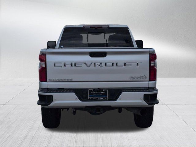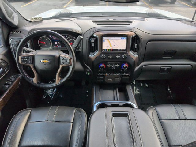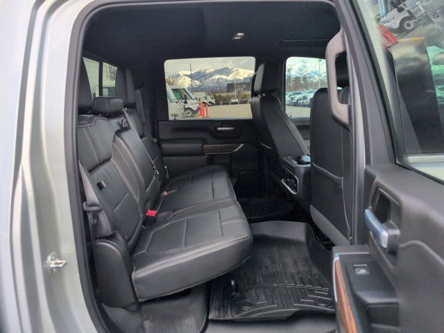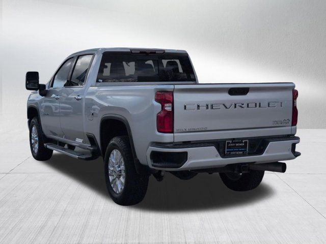 INTELLIBEAM AUTOMATIC HIGH BEAM ON/OFF,FOLLOWING DISTANCE INDICATOR,GOOSENECK / 5TH WHEEL PREP PACKAGE -- Hitch platform to accept Gooseneck or 5th Wheel hitch. Includes hitch platform with tray to accept ball stamped bed holes with removable caps installed and bed mounted 7-pin trailer harness (similar to UY2 harness).,TRANSMISSION ALLISON 10-SPEED AUTOMATIC,SAFETY ALERT SEAT,JET BLACK PERFORATED LEATHER SEATING SURFACES,TRAILER TIRE PRESSURE MONITOR SENSORS includes set of 4 sensors. Sensor functionality requires (U1D) In-vehicle Trailering App to be ordered with the vehicle and installed by the factory. Sensors will be shipped loose with the truck and will need to be installed on trailer by customer. System is capable of monitoring up to 6 wheels. Additional or replacement sensors are available through GM Accessories,SILVER ICE METALLIC,AUDIO SYSTEM CHEVROLET INFOTAINMENT 3 PREMIUM SYSTEM WITH CONNECTED NAVIGATION 8 DIAGONAL HD COLOR TOUCHSCREEN AM/FM STEREO Bluetooth audio streaming for 2 active devices wireless Apple CarPlay and Android Auto capable enhanced voice recognition additional memory for in-vehicle apps cloud connected personalization for select infotainment and vehicle settings. Subscription required for enhanced and connected services after trial period. (STD) (Includes (PZ8) Hitch Guidance with Hitch View.),SAFETY PACKAGE II includes (UEU) Forward Collision Alert (UFL) Lane Departure Warning (UHY) Automatic Emergency Braking (TQ5) IntelliBeam headlamps (UE4) Following Distance Indicator and (HS1) Safety Alert Seat,WINTER GRILLE COVER,ENGINE BLOCK HEATER,HIGH COUNTRY PREFERRED EQUIPMENT GROUP includes standard equipment,REAR AXLE 3.42 RATIO,WHEELS 20 (50.8 CM) POLISHED ALUMINUM 16-SPOKE (STD),ENGINE DURAMAX 6.6L TURBO-DIESEL V8 B20-DIESEL COMPATIBLE (445 hp [332 kW] @ 2800 rpm 910 lb-ft of torque [1220 Nm] @ 1600 rpm),GVWR 12 100 LBS. (5488 KG) WITH SINGLE REAR WHEELS,LPO BLACK BOWTIE EMBLEM FRONT (dealer-installed),AUTOMATIC EMERGENCY BRAKING,EXHAUST BRAKE,SEATS FRONT BUCKET WITH CENTER CONSOLE FOR CREW CAB AND DOUBLE CAB MODELS (STD),SUNROOF POWER ON CREW CAB MODELS,LICENSE PLATE KIT FRONT (will be shipped to orders with ship-to states that require front license plate),ALTERNATOR 220 AMPS,LANE DEPARTURE WARNING,NOT EQUIPPED WITH HEATED SECOND ROW OUTBOARD SEATS see dealer for details (Certain vehicles built on or after 7-26-2021 will include (RGJ) Not Equipped with Heated Second Row Outboard Seats which removes (KA6) Heated Second Row Outboard Seats.),FORWARD COLLISION ALERT,Tow Hitch,Locking/Limited Slip Differential,Four Wheel Drive,Tow Hooks,Power Steering,ABS,4-Wheel Disc Brakes,Aluminum Wheels,Tires - Front All-Terrain,Tires - Rear All-Terrain,Conventional Spare Tire,Running Boards/Side Steps,Daytime Running Lights,Fog Lamps,Heated Mirrors,Power Mirror(s),Integrated Turn Signal Mirrors,Power Folding Mirrors,Privacy Glass,Rear Defrost,Sliding Rear Window,Bed Liner,AM/FM Stereo,Navigation System,MP3 Capability,Bluetooth Connection,Auxiliary Audio Input,Smart Device Integration,Satellite Radio,Requires Subscription,Navigation System,Satellite Radio,Telematics,Requires Subscription,Premium Sound System,Bluetooth Connection,Bluetooth Connection,Smart Device Integration,WiFi Hotspot,Bucket Seats,Leather Seats,Power Driver Seat,Driver Adjustable Lumbar,Power Passenger Seat,Passenger Adjustable Lumbar,Heated Front Seat(s),Heated Front Seat(s),Cooled Front Seat(s),Mirror Memory,Seat Memory,Floor Mats,Floor Mats,Leather Steering Wheel,Heated Steering Wheel,Adjustable Steering Wheel,Steering Wheel Audio Controls,Tire Pressure Monitor,Power Windows,Power Windows,Power Door Locks,Remote Engine Start,Keyless Entry,Power Door Locks,Keyless Start,Cruise Control,Universal Garage Door Opener,Security System,Power Outlet,MP3 Capability,Auxiliary Audio Input,MP3 Capability,Auxiliary Audio Input,Power Outlet,Climate Control,Multi-Zone A/C,A/C,A/C,Rear A/C,Rear Defrost,Auto-Dimming Rearview Mirror,Traction Control,Stability Control,Daytime Running Lights,Driver Air Bag,Passenger Air Bag,Front Side Air Bag,Front Head Air Bag,Rear Head Air Bag,Passenger Air Bag Sensor,Telematics,Requires Subscription,Rear Parking Aid,Aerial View Display System,Back-Up Camera,Cross-Traffic Alert,Blind Spot Monitor,Driver Restriction Features,Tire Pressure Monitor