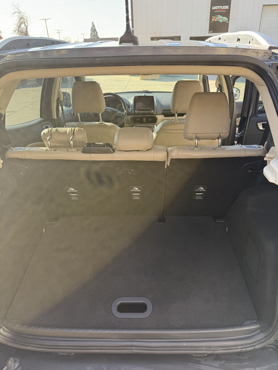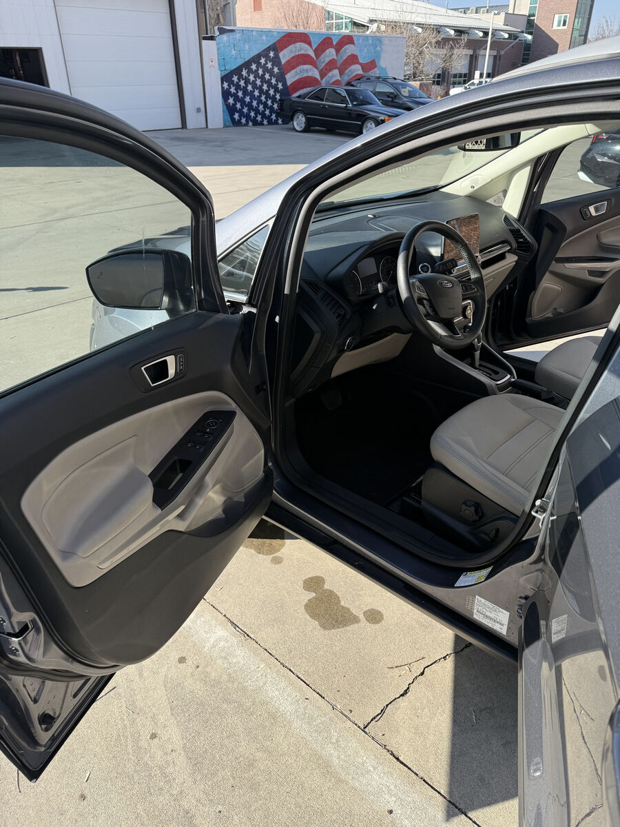 TITANIUM PKG... LEATHER HEATED SEATS... HEATED STEERING WHEEL... AWD... BACK UP CAMERA... BLIND SPOT WARNING... NAVIGATION... LOOKS AND DRIVES GREAT... PRICED TO SELL FAST... The EcoSport Titanium doesn't disappoint, and comes with all the quality and understated opulence buyers have come to expect from the respected Ford marque. A truly versatile SUV, this vehicle will please even the most discerning of buyers. Take home this Ford EcoSport Titanium, and you will have the power of 4WD. It's a great feature when you need to drive over tricky terrain or through inclement weather. Look no further, you have found exactly what you've been looking for. This Silver Ford is clean and shiny exterior makes it look like it came straight from the factory.