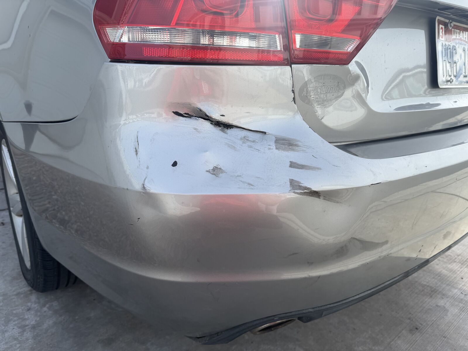 The rear bumper has a cut/scratch from when my wife accidentally backed into something in a Walmart parking lot.