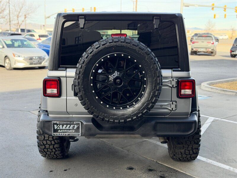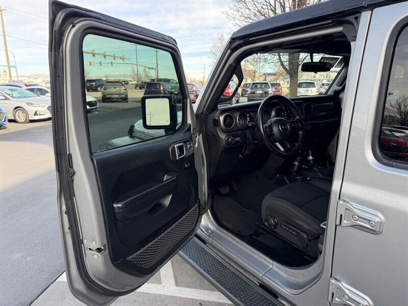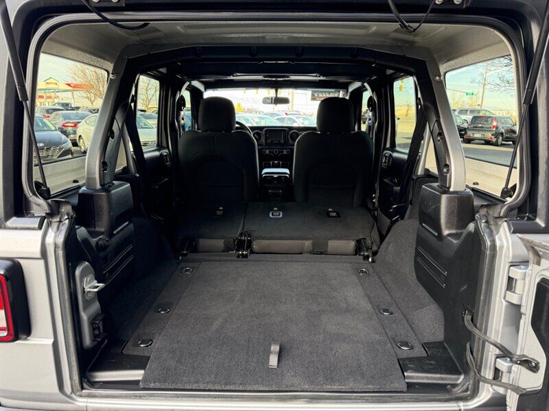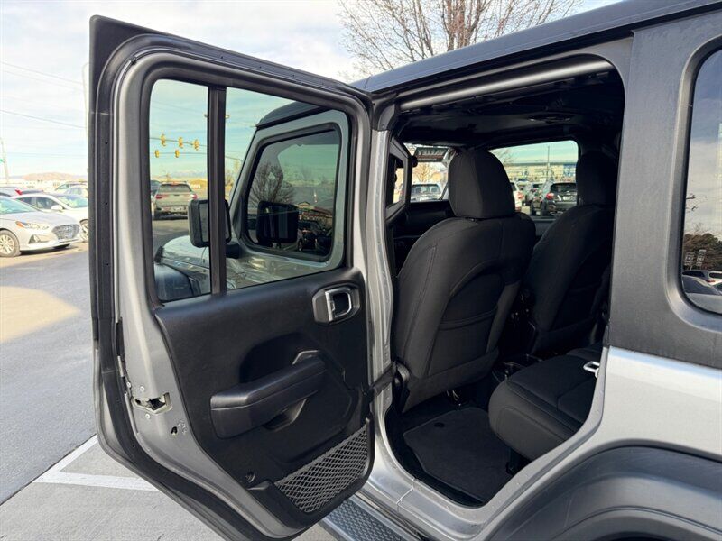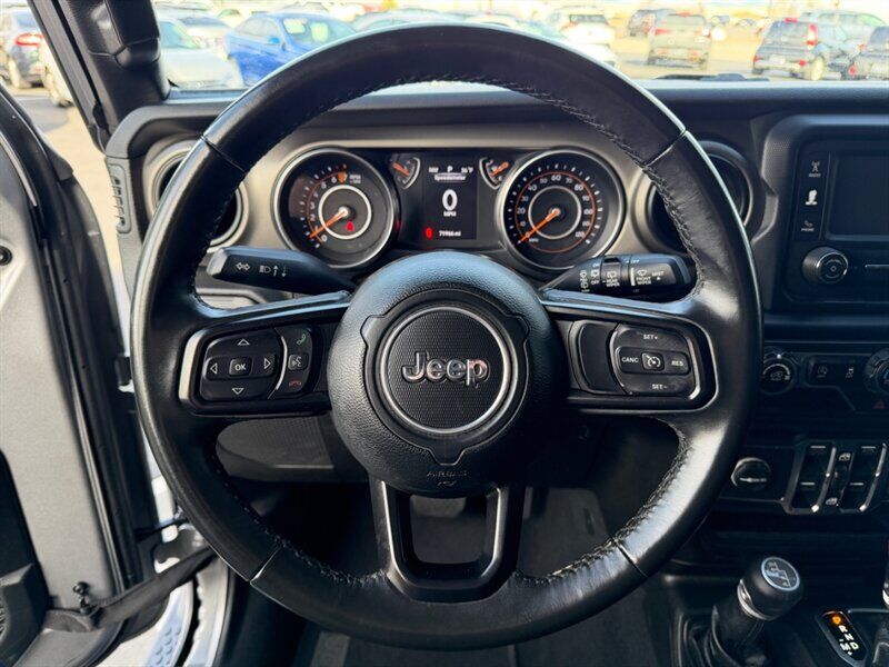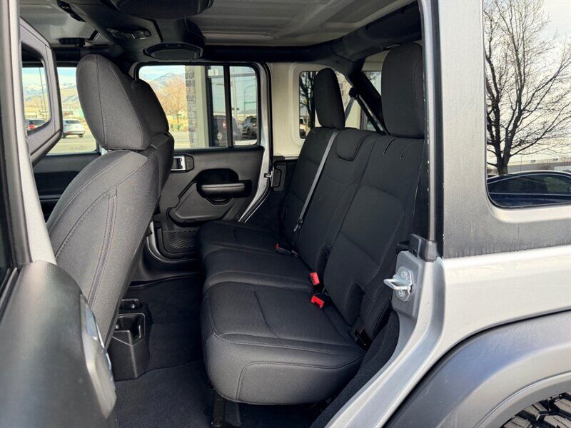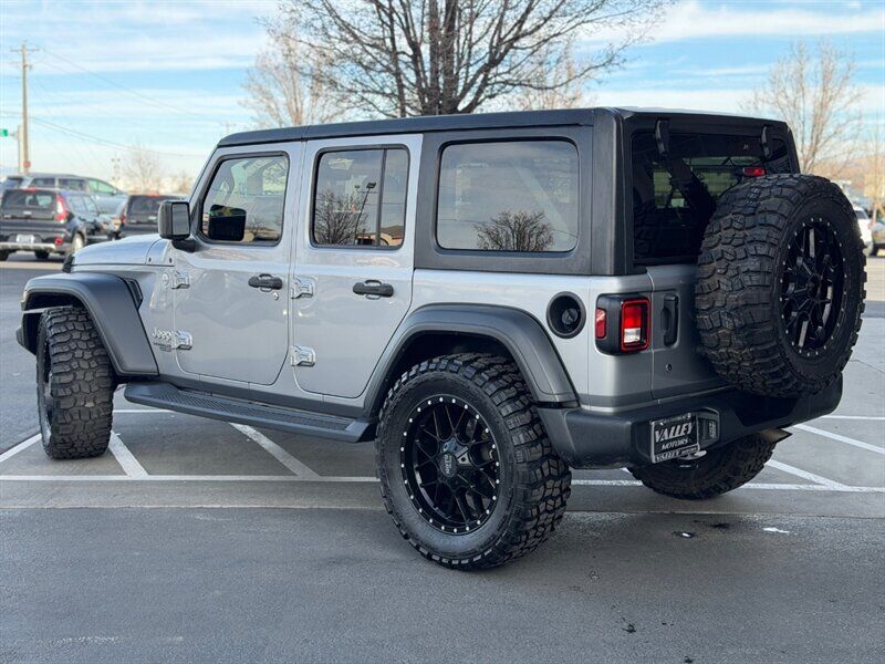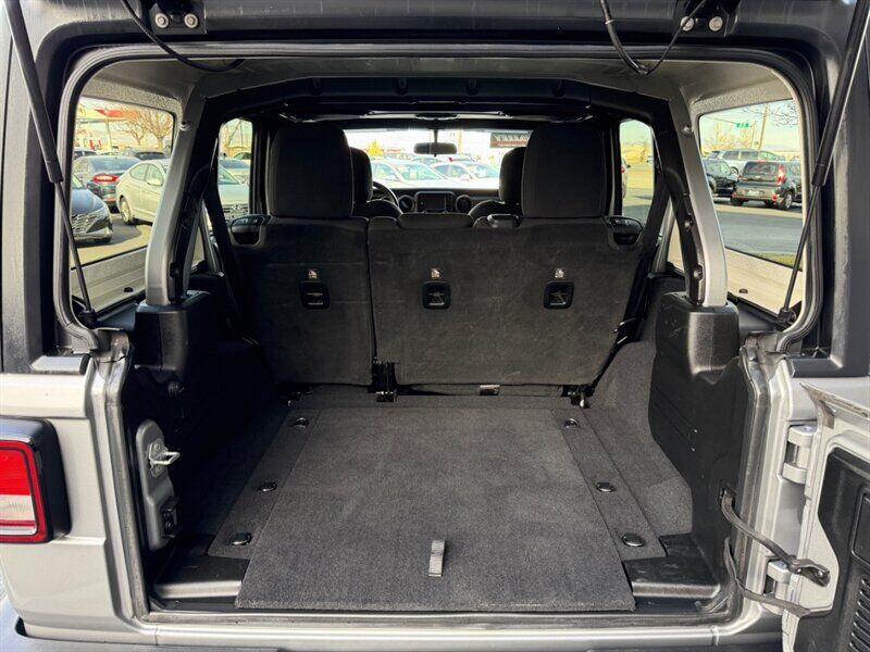 2019 Jeep Wrangler Unlimited Sport — Billet Silver Metallic Clear Coat exterior with Black cloth interior. Powered by the 3.6L Pentastar V6 producing 285 hp and 260 lb-ft of torque. This four-door Unlimited model delivers the traditional Wrangler open-air experience with solid on- and off-road capability, and is in excellent overall condition with a clean CARFAX. Mileage is below 72,000 miles (averaging under 9,000 miles per year). EPA fuel economy is approximately 17 MPG city / 23 MPG highway.