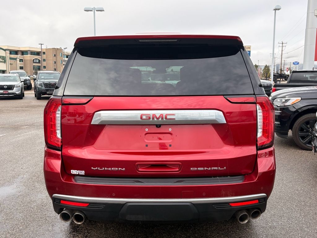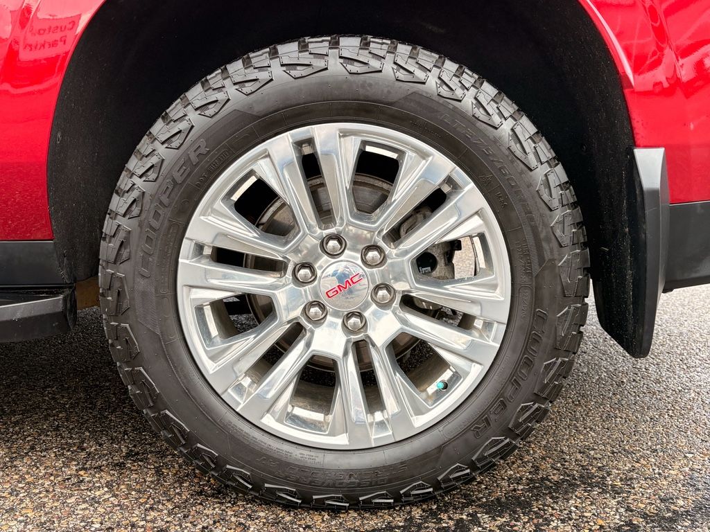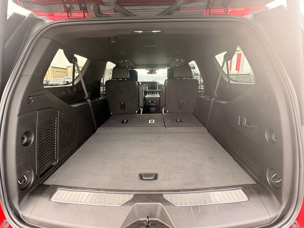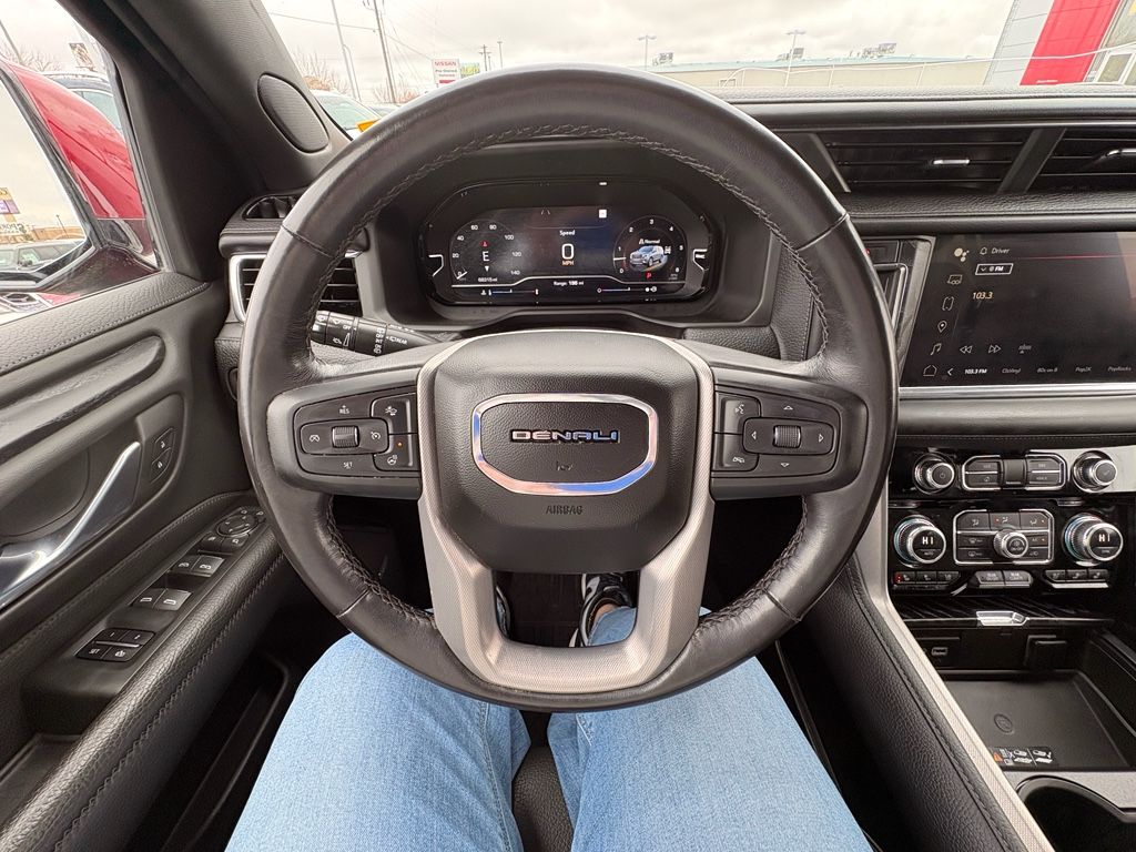 Preferred Equipment Group 5SA: Bright Front and Rear Door Sill Plates; 2 Presets For Outside Rearview Mirrors; Perforated Leather Seating Surfaces; 3.23 Rear Axle Ratio; 3rd Row 60/40 Power Fold Split-Bench; Safety Alert Seat; Chrome Door Handles with Body-Colour Strip; Hill Descent Control; 6.2L EcoTec3 V8 Engine; 20" X 9" 6-Spoke Polished Aluminum Wheels; Heated Steering Wheel; Electronic 10-Speed Automatic Transmission with Overdrive; Wireless Charging; Front Bucket Seats; Universal Home Remote; Heated Second Row Outboard Positions Seats; Hands Free Rear Power Programmable Liftgate; AM/FM Stereo; 2-Speed Electronic Autotrac Active Transfer Case; Floor Console; Dual System with Dual Twin Polished Exhaust; GMC Pro Safety Plus; HD Surround Vision; Power Tilt and Telescopic Steering Column; 15" Diagonal Multi-Colour Head-Up Display; Rear Pedestrian Alert; Bose 14-Speaker Surround with CenterPoint; 7,700 lbs (3,493 Kgs) GVWR; Magnetic Ride Control Suspension; Inside Rearview Auto-Dimming Mirror; Power Release 2nd Row Bucket Seats; 275/60R20SL All-Season Blackwall Tires; Outside Heated Power-Adjustable Mirrors; Galvano Bodyside Mouldings,Rear Seat Media System,Dual-Pane Panoramic Power Sunroof,Volcanic Red Tintcoat,Wheel Locks (set of 4),Apple CarPlay/Android Auto smart device wireless mirroring,Front Pedestrian Braking,Wi-Fi Hotspot capable mobile hotspot internet access,Rear mounted camera,Lane Keep Assist with Lane Departure Warning,Head-up display,Brake assist system,Cruise control with steering wheel mounted controls,Power liftgate rear cargo door,Ventilated driver and front passenger seats,Integrated navigation system with voice activation,Keyfob remote start,Heated steering wheel,Rear entertainment system with digital media player,Heated driver and front passenger seats,Heated rear seats,Leather front seat upholstery,Primary monitor touchscreen,Fixed third-row seats,Rear Cross-Traffic Alert collision warning,First and second-row sliding and tilting glass sunroof with express open/close activation sunshade,Driver seat power reclining, lumbar support, cushion tilt, fore/aft control and height adjustable control,AutoTrac part and full-time 4WD,EcoTec3 6.2L V-8 gasoline direct injection, variable valve control, premium unleaded, engine with cylinder deactivation and 420HP,EcoTec3 6.2L V-8,Front wireless smart device charging,Alexa Built-In/Google Assistant built-in virtual assistant,Teen Driver restricted driving mode/alerts,Rear pedestrian detection warning,Smart key with hands-free access and push button start,HD Surround Vision aerial view camera,Front windshield solar coating,Smart device remote start,Push-button,Stolen Vehicle Assistance vehicle tracker with vehicle slowdown,Bluetooth wireless audio streaming,Hitch Guidance vehicle to trailer hitching assist,Gauge cluster display size: 12.00,Proximity cargo area access release,Front mounted camera,Right side camera,Left side camera,Lane Change Alert with Side Blind Zone Alert blind spot warning,Following Distance Indicator,Dual-zone front climate control,Rear climate control system with separate controls,Full gauge cluster screen,Magnetorheological shock absorbers,IntelliBeam auto high-beam headlights,Second-row bucket seats