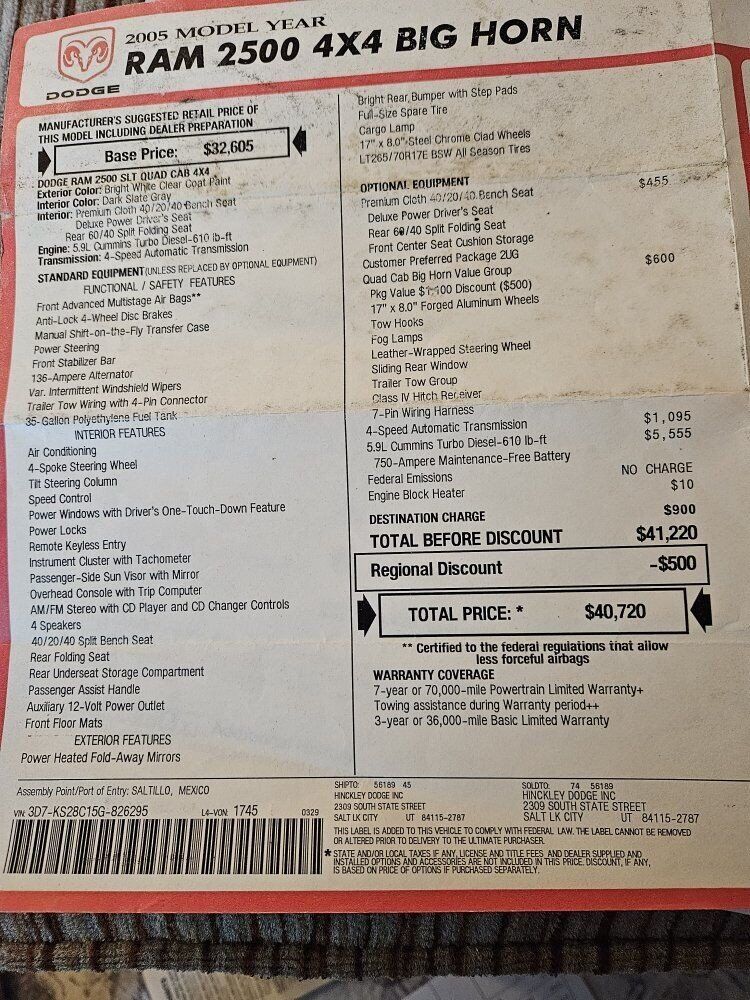 I am the second owner and have a car fax report with all the maintenance performed, also all the upgrade receipts and when they were performed .This is a Pre Def truck with all the emission stuff required to licence and drive in any State.