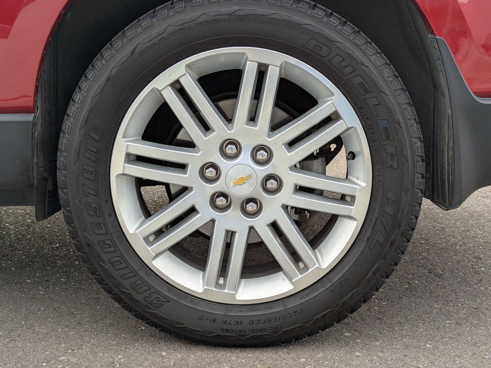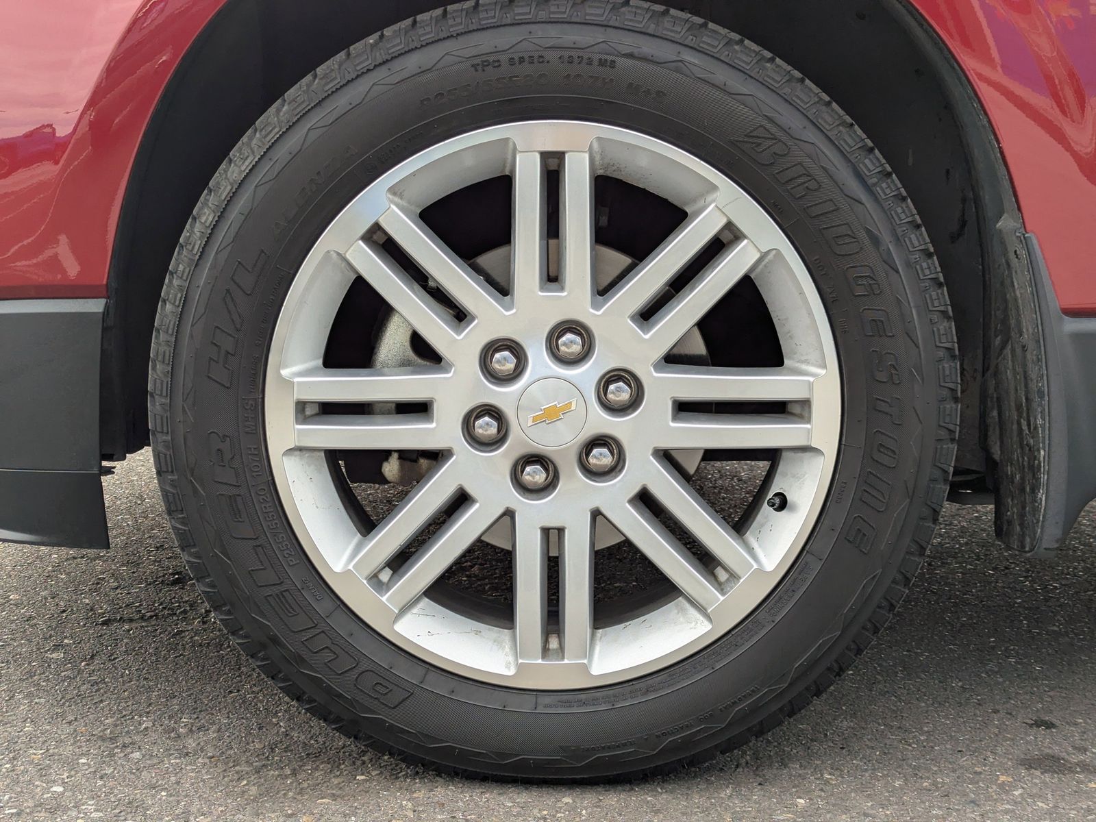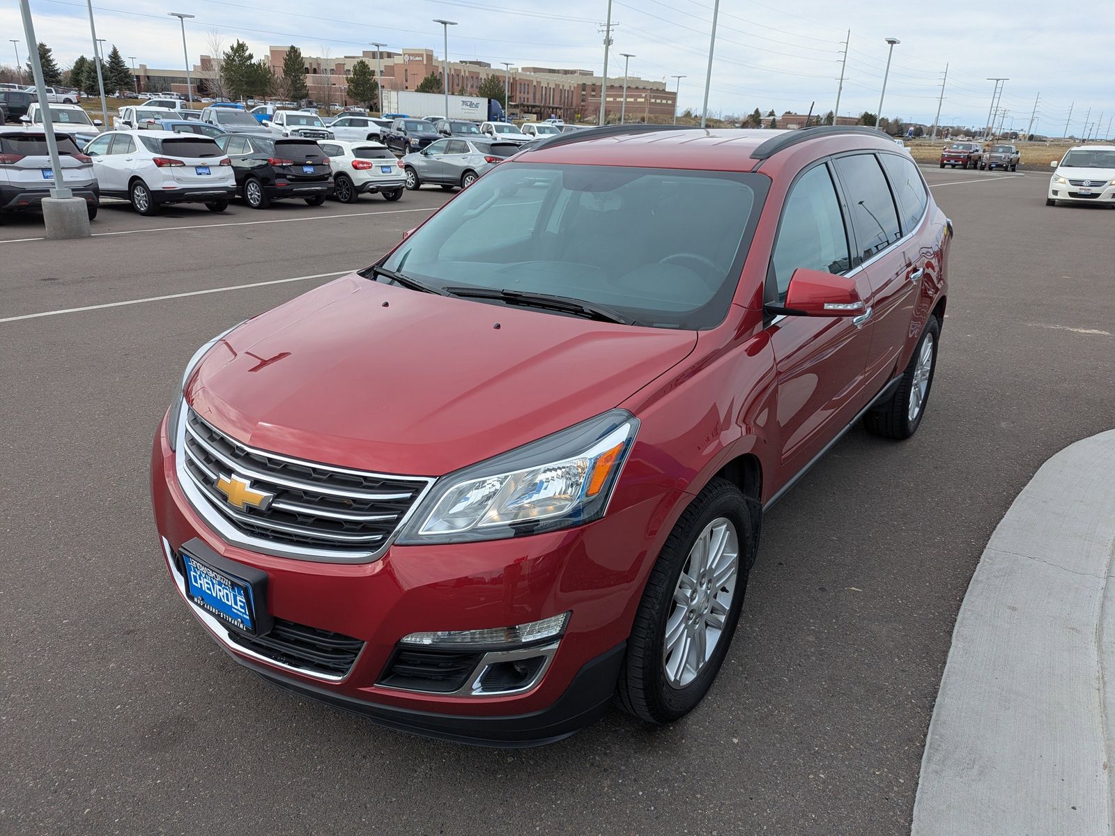 LICENSE PLATE BRACKET FRONT MOUNTING PACKAGE,EBONY SEAT TRIM PREMIUM CLOTH,TIRES P255/55R20 H-RATED BLACKWALL,SEATS HEATED DRIVER AND FRONT PASSENGER,AUDIO SYSTEM CHEVROLET MYLINK RADIO 6.5 diagonal color touch-screen display AM/FM/SiriusXM/HD radio with CD player includes Bluetooth streaming audio for music and select phones; Hands-Free smartphone integration with Pandora and Stitcher; voice-activated technology for radio and phone,RECLINING FRONT BUCKETS (STD),TRANSMISSION 6-SPEED AUTOMATIC,UNIVERSAL HOME REMOTE includes garage door opener 3-channel programmable,CRYSTAL RED TINTCOAT,LT PREFERRED EQUIPMENT GROUP Includes Standard Equipment,WHEELS 4 - 20 X 7.5 (50.9 CM X 19.1 CM) MACHINED PAINTED SPOKE,SEATING 7-PASSENGER (2-2-3 SEATING CONFIGURATION) with 2nd row flat-folding Captains Chair and third row 60/40 split flat folding bench seat,ALL-STAR EDITION includes (UG4) Chevrolet MyLink radio (KA1) heated driver and front passenger seats (UG1) Universal Home Remote (QQD) P255/55R20 H-rated blackwall tires and (PEJ) 4 - 20 x 7.5 (50.8 cm x 19.1 cm) machine painted spoke aluminum wheels,ENGINE 3.6L SIDI V6 (281 hp [210 kW] @ 6300 rpm 266 lb-ft of torque @ 3400 rpm [359.1 N-m]) (STD),Front Wheel Drive,Power Steering,ABS,4-Wheel Disc Brakes,Aluminum Wheels,Tires - Front All-Season,Tires - Rear All-Season,Temporary Spare Tire,Rear Spoiler,Automatic Headlights,Fog Lamps,Privacy Glass,Heated Mirrors,Power Mirror(s),Integrated Turn Signal Mirrors,Intermittent Wipers,Intermittent Wipers,AM/FM Stereo,CD Player,Satellite Radio,HD Radio,Requires Subscription,Auxiliary Audio Input,MP3 Capability,Auxiliary Audio Input,MP3 Capability,Auxiliary Audio Input,Satellite Radio,Requires Subscription,Bucket Seats,3rd Row Seat,Pass-Through Rear Seat,Rear Bench Seat,Bluetooth Connection,Cloth Seats,Power Driver Seat,Driver Adjustable Lumbar,3rd Row Seat,Pass-Through Rear Seat,Floor Mats,Cruise Control,Steering Wheel Audio Controls,Leather Steering Wheel,Adjustable Steering Wheel,Trip Computer,Power Windows,Power Door Locks,Keyless Entry,Power Door Locks,Keyless Entry,Power Door Locks,Remote Engine Start,Cruise Control,Back-Up Camera,A/C,A/C,Rear A/C,Rear Defrost,Rear Parking Aid,Driver Vanity Mirror,Passenger Vanity Mirror,Driver Illuminated Vanity Mirror,Passenger Illuminated Visor Mirror,Front Reading Lamps,Rear Reading Lamps,Woodgrain Interior Trim,Traction Control,Stability Control,Traction Control,Daytime Running Lights,Driver Air Bag,Passenger Air Bag,Front Side Air Bag,Front Head Air Bag,Rear Head Air Bag,Passenger Air Bag Sensor,Telematics,Navigation from Telematics,Requires Subscription,Child Safety Locks,Tire Pressure Monitor