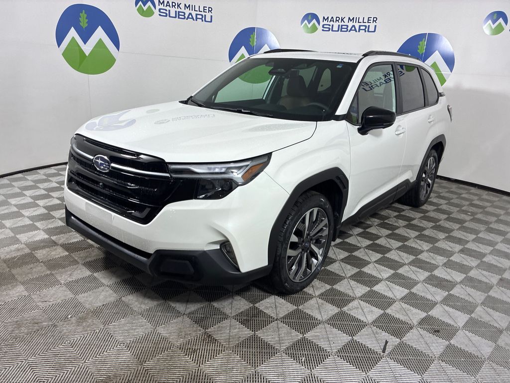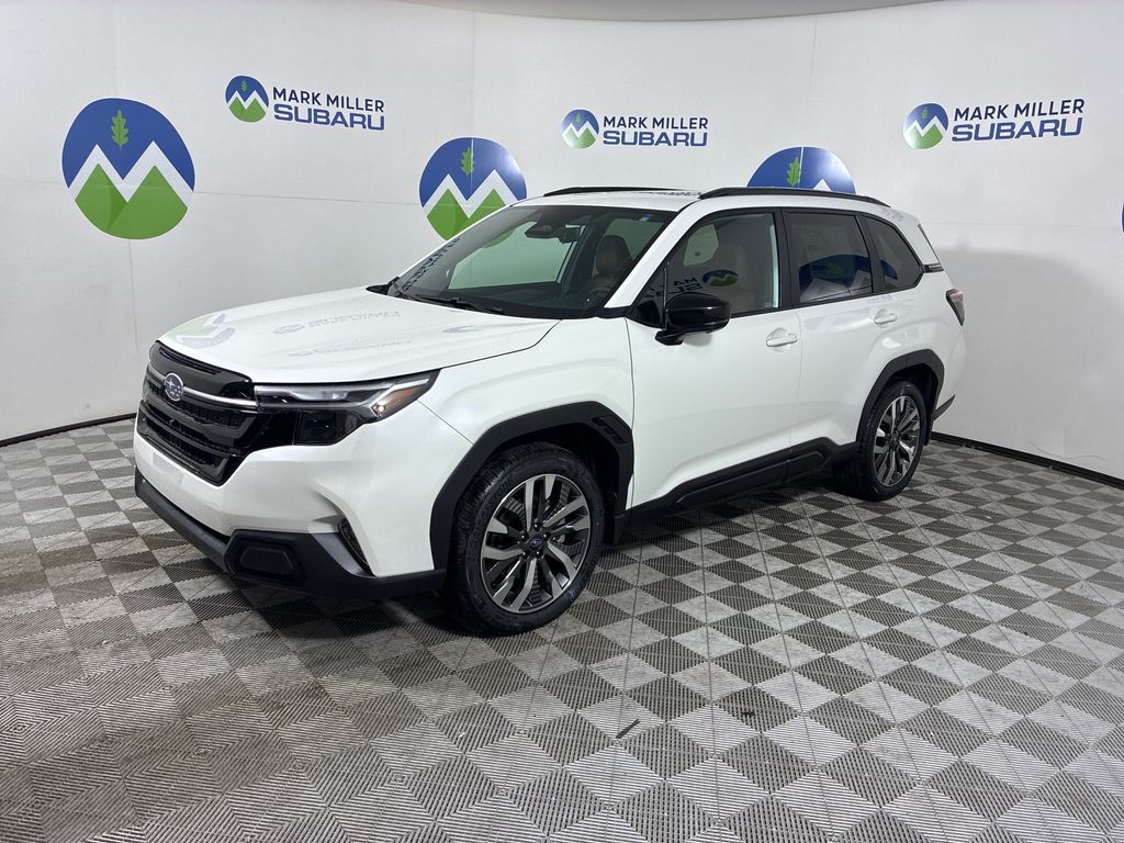 Mark Miller Subaru is the leading Subaru dealership in Utah. Our large inventory and dedicated sales teams has made us the go to destination for the Subaru brand in Utah. Our Promise Price is the best way to buy a Subaru in Utah. Come experience the Mark Miller Subaru difference today! ** This 2026 Crystal White Pearl Subaru Forester Touring AWD is well equipped and includes these features and benefits: Standard Model, 11 Speakers, 4-Wheel Disc Brakes, ABS brakes, Air Conditioning, Alloy wheels, AM/FM radio: SiriusXM with 360L, Anti-whiplash front head restraints, Auto High-beam Headlights, Auto-Dimming Exterior Mirror with Approach Light, Automatic temperature control, Brake assist, Bumpers: body-color, Driver door bin, Driver vanity mirror, Dual front impact airbags, Dual front side impact airbags, Electronic Stability Control, Emergency communication system: MySubaru Companion (5-years free), Exterior Parking Camera Rear, Four wheel independent suspension, Front anti-roll bar, Front Bucket Seats, Front Center Armrest, Front dual zone A/C, Front fog lights, Front reading lights, Fully automatic headlights, harman/kardon® Speakers, Heads-Up Display, Heated and Ventilated Front Bucket Seats, Heated door mirrors, Heated front seats, Heated rear seats, Heated steering wheel, HVAC memory, Illuminated entry, Knee airbag, Leather Shift Knob, Leather steering wheel, Low tire pressure warning, Memory seat, Navigation System, Occupant sensing airbag, Outside temperature display, Overhead airbag, Overhead console, Panic alarm, Passenger door bin, Passenger vanity mirror, Perforated Leather-Trimmed Upholstery, Power door mirrors, Power driver seat, Power Liftgate, Power moonroof: Panoramic, Power passenger seat, Power steering, Power windows, Radio data system, Radio: Subaru 11.6'' Multimedia Navigation System, Rain sensing wipers, Rear anti-roll bar, Rear Bumper Cover, Rear seat center armrest, Rear window defroster