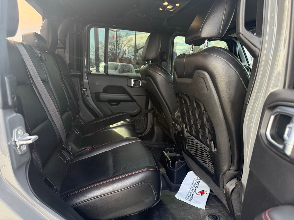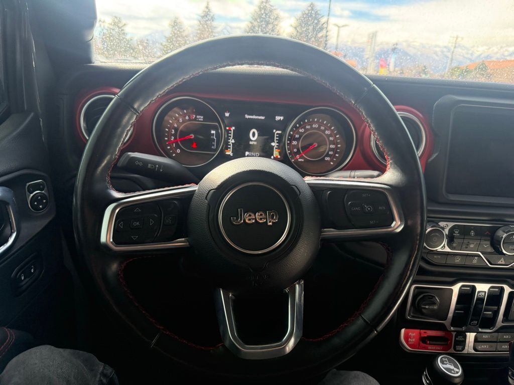 240 Amp Alternator, 4-Wheel Disc Brakes, 4.10 Rear Axle Ratio, 700 Amp Maintenance Free Battery, 9 Speakers, 97 MPH Vehicle Max Speed Calibration, ABS brakes, Air Conditioning, Alloy wheels, AM/FM radio: SiriusXM, Apple CarPlay/Android Auto, Auto-dimming Rear-View mirror, Automatic temperature control, Auxiliary Switch Group, Auxiliary Switches, Body Color Fender Flares (2-Piece), Brake assist, Class IV Receiver Hitch, Cold Weather Group, Compass, Corning Gorilla Glass, Delay-off headlights, Driver door bin, Driver vanity mirror, Dual front impact airbags, Dual front side impact airbags, Electronic Stability Control, Emergency communication system: SiriusXM Guardian, Front anti-roll bar, Front Bucket Seats, Front Center Armrest w/Storage, Front dual zone A/C, Front fog lights, Front License Plate Bracket, Front reading lights, Fully automatic headlights, Garage door transmitter, Heated door mirrors, Heated Front Seats, Heated Steering Wheel, Heavy-Duty Engine Cooling, Illuminated entry, Integrated roll-over protection, Jeep Trail Rated Kit, Leather steering wheel, Low tire pressure warning, MOPAR All-Weather Slush Mats, Navigation System, Occupant sensing airbag, Outside temperature display, Panic alarm, ParkView Rear Back-Up Camera, Passenger door bin, Passenger vanity mirror, Performance Suspension, Power door mirrors, Power steering, Power windows, Premium Cloth Low-Back Bucket Seats, Quick Order Package 24R, Radio data system, Radio: Uconnect 4C Nav w/8.4'' Display, Rear anti-roll bar, Rear reading lights, Remote keyless entry, Remote Start System, Security system, Speed control, Split folding rear seat, Steering wheel mounted audio controls, Tachometer, Telescoping steering wheel, Tilt steering wheel, Traction control, Trailer Hitch Zoom, Trailer Tow Package, Trip computer, Variably intermittent wipers, Voltmeter, Wheels: 17'' x 7.5'' Granite Crystal Aluminum.