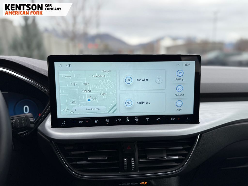 2.91 Axle Ratio, 4-Wheel Disc Brakes, 6 Speakers, ABS brakes, Air Conditioning, Alloy wheels, AM/FM radio: SiriusXM, AM/FM Stereo, Auto High-beam Headlights, Auto-dimming Rear-View mirror, Automatic temperature control, Brake assist, Bumpers: body-color, Compass, Delay-off headlights, Driver door bin, Driver vanity mirror, Dual front impact airbags, Dual front side impact airbags, Electronic Fuel Door Release, Electronic Stability Control, Emergency communication system: SYNC 4 911 Assist, FordPass Connect, Four wheel independent suspension, Front anti-roll bar, Front Bucket Seats, Front Center Armrest, Front dual zone A/C, Front fog lights, Front reading lights, Fully automatic headlights, Heated ActiveX Trimmed Front Sport Contour Bucket Seats, Heated door mirrors, Heated front seats, Heated steering wheel, Illuminated entry, Internet access capable: FordPass Connect 4G, Knee airbag, Low tire pressure warning, Memory seat, Navigation system: Connected Navigation, Neutral Towing Capability, Occupant sensing airbag, Outside temperature display, Overhead airbag, Overhead console, Panic alarm, Passenger door bin, Passenger vanity mirror, Pedestrian Alert Sounder, Power door mirrors, Power driver seat, Power Liftgate, Power passenger seat, Power steering, Power windows, Radio data system, Rear anti-roll bar, Rear reading lights, Rear seat center armrest, Rear window defroster, Rear window wiper, Remote keyless entry, Security system, Speed control, Speed-sensing steering, Speed-Sensitive Wipers, Split folding rear seat, Spoiler, Steering wheel mounted audio controls, SYNC 4 w/Enhanced Voice Recognition, Tachometer, Telescoping steering wheel, Tilt steering wheel, Traction control, Trip computer, Variably intermittent wipers, and Wheels: 19'' Machined-Face Aluminum.