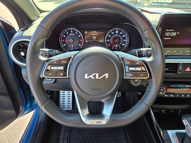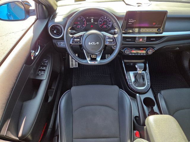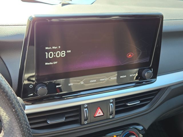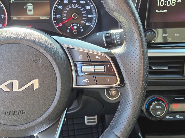 Exterior@Daytime running lights (LED)~Exterior@Door handle color (body-color)~Exterior@Exhaust (hidden)~Exterior@Exhaust tip color (stainless steel)~Exterior@Exterior entry lights (approach lamps)~Exterior@Front bumper color (body-color)~Exterior@Front fog lights (LED)~Exterior@Front wipers (variable intermittent)~Exterior@Grille color (black)~Exterior@Grille color (chrome surround)~Exterior@Headlights (auto delay off)~Exterior@Headlights (auto high beam dimmer)~Exterior@Headlights (auto on/off)~Exterior@Headlights (halogen)~Exterior@Mirror color (black)~Exterior@Power windows (safety reverse)~Exterior@Rear bumper color (body-color)~Exterior@Rear spoiler (decklid)~Exterior@Rear spoiler color (black)~Exterior@Rear trunk/liftgate (power operated)~Exterior@Rear trunk/liftgate (sensor-activated)~Exterior@Rocker panel color (chrome accents)~Exterior@Side mirror adjustments (manual folding)~Exterior@Side mirror adjustments (power)~Exterior@Side mirrors (heated)~Exterior@Side mirrors (integrated turn signals)~Exterior@Solar-tinted glass (front)~Exterior@Solar-tinted glass (rear)~Exterior@Taillights (LED)~Exterior@Window defogger (rear)~Exterior@Window trim (black)~Interior@Air filtration~Interior@Airbag deactivation (occupant sensing passenger)~Interior@Antenna type (diversity)~Interior@Antenna type (mast)~Interior@Armrests (rear center with cupholders)~Interior@Armrests (rear folding)~Interior@Assist handle (passenger side)~Interior@Assist handle (rear)~Interior@Autonomous lane guidance (lane centering)~Interior@Cargo area light~Interior@Center console (front console with armrest and storage)~Interior@Center console trim (metallic)~Interior@Connected in-car apps (Google POIs)~Interior@Connected in-car apps (Google search)~Interior@Connected in-car apps (app marketplace integration)~Interior@Courtesy lights (door)~Interior@Cruise control~Interior@Cupholders (front)~Interior@Cupholders (rear)~Interior@Door sill trim (scuff plate)~Interior@Driver assistance app (roadside assistance)~Interior@Driver seat manual adjustments (6)~Interior@Driver seat manual adjustments (height)~Interior@Driver seat manual adjustments (lumbar)~Interior@Driver seat manual adjustments (reclining)~Interior@Electronic messaging assistance (voice operated)~Interior@Electronic messaging assistance (with read function)~Interior@Floor material (carpet)~Interior@Foot pedal trim (alloy)~Interior@Front air conditioning (automatic climate control)~Interior@Front air conditioning zones (dual)~Interior@Front airbags (dual)~Interior@Front headrests (2)~Interior@Front headrests (adjustable)~Interior@Front seat type (sport bucket)~Interior@Hands-free phone call integration (voice operated)~Interior@Infotainment (Kia Connect)~Interior@Infotainment screen size (10.25 in.)~Interior@Interior accents (chrome)~Interior@Multi-function remote (panic alarm)~Interior@Multi-function remote (proximity entry system)~Interior@Multi-function remote (trunk release)~Interior@Navigation data (real time traffic)~Interior@One-touch windows (1)~Interior@Overhead console (front)~Interior@Passenger seat manual adjustments (6)~Interior@Passenger seat manual adjustments (reclining)~Interior@Power outlet(s) (12V front)~Interior@Power outlet(s) (USB front)~Interior@Power steering~Interior@Power windows (lockout button)~Interior@Push-button start~Interior@Radio (AM/FM)~Interior@Radio (HD radio)~Interior@Radio (touch screen display)~Interior@Radio (voice operated)~Interior@Radio data system~Interior@Reading lights (front)~Interior@Rear headrests (3)~Interior@Rear headrests (fixed)~Interior@Rear seat folding (split)~Interior@Rear seat type (60-40 split bench)~Interior@Rearview mirror (manual day/night)~Interior@Remote engine start~Interior@Shift knob trim (leather)~Interior@Side airbags (front)~Interior@Side curtain airbags (front)~Interior@Side curtain airbags (rear)~Interior@Smart device app compatibility (Kia Access)~Interior@Smart device app function (engine start)~Interior@Smart device app function (horn/light operation)~Interior@Smart device app function (lock operation)~Interior@Smart device app function (maintenance status)~Interior@Smart device app function (security event/collision alert)~Interior@Smartphone integration (Android Auto)~Interior@Smartphone integration (Apple CarPlay)~Interior@Speed sensitive volume control~Interior@Steering wheel (tilt and telescopic)~Interior@Steering wheel mounted controls (audio)~Interior@Steering wheel mounted controls (cruise control)~Interior@Steering wheel mounted controls (phone)~Interior@Steering wheel mounted controls (voice control)~Interior@Steering wheel trim (leather)~Interior@Storage (accessory hook)~Interior@Storage (door pockets)~Interior@Storage (front seatback)~Interior@Storage (sunglasses holder)~Interior@Total speakers (6)~Interior@Upholstery (cloth)~Interior@Upholstery accents (contrast stitching)~Interior@Upholstery accents (leatherette)~Interior@Vanity mirrors (dual)~Mechanical@ABS (4-wheel)~Mechanical@Braking assist~Mechanical@Clock~Mechanical@Compass~Mechanical@Digital odometer~Mechanical@Electronic brakeforce distribution~Mechanical@External temperature display~Mechanical@Front brake type (ventilated disc)~Mechanical@Front shock type (gas)~Mechanical@Front spring type (coil)~Mechanical@Front stabilizer bar~Mechanical@Front struts (MacPherson)~Mechanical@Front suspension classification (independent)~Mechanical@Front suspension type (lower control arms)~Mechanical@Fuel economy display (MPG)~Mechanical@Fuel economy display (range)~Mechanical@Gauge (tachometer)~Mechanical@Instrument cluster screen size (4.2 in.)~Mechanical@Multi-function display~Mechanical@Power brakes~Mechanical@Rear brake type (disc)~Mechanical@Rear shock type (gas)~Mechanical@Rear spring type (coil)~Mechanical@Rear suspension classification (semi-independent)~Mechanical@Rear suspension type (torsion beam)~Mechanical@Trip odometer~Mechanical@Warnings and reminders (low fuel level)~Mechanical@Warnings and reminders (low oil level)~M