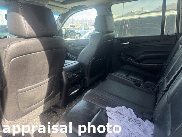 LICENSE PLATE FRONT MOUNTING PACKAGE,MIRRORS OUTSIDE HEATED POWER-ADJUSTABLE POWER-FOLDING AND DRIVER-SIDE AUTO-DIMMING with integrated turn signal indicators and ground illumination,TIRES P265/65R18 ALL-SEASON BLACKWALL (STD),AUDIO SYSTEM CHEVROLET MYLINK RADIO AM/FM STEREO WITH CD PLAYER includes 5 USB ports 1 SD card reader and an auxiliary jack (STD),STEERING WHEEL HEATED LEATHER-WRAPPED AND COLOR-KEYED with theft-deterrent locking feature,REAR AXLE 3.08 RATIO,LUXURY PACKAGE includes (AS8) power fold third row 60/40 split bench seats (ATH) Passive Entry System (ATT) second row power release 60/40 split folding bench seat (BTM) keyless start (DL3) outside heated power-adjustable power-folding mirrors (KA6) heated second row seats (K4C) Wireless charging (N38) memory power tilt and telescopic steering column (TC2) Hands free liftgate (T3U) fog lamps (UD5) front and rear parking assist (UFG) Rear Cross-Traffic Alert (UKC) Side Blind Zone Alert and (UVD) heated steering wheel and color key rear fascia trailer hitch closeout,SEATING FRONT BUCKET WITH LEATHER-APPOINTED SEATING heated seat cushions and seat backs 10-way power driver and passenger seat includes 6-way power cushions driver seat 2-position memory 2-way power lumbar control and power recline (STD),2015 INTERIM PROCESSING CODE,WIRELESS CHARGING,TRANSMISSION 6-SPEED AUTOMATIC ELECTRONICALLY CONTROLLED with overdrive and tow/haul mode (STD),SUNROOF POWER TILT-SLIDING with express-open and close and wind deflector,FRONT AND REAR PARKING ASSIST,SUSPENSION PACKAGE PREMIUM SMOOTH RIDE (STD),SEATS HEATED SECOND ROW,PAINT SCHEME SOLID APPLICATION,ENGINE 5.3L V8 ECOTEC3 WITH ACTIVE FUEL MANAGEMENT DIRECT INJECTION AND VARIABLE VALVE TIMING includes aluminum block construction (355 hp [265 kW] @ 5600 rpm 383 lb-ft of torque [518 N-m] @ 4100 rpm) (STD),SILVER ICE METALLIC,SEATS SECOND ROW 60/40 SPLIT-FOLDING BENCH POWER RELEASE,REAR CROSS-TRAFFIC ALERT SENSOR INDICATOR,LT PREFERRED EQUIPMENT GROUP Includes Standard Equipment,FOG LAMPS,WHEELS 18 X 8.5 (45.7 CM X 21.6 CM) ALUMINUM WITH HIGH-POLISHED FINISH (STD),JET BLACK LEATHER-APPOINTED SEAT TRIM,E85 FLEXFUEL CAPABLE,DVD SCREEN THIRD ROW,LIFTGATE HANDS FREE POWER,SEATS THIRD ROW 60/40 SPLIT-BENCH POWER FOLD,PASSIVE ENTRY SYSTEM includes (AQQ) Remote Keyless Entry,STEERING COLUMN POWER TILT AND TELESCOPIC,SIDE BLIND ZONE ALERT WITH LANE CHANGE ALERT,KEYLESS START SWITCH,ENTERTAINMENT SYSTEM REAR SEAT BLU-RAY/DVD with remote control overhead display four 2-channel wireless infrared headphones and auxiliary audio/video input jacks/SD and USB slots includes second screen for third row passengers,Locking/Limited Slip Differential,Four Wheel Drive,Tow Hitch,Power Steering,Aluminum Wheels,Tires - Front All-Season,Tires - Rear All-Season,Conventional Spare Tire,Conventional Spare Tire,Luggage Rack,Running Boards/Side Steps,Daytime Running Lights,Automatic Headlights,Heated Mirrors,Power Mirror(s),Intermittent Wipers,Variable Speed Intermittent Wipers,Rain Sensing Wipers,Intermittent Wipers,Remote Trunk Release,Power Liftgate,AM/FM Stereo,CD Player,MP3 Capability,Auxiliary Audio Input,Smart Device Integration,CD Player,MP3 Capability,Premium Sound System,Satellite Radio,HD Radio,Requires Subscription,Satellite Radio,Requires Subscription,Power Driver Seat,Power Passenger Seat,Leather Seats,Bucket Seats,Heated Front Seat(s),Driver Adjustable Lumbar,Passenger Adjustable Lumbar,Seat Memory,Leather Seats,Power Passenger Seat,Seat Memory,Pass-Through Rear Seat,Rear Bench Seat,3rd Row Seat,Pass-Through Rear Seat,Auxiliary Audio Input,Floor Mats,Adjustable Steering Wheel,Leather Steering Wheel,Cruise Control,Steering Wheel Audio Controls,Power Door Locks,Keyless Entry,Power Door Locks,Remote Engine Start,Power Windows,Cruise Control,Universal Garage Door Opener,Adjustable Pedals,Security System,Climate Control,Multi-Zone A/C,A/C,Rear A/C,Rear Defrost,Auto-Dimming Rearview Mirror,Front Reading Lamps,Rear Reading Lamps,ABS,4-Wheel Disc Brakes,Traction Control,Stability Control,Brake Assist,Driver Air Bag,Passenger Air Bag,Front Side Air Bag,Front Head Air Bag,Rear Head Air Bag,Passenger Air Bag Sensor,Telematics,Navigation from Telematics,Requires Subscription,WiFi Hotspot,Rear Parking Aid,Back-Up Camera,Front Collision Warning,Lane Departure Warning,Tire Pressure Monitor