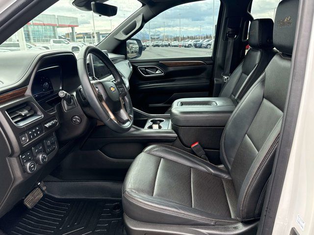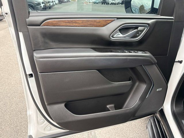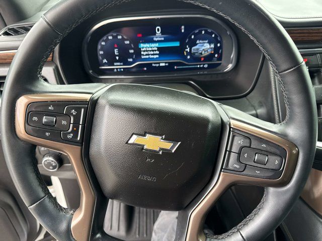 IRIDESCENT PEARL TRICOAT,SUSPENSION MAGNETIC RIDE CONTROL,REVERSE AUTOMATIC BRAKING,REAR AXLE 3.23 RATIO,ENGINE 6.2L ECOTEC3 V8 with Dynamic Fuel Management Direct Injection and Variable Valve Timing includes aluminum block construction (420 hp [313 kW] @ 5600 rpm 460 lb-ft of torque [624 Nm] @ 4100 rpm) (STD),HITCH VIEW with image adjustment Pan/Zoom,TRAILER SIDE BLIND ZONE ALERT,AUDIO SYSTEM CHEVROLET INFOTAINMENT 3 PREMIUM SYSTEM WITH GOOGLE BUILT-IN COMPATABILITY (select service plan required terms and limitations apply) including nav capability 10.2 diagonal HD color touchscreen includes multi-touch display AM/FM stereo Bluetooth streaming audio for music and most phones; featuring wireless Apple CarPlay and wireless Android Auto capability for compatible phones advanced voice recognition in-vehicle apps personalized profiles for infotainment and vehicle settings (STD),ADVANCED TRAILERING PACKAGE includes (PZ8) Hitch View (JL1) trailer brake controller and (UET) Smart Trailer Integration Indicator Also includes (UKV) Extended Side Blind Zone Alert.),SUNROOF POWER PANORAMIC DUAL-PANE TILT-SLIDING with express-open and close and power sunshade,COOLING SYSTEM EXTRA CAPACITY,HIGH COUNTRY PREFERRED EQUIPMENT GROUP includes standard equipment,TRAILER BRAKE CONTROLLER INTEGRATED,SEATS FRONT BUCKET (STD),SUSPENSION PACKAGE AIR RIDE ADAPTIVE,TRANSMISSION 10-SPEED AUTOMATIC electronically controlled with overdrive includes Traction Select System including tow/haul (STD),GVWR 7500 LBS. (3402 KG) (STD),LPO BLACK ROOF RACK CROSS RAILS (dealer-installed),SMART TRAILER INTEGRATION INDICATOR,JET BLACK PERFORATED LEATHER SEATING SURFACES 1ST AND 2ND ROW,LPO WHEEL LOCKS SET OF 4 (dealer-installed) (Beginning with start of production through December 1 2023 certain vehicles will be forced to include (RFV) Not Equipped with (SFE) Wheel Locks LPO which removes (SFE) Wheel Locks LPO. See dealer for details or the window label for the features on a specific vehicle. Included with any 22 RPO wheels. Not available with any LPO wheels. Note that LPO 22 wheels will come with wheel locks without the LPO code (SFE).),MAX TRAILERING PACKAGE includes (ZL6) Advanced Trailering Package and (V03) extra capacity cooling system,WHEELS 22 X 9 (55.9 CM X 22.9 CM) STERLING SILVER PREMIUM PAINTED with chrome inserts (Includes (SFE) wheel locks LPO.) (STD),LICENSE PLATE FRONT MOUNTING PACKAGE,Cruise Control,Lane Departure Warning,Lane Keeping Assist,Adaptive Cruise Control,Front Collision Mitigation,Front Collision Warning,Automatic Highbeams,Cruise Control Steering Assist,Driver Monitoring,Active Suspension,Immobilizer,Keyless Start,Locking/Limited Slip Differential,Four Wheel Drive,Tow Hitch,Power Steering,ABS,4-Wheel Disc Brakes,Aluminum Wheels,Wheel Locks,Tires - Front Performance,Tires - Rear Performance,Conventional Spare Tire,Conventional Spare Tire,Luggage Rack,Running Boards/Side Steps,Automatic Highbeams,Heated Mirrors,Power Mirror(s),Integrated Turn Signal Mirrors,Power Folding Mirrors,Privacy Glass,Intermittent Wipers,Variable Speed Intermittent Wipers,Rain Sensing Wipers,Intermittent Wipers,Remote Trunk Release,Power Liftgate,AM/FM Stereo,MP3 Capability,Bluetooth Connection,Auxiliary Audio Input,Smart Device Integration,Premium Sound System,MP3 Capability,Bluetooth Connection,Auxiliary Audio Input,Navigation System,Satellite Radio,Requires Subscription,Bluetooth Connection,Bluetooth Connection,Smart Device Integration,WiFi Hotspot,Bucket Seats,Leather Seats,Power Driver Seat,Power Passenger Seat,Driver Adjustable Lumbar,Passenger Adjustable Lumbar,Heated Front Seat(s),Heated Front Seat(s),Cooled Front Seat(s),Heated Rear Seat(s),Bucket Seats,Rear Bucket Seats,3rd Row Seat,Floor Mats,Adjustable Steering Wheel,Heated Steering Wheel,Cruise Control,Steering Wheel Audio Controls,Front Collision Warning,Heads-Up Display,Power Door Locks,Keyless Entry,Power Door Locks,Remote Engine Start,Cruise Control,Adaptive Cruise Control,Universal Garage Door Opener,Security System,MP3 Capability,Auxiliary Audio Input,Power Windows,Power Windows,Power Windows,Mirror Memory,Seat Memory,Climate Control,Multi-Zone A/C,A/C,Rear A/C,A/C,Rear A/C,Rear Defrost,Auto-Dimming Rearview Mirror,Back-Up Camera,Driver Vanity Mirror,Passenger Vanity Mirror,Driver Illuminated Vanity Mirror,Passenger Illuminated Visor Mirror,Brake Assist,Front Collision Mitigation,Front Collision Warning,Traction Control,Stability Control,Brake Assist,Daytime Running Lights,Driver Air Bag,Passenger Air Bag,Front Side Air Bag,Front Head Air Bag,Rear Head Air Bag,Passenger Air Bag Sensor,Telematics,Requires Subscription,Rear Parking Aid,Back-Up Camera,Aerial View Display System,Cross-Traffic Alert,Front Collision Mitigation,Blind Spot Monitor,Lane Departure Warning,Lane Keeping Assist,Front Collision Warning,Child Safety Locks,Driver Restriction Features,Tire Pressure Monitor