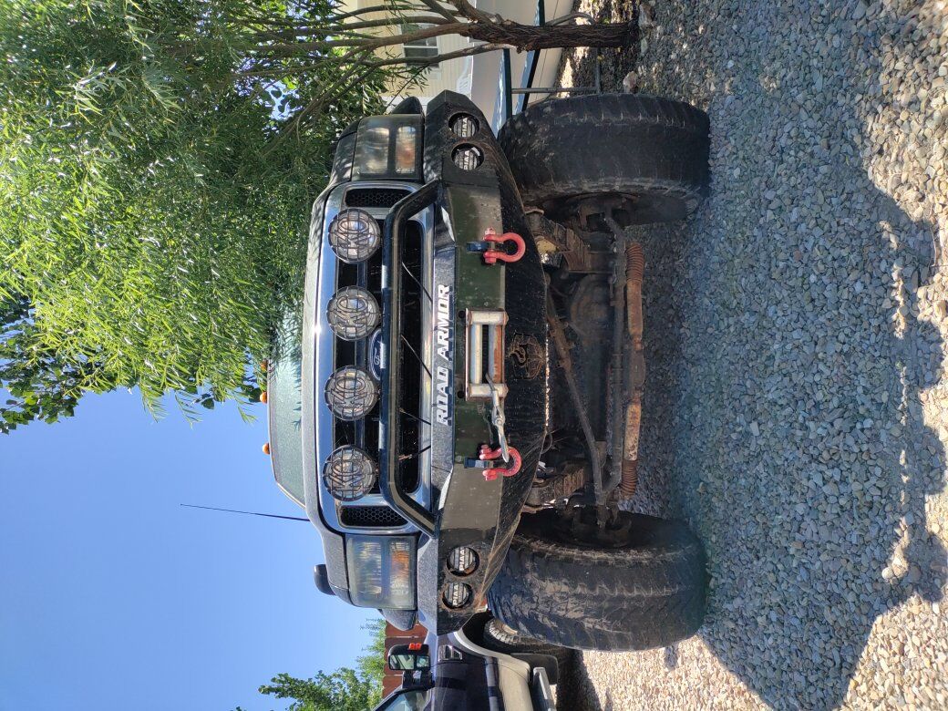 custom built truck by slednecks extreme snowmobilers look up their movies. has road armor front and rear custom bumpers with 12,000 lb winch 40 inch tires professionally built drives like a dream seriously tall truck I believe it's got Dana 60s for axles sway control arms double shocks double steering dampeners all sorts of lights will flares. starts right up dries fantastic needs e-brake cable on rear axle and new rubber engine was replaced by prior owner and it runs and purrs like a champ