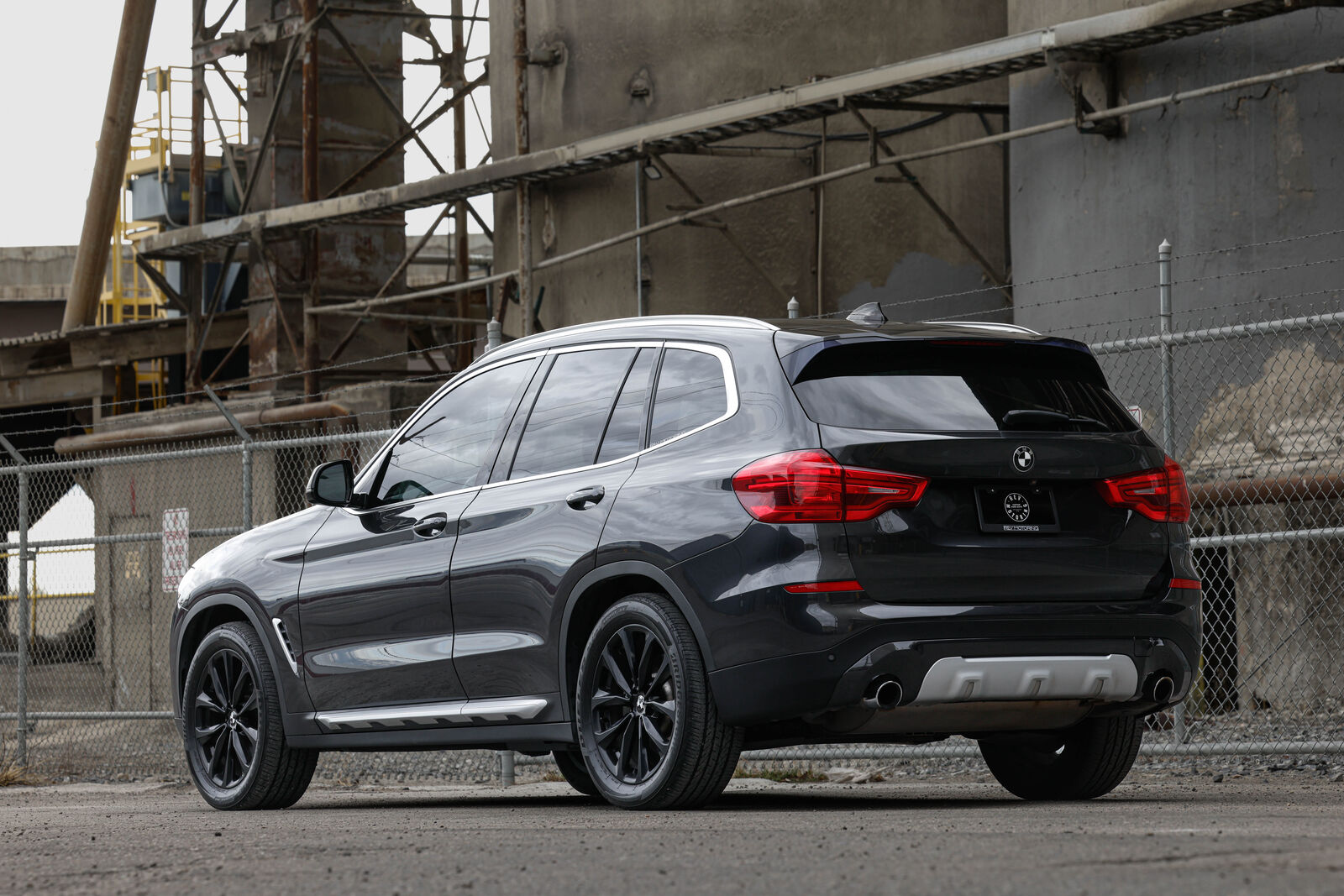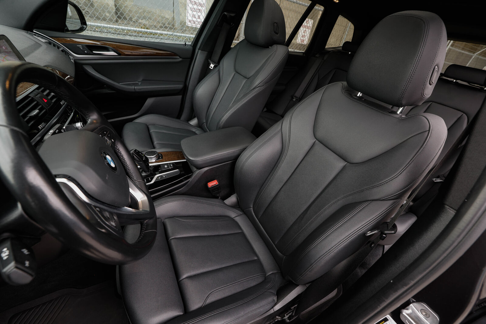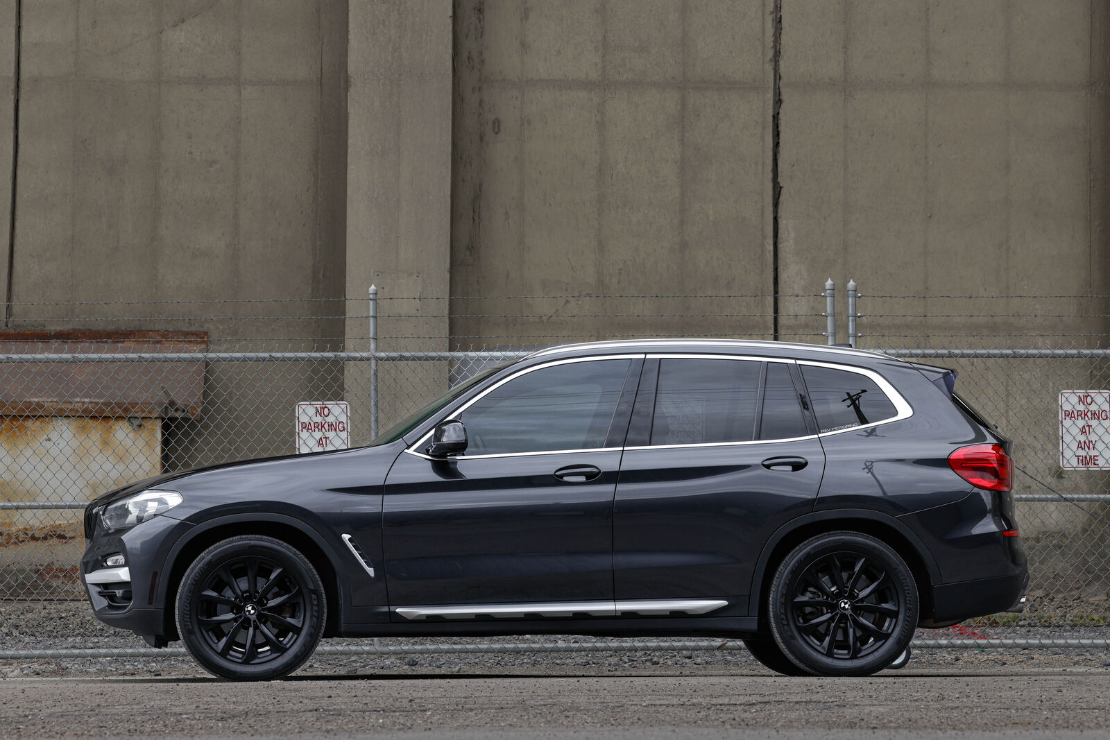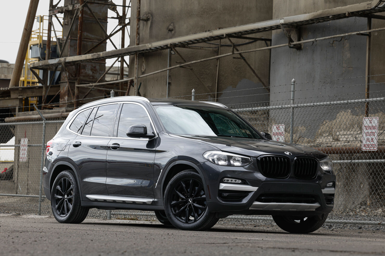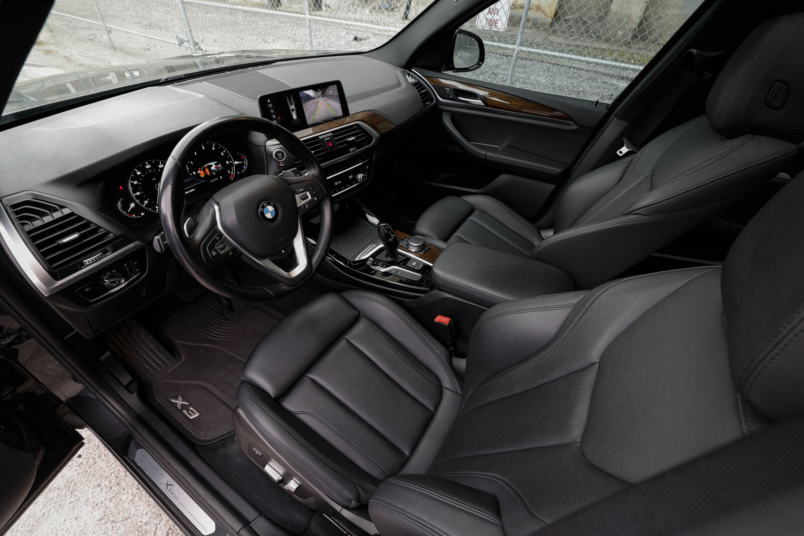 Clean title trade-in BMW X3 xDrive (AWD) in Dark Graphite metallic with Black leather interior. 248-hp 2.0L turbocharged 4-cylinder engine and 8-speed automatic transmission. Gas mileage: 22 city, 29 highway. Brand new all-season tires.