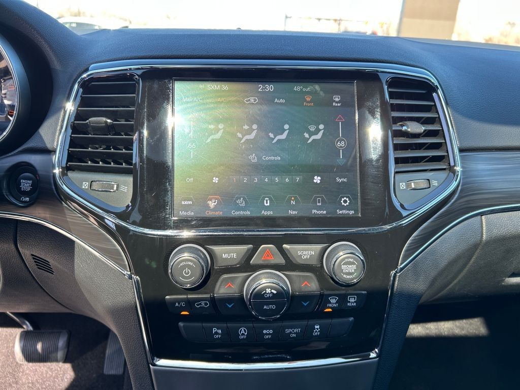 Quick Order Package 2BH, 3.45 Rear Axle Ratio, 4-Wheel Disc Brakes, 6 Speakers, ABS brakes, Air Conditioning, Alloy wheels, AM/FM radio: SiriusXM, Anti-whiplash front head restraints, Apple CarPlay/Android Auto, Audio memory, Auto-dimming door mirrors, Auto-dimming Rear-View mirror, Automatic temperature control, Brake assist, Bumpers: body-color, Compass, Delay-off headlights, Driver door bin, Driver vanity mirror, Dual front impact airbags, Dual front side impact airbags, Electronic Stability Control, Emergency communication system: SiriusXM Guardian, Four wheel independent suspension, Front anti-roll bar, Front Bucket Seats, Front Center Armrest w/Storage, Front dual zone A/C, Front fog lights, Front reading lights, Fully automatic headlights, Garage door transmitter, Heated door mirrors, Heated front seats, Heated steering wheel, Illuminated entry, Knee airbag, Leather Shift Knob, Leather Trimmed Bucket Seats, Low tire pressure warning, Memory seat, Navigation System, Normal Duty Suspension, Occupant sensing airbag, Outside temperature display, Overhead airbag, Overhead console, Panic alarm, ParkView Rear Back-Up Camera, Passenger door bin, Passenger vanity mirror, Power door mirrors, Power driver seat, Power Liftgate, Power moonroof, Power passenger seat, Power steering, Power windows, Radio data system, Radio: Uconnect 4C Nav w/8.4'' Display, Rear anti-roll bar, Rear reading lights, Rear seat center armrest, Rear window defroster, Rear window wiper, Remote keyless entry, Security system, Speed control, Speed-sensing steering, Speed-Sensitive Wipers, Split folding rear seat, Spoiler, Steering wheel mounted audio controls, Tachometer, Telescoping steering wheel, Tilt steering wheel, Traction control, Trip computer, Turn signal indicator mirrors, Variably intermittent wipers, Voltmeter, and Wheels: 18'' x 8.0'' Tech Gray Diamond Cut.