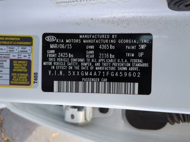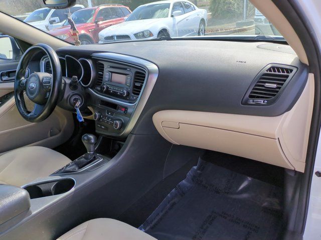 Beige Cloth. Snow White Pearl 2015 Kia Optima LX FWD 6-Speed Automatic with Sportmatic 2.4L I4 DGI DOHCRecent Arrival! 23/34 City/Highway MPGAwards: * 2015 IIHS Top Safety Pick * 2015 KBB.com 10 Best UberX CandidatesReviews: * Looking for a practical family sedan that doesn’t look like a practical family sedan? You have a few cars from which to choose, but none as feature packed as the 2015 Kia Optima. Source: KBB.com * Lots of standard and optional features for the money; handsome cabin with easy-to-use controls and comfortable front seats; top crash scores; lengthy warranty. Source: Edmunds