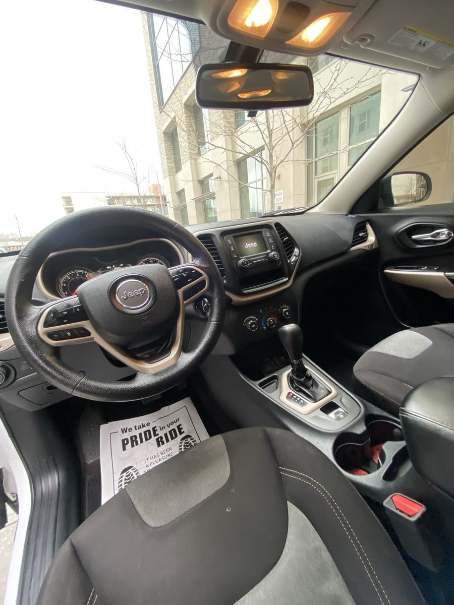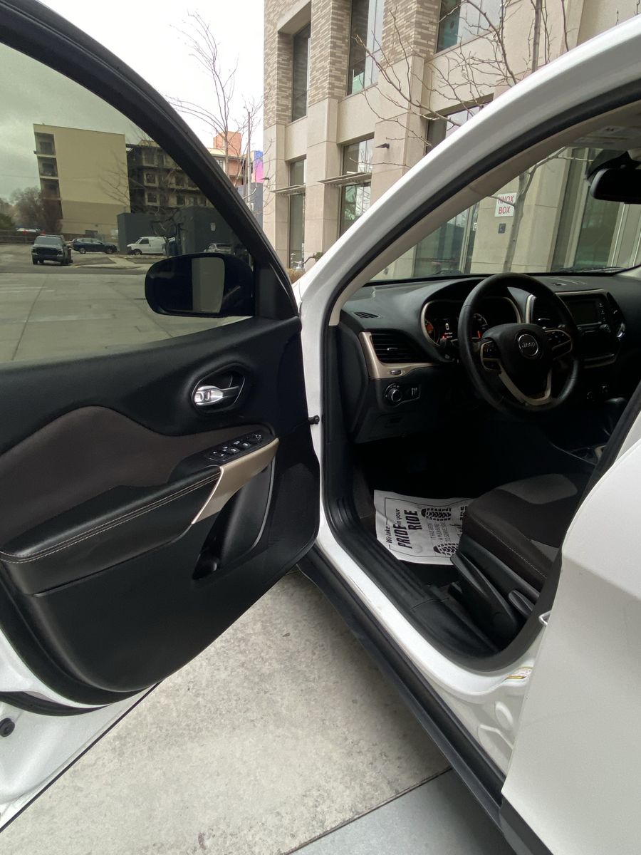 White 4door exterior//5seat gray fabric interior. Tons of trunk storage. 22city 30highway mpg. Cherokee Sport equipped with: Bluetooth connection, touchscreen entertainment, cruise control, hands-free calling, etc… 2WD with a nice set of all-season tires. Mechanically solid: runs ‘n drives great, cruises smooth & comfy around town or on highway, no repairs needed. Passed SL county smog & emissions on hand. Cosmetically in good condition: has some normal minimal wear you would expect for the year/miles, but nothing too noteworthy nor concerning I feel worth mentioning. Recently detailed. Pet free/smoke free. Let me know if you have any questions :)