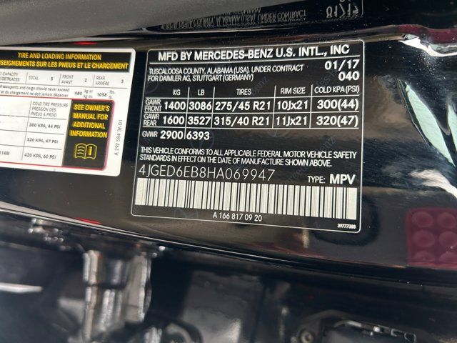 Axle Ratio: 3.69,Wheels: 21 2-Toned AMG® Twin 5-Spoke,Heated Front Seats,MB-Tex Leatherette Seat Trim,Radio: COMAND® System w/Navigation,Aluminum Trim,Smartphone Integration,Apple CarPlay®,Android Auto®,Power Driver Seat w/Memory,Navigation Map Updates Included For 3 Years,SiriusXM Satellite Radio,harman/kardon® Logic 7® Surround Sound System,Single DVD Player,DVD Coding,4-Wheel Disc Brakes,Apple CarPlay®/Android Auto®,Premium audio system: COMAND®,Navigation system: COMAND® APS,Emergency communication system: mbrace2,Power moonroof: Panorama,harman/kardon® Speakers,Auto High-beam Headlights,Exterior Parking Camera Rear,AM/FM radio: SiriusXM,Compass,14 Speakers,Speed-Sensitive Wipers,Auto-dimming Rear-View mirror,Weather band radio,Turn signal indicator mirrors,Trip computer,Traction control,Tilt steering wheel,Telescoping steering wheel,Steering wheel mounted audio controls,Steering wheel memory,Sport steering wheel,Split folding rear seat,Speed-sensing steering,Speed control,Security system,Remote keyless entry,Rear window defroster,Rear seat center armrest,Rear reading lights,Rear fog lights,Rear anti-roll bar,Rain sensing wipers,Radio data system,Power windows,Power steering,Power passenger seat,Power driver seat,Power door mirrors,Passenger vanity mirror,Passenger door bin,Panic alarm,Overhead airbag,Outside temperature display,Occupant sensing airbag,Memory seat,Low tire pressure warning,Leather steering wheel,Knee airbag,Illuminated entry,Heated front seats,Heated door mirrors,Garage door transmitter: Homelink,Fully automatic headlights,Front reading lights,Front dual zone A/C,Front anti-roll bar,Four wheel independent suspension,Dual front side impact airbags,Dual front impact airbags,Driver vanity mirror,Driver door bin,Delay-off headlights,DVD-Audio,CD player,Bumpers: body-color,Brake assist,Automatic temperature control,Auto-leveling suspension,Auto-dimming door mirrors,Auto tilt-away steering wheel,Anti-whiplash front head restraints,Alloy wheels,Adjustable head restraints: driver and passenger,rear w/tilt,Adaptive suspension,ABS brakes,Tachometer,Spoiler,Power Liftgate,Front Center Armrest,Front Bucket Seats,Electronic Stability Control,Air Conditioning
