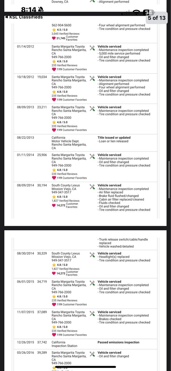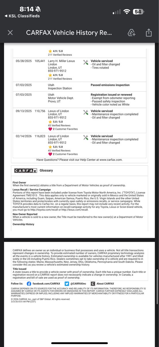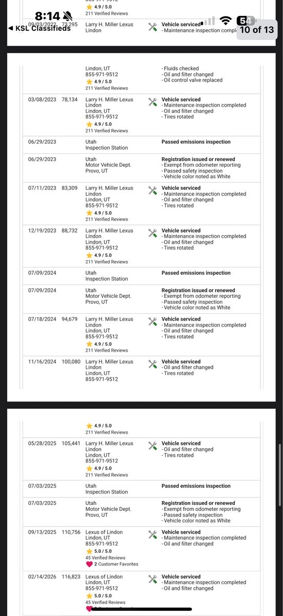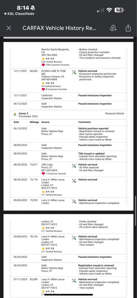 Serious inquiries only I can only provide service documents from the Lexus dealership that I always take it to and also THE CARFAX I have in hand as well as in the pictures .
