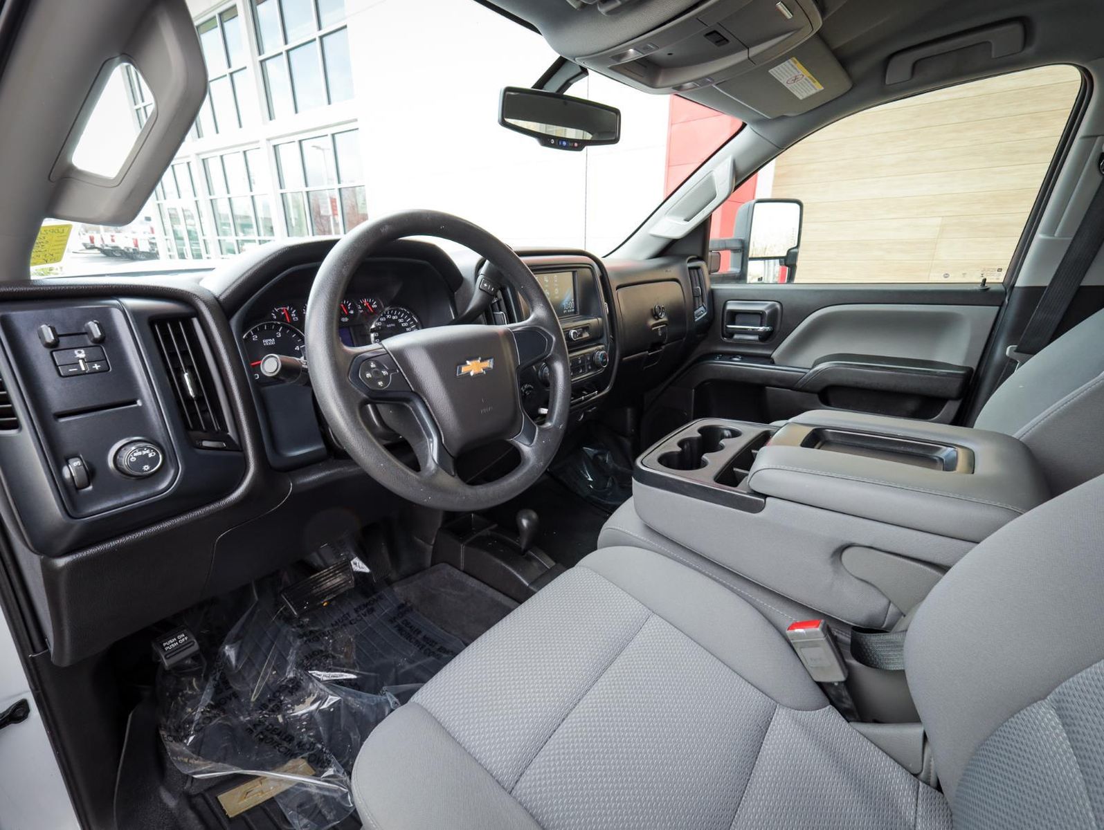 GVWR, 11,600 LBS. (5262 KG) WITH SINGLE REAR WHEELS, PICKUP BOX, EMISSIONS, CALIFORNIA STATE REQUIREMENTS, EMISSIONS OVERRIDE, FEDERAL, ENGINE, DURAMAX 6.6L TURBO-DIESEL V8, B20-DIESEL COMPATIBLE, TRANSMISSION, ALLISON 1000 6-SPEED AUTOMATIC, ELECTRONICALLY CONTROLLED, REAR AXLE, 3.73 RATIO, WHEELS, 18" (45.7 CM) PAINTED STEEL, TIRES, LT265/70R18E ALL-TERRAIN, BLACKWALL, TIRE, SPARE LT265/70R18E ALL-SEASON, BLACKWALL, PAINT, SOLID, SUMMIT WHITE, SEATS, FRONT 40/20/40 SPLIT-BENCH, 3-PASSENGER, DRIVER AND FRONT PASSENGER RECLINE, DARK ASH WITH JET BLACK INTERIOR ACCENTS, CLOTH SEAT TRIM, AUDIO SYSTEM, CHEVROLET INFOTAINMENT SYSTEM WITH 7" DIAGONAL COLOR TOUCH-SCREEN, AM/FM STEREO, WT CONVENIENCE PACKAGE, ENGINE BLOCK HEATER, TRAILER BRAKE CONTROLLER, INTEGRATED, UNDERBODY SHIELD, FRAME-MOUNTED SHIELDS, EXHAUST BRAKE, WHEEL, 18" X 8" (45.7 CM X 20.3 CM) FULL-SIZE, STEEL SPARE., MIRRORS, OUTSIDE HEATED POWER-ADJUSTABLE VERTICAL TRAILERING, UPPER GLASS, MANUAL-FOLDING AND EXTENDING, BLACK;, GLASS, DEEP-TINTED, LICENSE PLATE KIT, FRONT, REMOTE LOCKING TAILGATE, CHEVROLET 4G LTE AND AVAILABLE BUILT-IN WI-FI HOTSPOT OFFERS A FAST AND RELIABLE INTERNET CONNECTION FOR UP TO 7 DEVICES;, REMOTE KEYLESS ENTRY, POWER OUTLET, 110-VOLT AC, MIRROR, INSIDE REARVIEW AUTO-DIMMING, ONSTAR AND CHEVROLET CONNECTED SERVICES CAPABLE