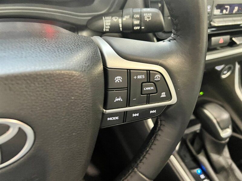 INSTALLED FEATURES: Air filtration, Front air conditioning: automatic climate control, Front air conditioning zones: dual, Humidity/dewpoint sensors, Rear air conditioning: automatic climate control / independently controlled, Rear air conditioning zones: single, Rear vents: third row, Airbag deactivation: occupant sensing passenger, Front airbags: dual, Knee airbags: driver, Seat cushion airbags: passenger front, Side airbags: front, Side curtain airbags: front / rear / third row, Antenna type: diversity / mast, Auxiliary audio input: Bluetooth / iPod/iPhone / USB, Internet radio app: Gracenote, Radio: AM/FM / HD radio / touch screen display / voice operated, Radio data system, Satellite radio: SiriusXM, Speed sensitive volume control, Total speakers: 6, ABS: 4-wheel, Braking assist, Cornering brake control, Electronic brakeforce distribution, Electronic parking brake: auto off, Emergency braking preparation, Front brake type: ventilated disc, Power brakes, Rear brake type: ventilated disc, Armrests: rear outboard seats, Center console trim: metallic, Dash trim: metallic, Door trim: metallic, Floor material: carpet, Steering wheel trim: leather, Adaptive cruise control, Adaptive stop and go cruise control: semi-automatic, Assist handle: front / rear, Autonomous lane guidance: lane centering, Cargo area light, Center console: front console with armrest and storage / organizer tray / second row, Courtesy lights: door, Cupholders: front / rear / third row, Easy entry: manual rear seat, Footwell lights, Memorized settings: liftgate, Multi-function remote: panic alarm / proximity entry system / trunk release, One-touch windows: 4, Overhead console: front, Power outlet(s): 12V front / 12V rear / USB-C front / USB-C rear / USB-C third row, Power steering: variable/speed-proportional, Power windows: lockout button, Push-button start, Reading lights: front / rear / third row, Rearview mirror: auto-dimming, Steering wheel: tilt and telescopic, Steering wheel mounted controls: audio / cruise control / multi-function / phone / voice control, Storage: accessory hook / cargo tie-down anchors and hooks / door pockets / front seatback / grocery bag holder / in dash / in floor / sunglasses holder, Sunshade: side window, Universal remote transmitter: Homelink - garage door opener, Vanity mirrors: dual illuminating, Wireless charging station: front, Door handle color: body-color, Exhaust: hidden, Fender lip moldings: black, Front bumper color: body-color, Grille color: black, Mirror color: body-color, Rear bumper color: black, Rear spoiler: roofline, Rear spoiler color: body-color, Rear trunk/liftgate: liftgate / power operated, Rocker panel color: black, Window trim: chrome, Connected in-car apps: Google POIs / Google search, Infotainment: Toyota Audio Multimedia, Infotainment screen size: 12.3 in., Smartphone integration: wireless Android Auto / wireless Apple CarPlay, Clock, Compass, Digital odometer, External temperature display, Fuel economy display: MPG / range, Gauge: tachometer, Instrument cluster screen size: 7 in., Multi-function display, Trip odometer, Warnings and reminders: coolant temperature warning / lamp failure / low fuel level / low oil pressure / maintenance due, Daytime running lights, Exterior entry lights: approach lamps, Headlights: auto delay off / auto high beam dimmer / auto on/off / LED / wiper activated, Taillights: LED, Side mirror adjustments: manual folding / power, Side mirrors: heated / integrated turn signals, 4WD type: on demand, Auto start/stop, Battery: maintenance-free, Battery saver, Drive mode selector, Roof rails: silver, Automatic emergency braking: front / front pedestrian / intersection/junction cross / intersection/junction turn, Blind spot safety: sensor/alert, Camera system: rearview, Camera system washer: rear, Check rear seat reminder, Child safety door locks, Child seat anchors: LATCH system, Cross traffic alert: rear, Crumple zones: front / rear, Driver attention alert system, Impact sensor: alert system / door unlock / fuel cut-off / post-collision safety system, Lane deviation sensors, Lane keeping assist, Pre-collision warning system: audible warning / intersection/junction cross / intersection/junction turn / pedestrian detection / visual warning, Rearview monitor: in dash, Safety brake pedal system, Traffic sign recognition, Emergency locking retractors: front / rear / third row, Front seatbelts: 3-point, Rear seatbelts: 3-point, Seatbelt force limiters: front / rear, Seatbelt pretensioners: front / rear, Seatbelt warning sensor: front, Third row seatbelts: 3-point, Driver seat: heated, Driver seat power adjustments: 10 / height / lumbar / reclining, Front headrests: 2 / adjustable, Front seat type: bucket, Passenger seat: heated, Passenger seat power adjustments: 8 / height / reclining, Rear headrests: 2 / adjustable, Rear seat: sliding, Rear seat folding: flat, Rear seat manual adjustments: reclining, Rear seat type: captains chairs, Third row headrests: 3 / adjustable, Third row seat folding: flat / split, Third row seat type: 40-60 split bench, Upholstery: leatherette, Anti-theft system: alarm / vehicle immobilizer, Power door locks: anti-lockout / auto-locking, Hill holder control, Off-road driving assist: hill descent, Stability control, Traction control, Trailer stability control, Front shock type: gas, Front spring type: coil, Front stabilizer bar: diameter 28 mm, Front struts: MacPherson, Front suspension classification: independent, Front suspension type: lower control arms, Rear shock type: gas, Rear spring type: coil, Rear stabilizer bar: diameter 19 mm, Rear suspension classification: independent, Rear suspension type: multi-link, Driver assistance app: roadside assistance, Electronic messaging assistance: voice operated / with read function, Hands-free phone call integration: voice operated, Navigation data: real time traffic / send destination to vehicle, Navigation system: over-the-air map updates (OTA) / touch screen display / voice